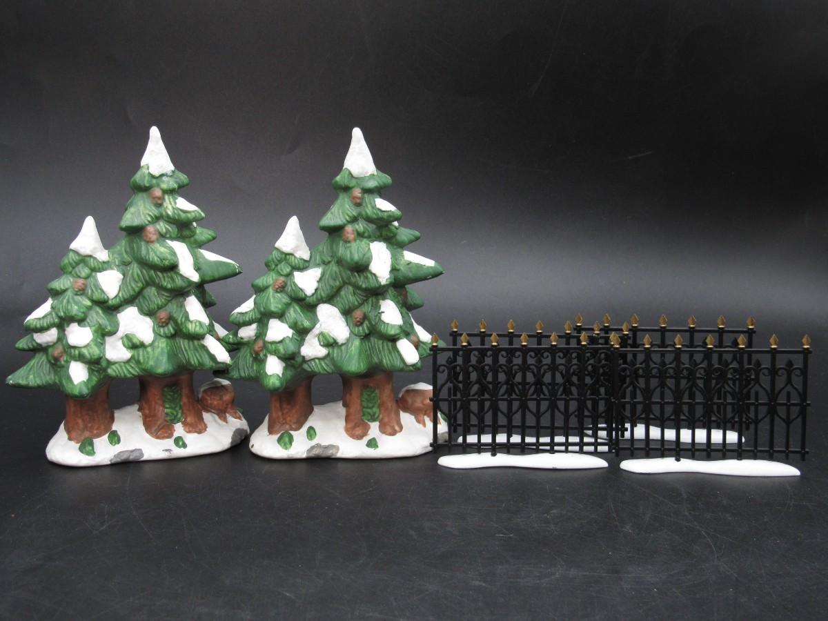 Department 56 Village People Model Fences & Wild Snowy Pine Trees