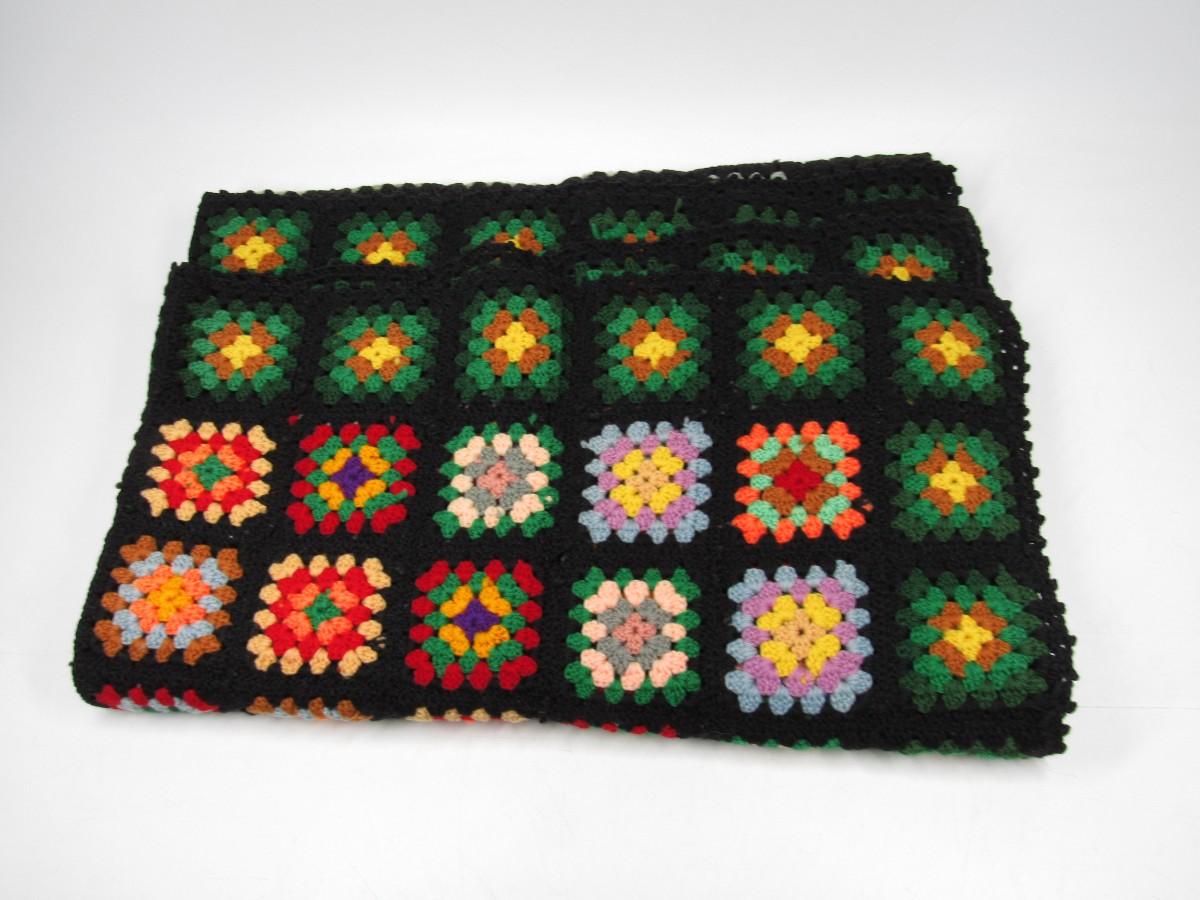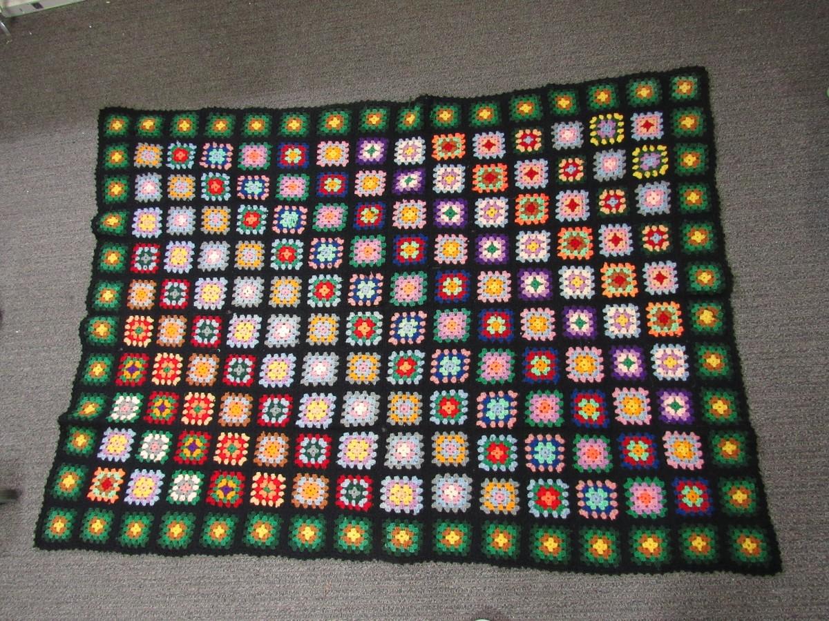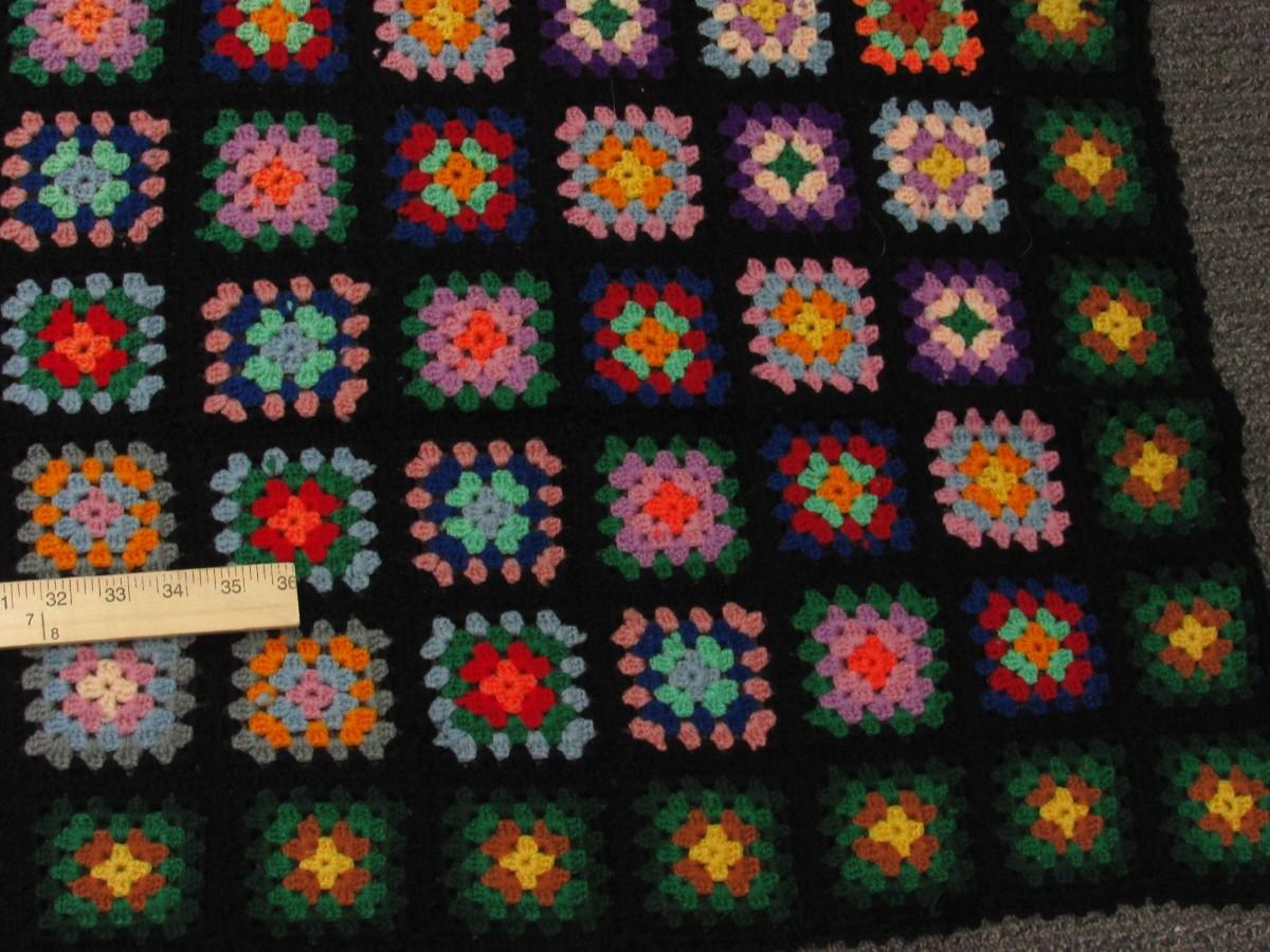 Vintage Handmade Colorful Granny Squares Crochet Afghan Throw Blanket