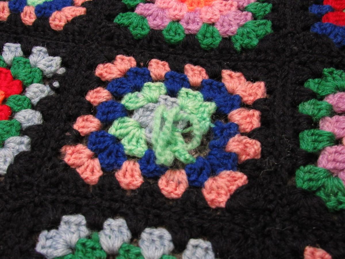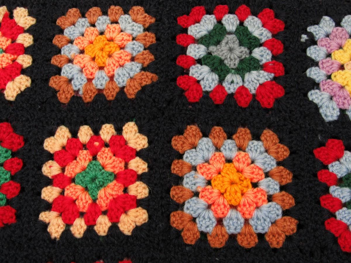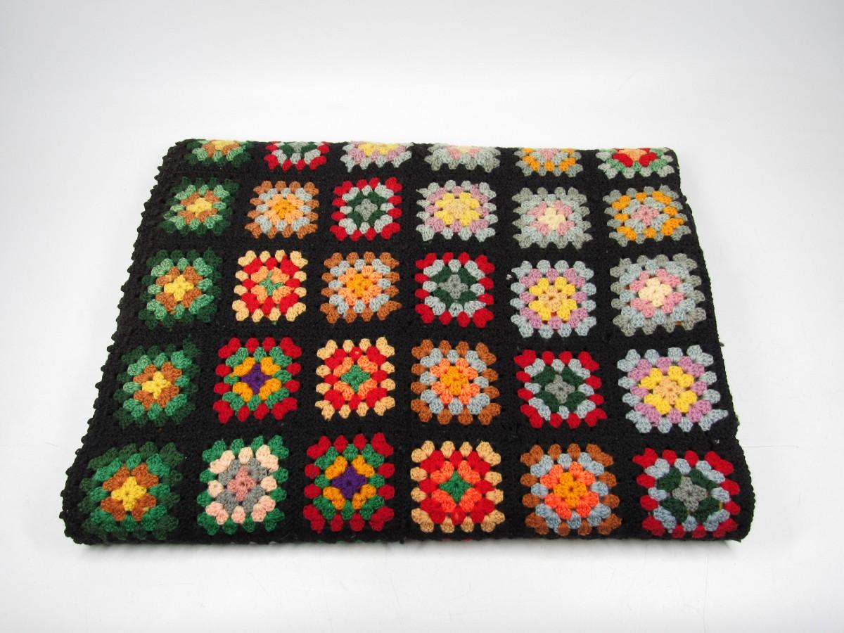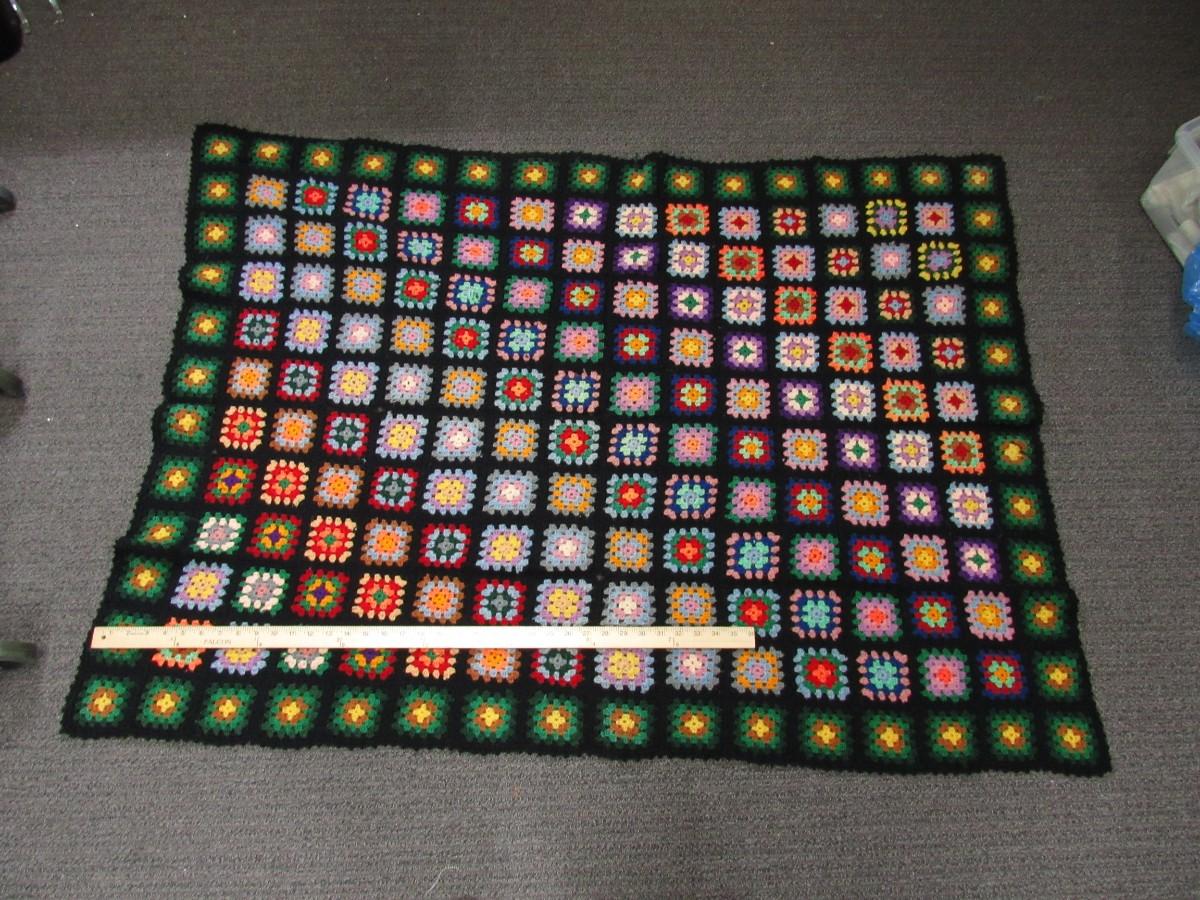 Vintage Handmade Colorful Granny Squares Crochet Afghan Throw Blanket