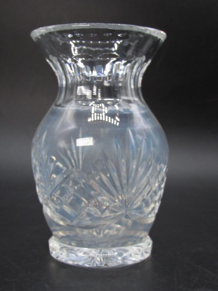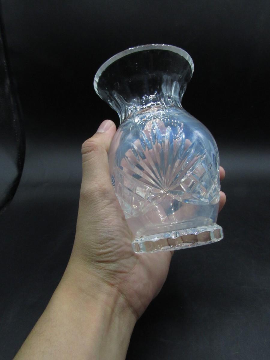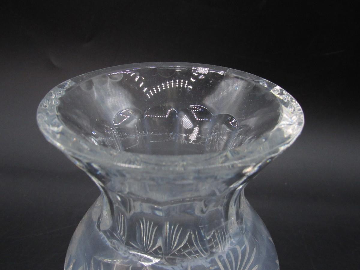 Retro Mid Century Modern Etched Crystal Glass Flower Vase