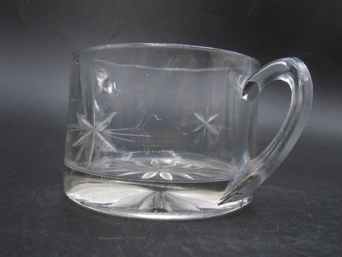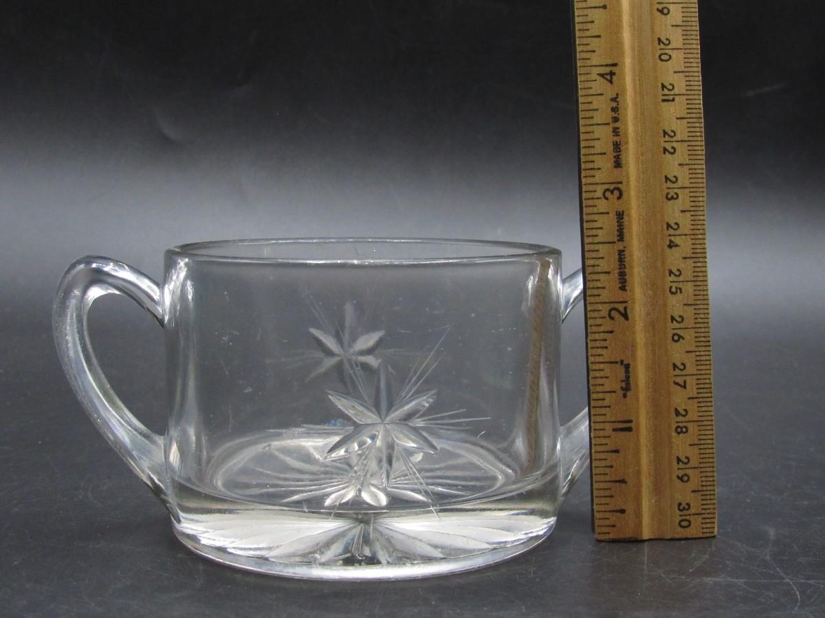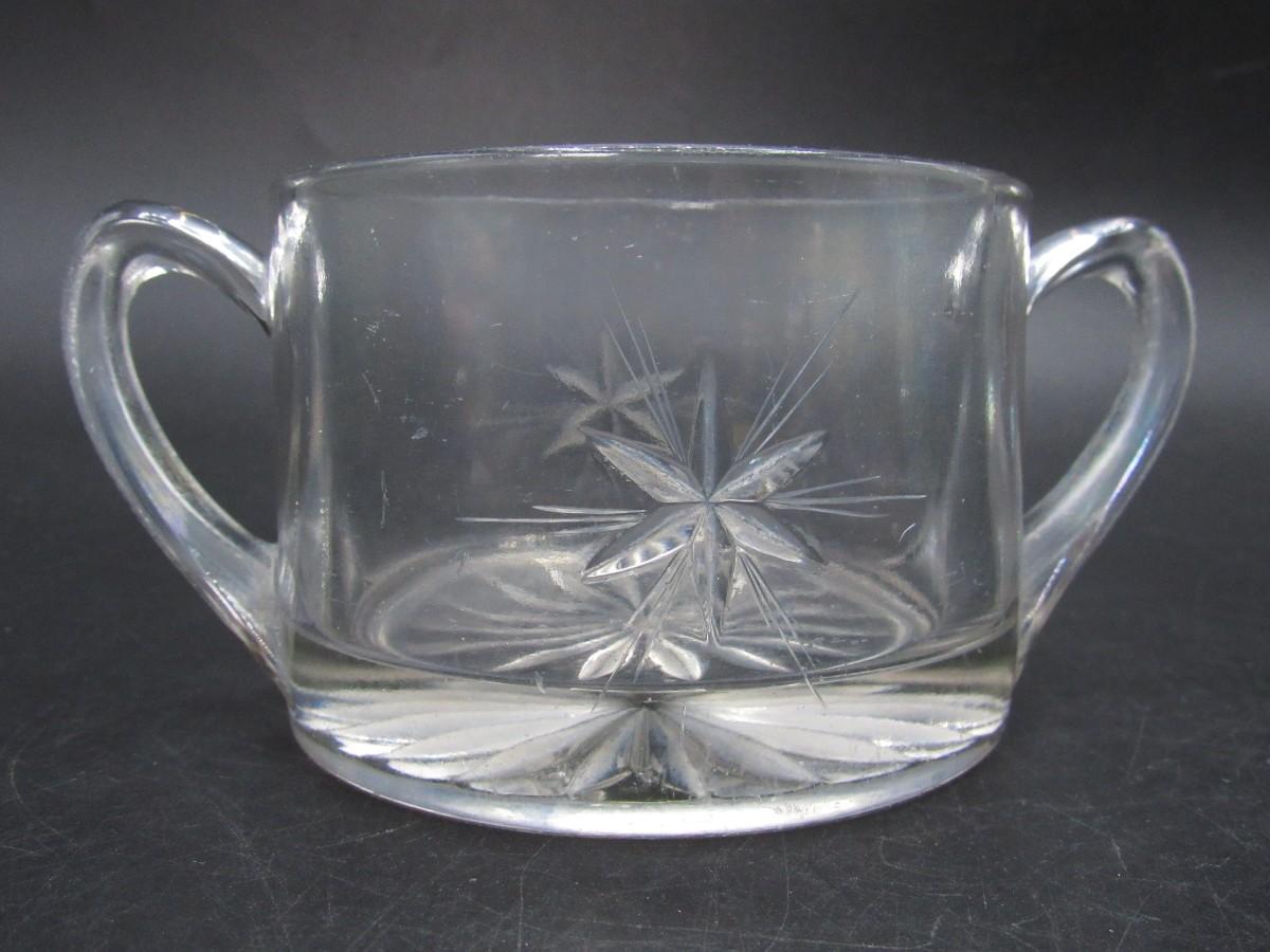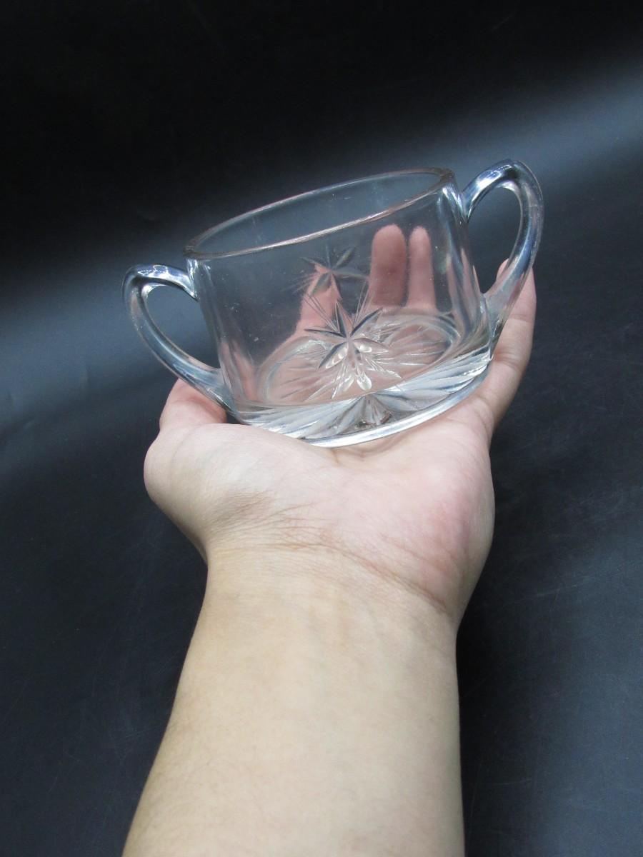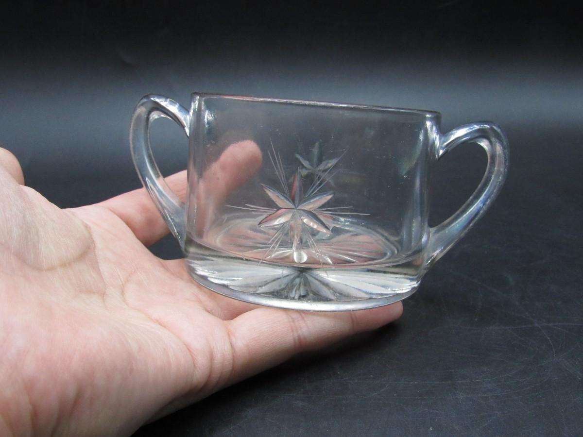 Small Retro Etched Star Double Handle Glass Open Lidded Sugar Bowl