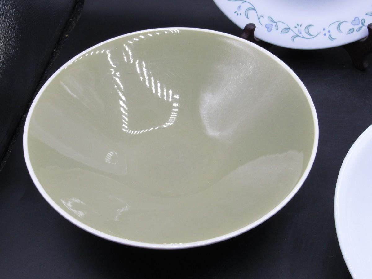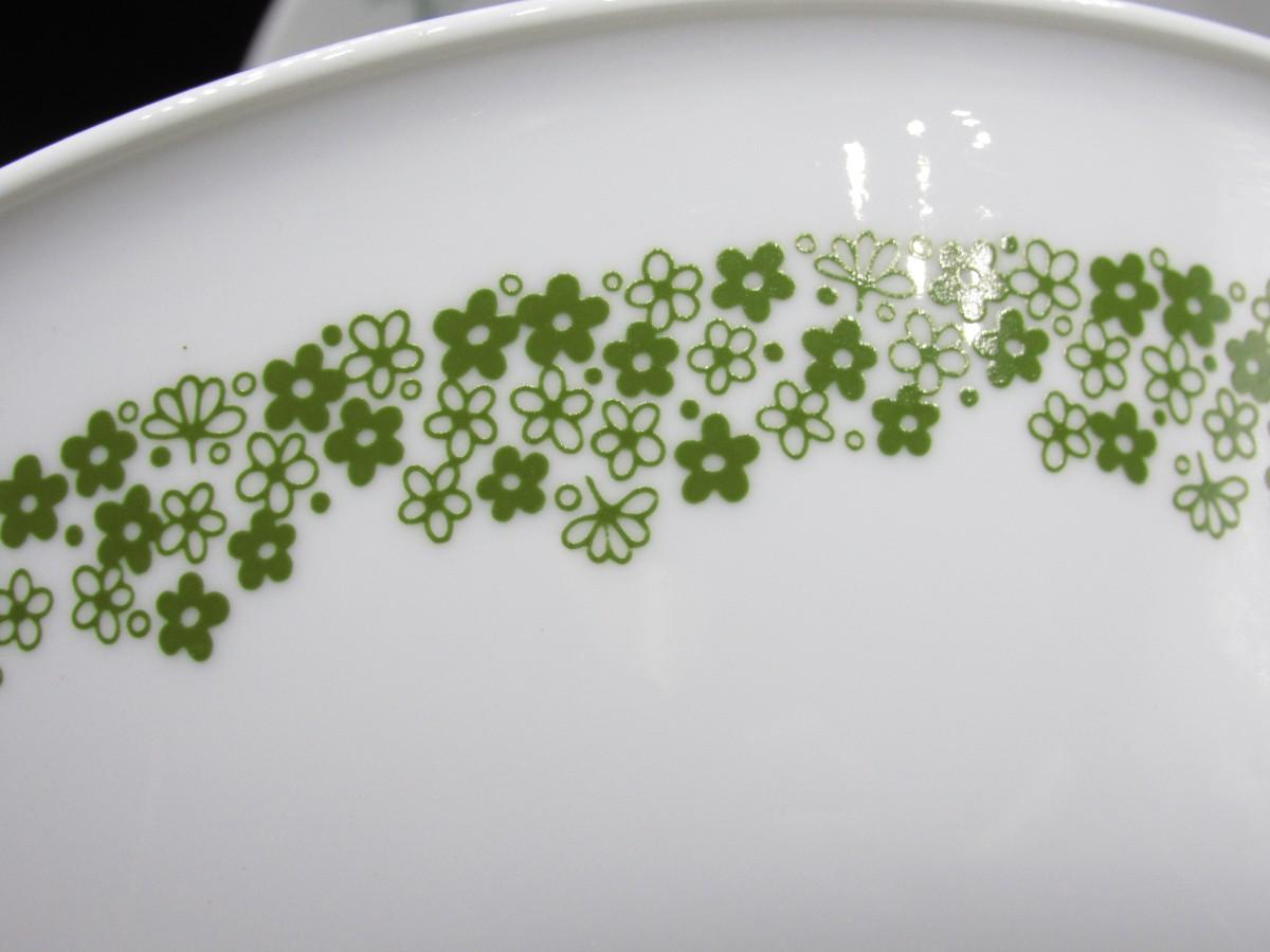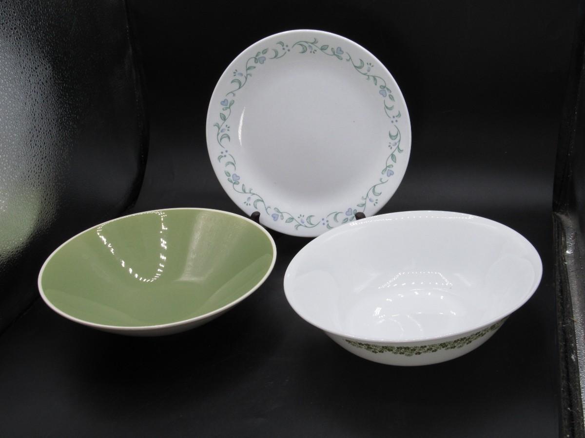 The green bowl is the only piece in the lot that isn't Corningware and there is a light chip on it as well. Check pictures for more details, overall in good useable or collectible condition.