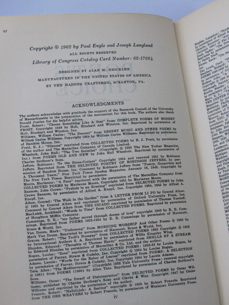 Poet's Choice Edited by Paul Engle and Joseph Langland The Dial Press