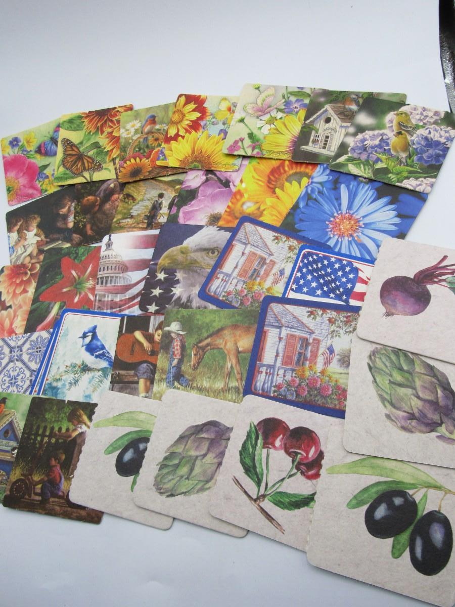 Lot of Miscellanous Drink Coasters, Flowery, Patriotic, Vegetables, & More