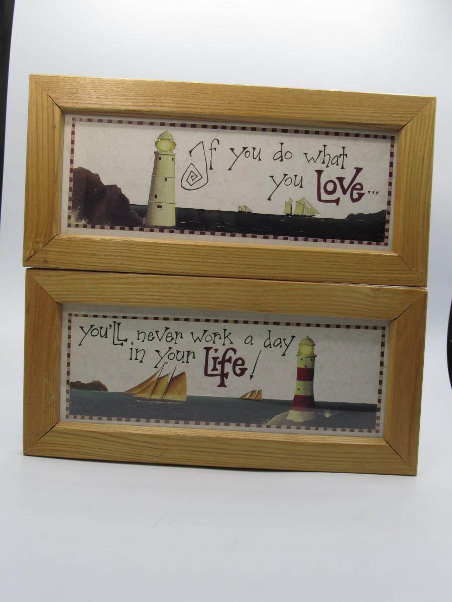 2 part framed inspirational art: "If you do what you love... you'll never work a day in your life!"