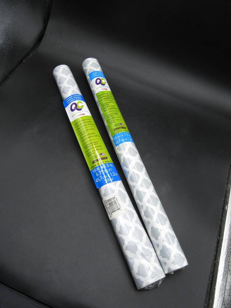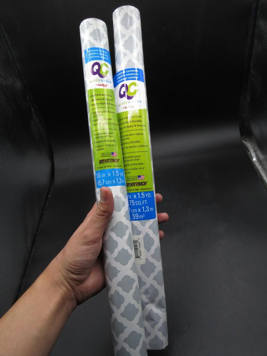 2 Rolls Quick Cover Adhesive Shelf and Drawer Liner Contact Paper made by Contact Kittrich. New, unopened rolls. 18" x 1.5 yards. Can be easily trimmed to fit any drawer or shelf size.