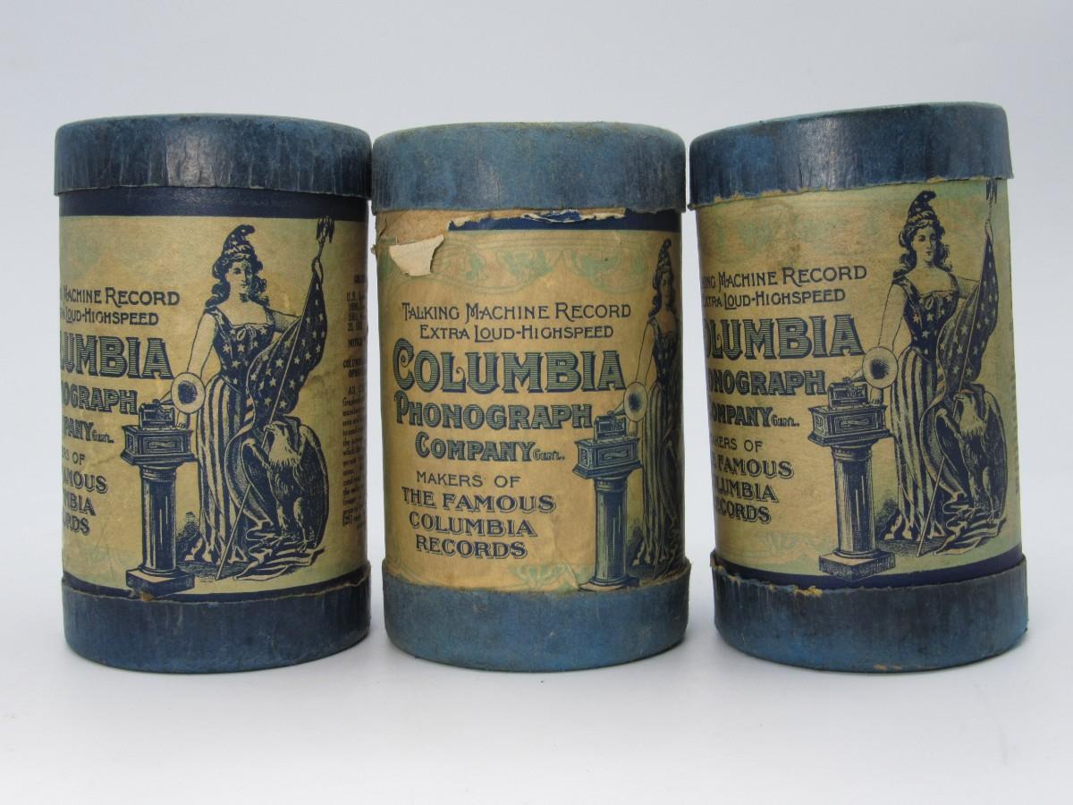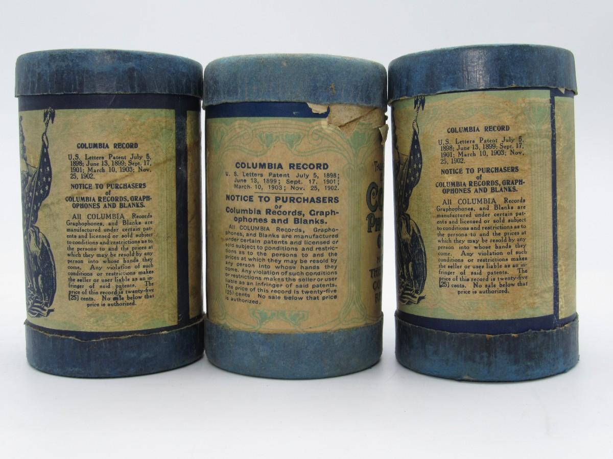 3 pc lot - Columbia Phonograph Co. Talking Machine Record Wax Cylinder Cylinders  c. 1904