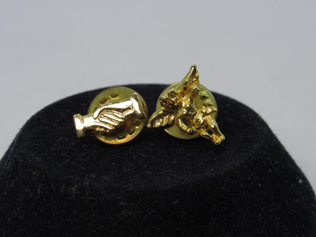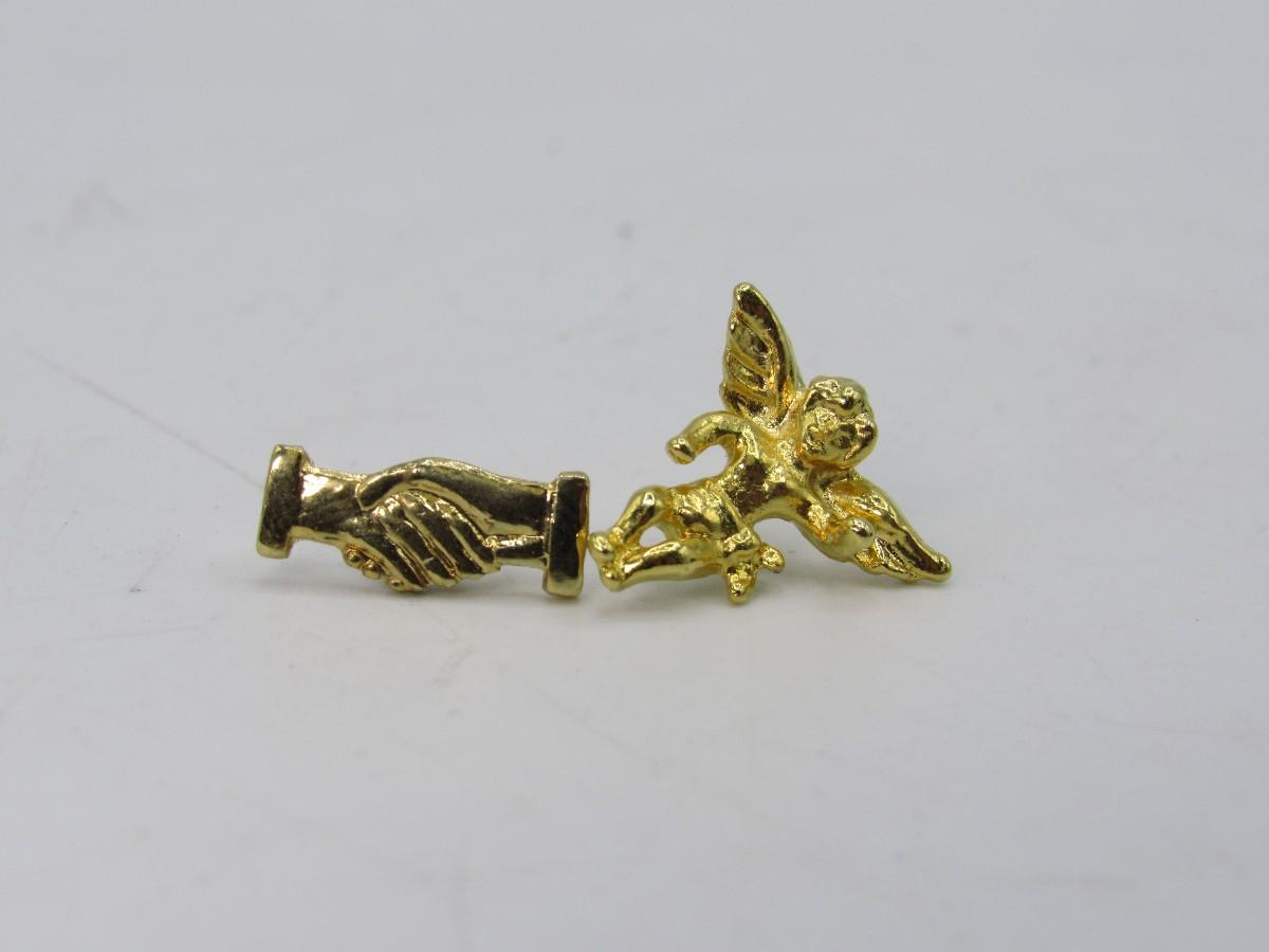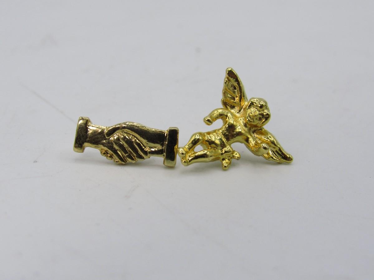 Small Gold Tone Religious Earrings Cherub Winged Angel & Friendly Shaking Hands Lapel Pins