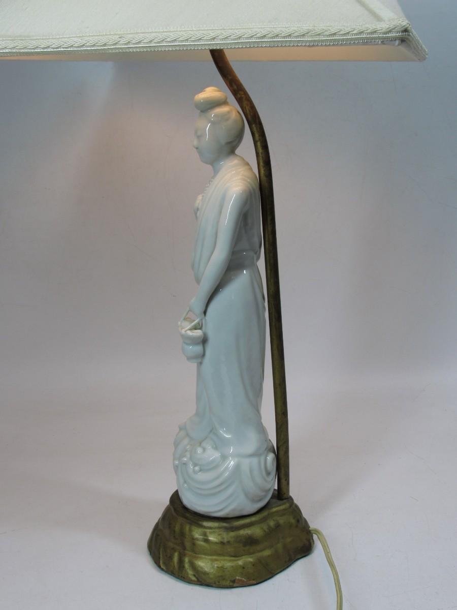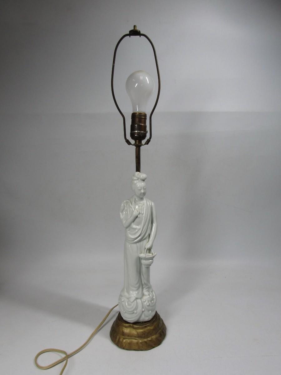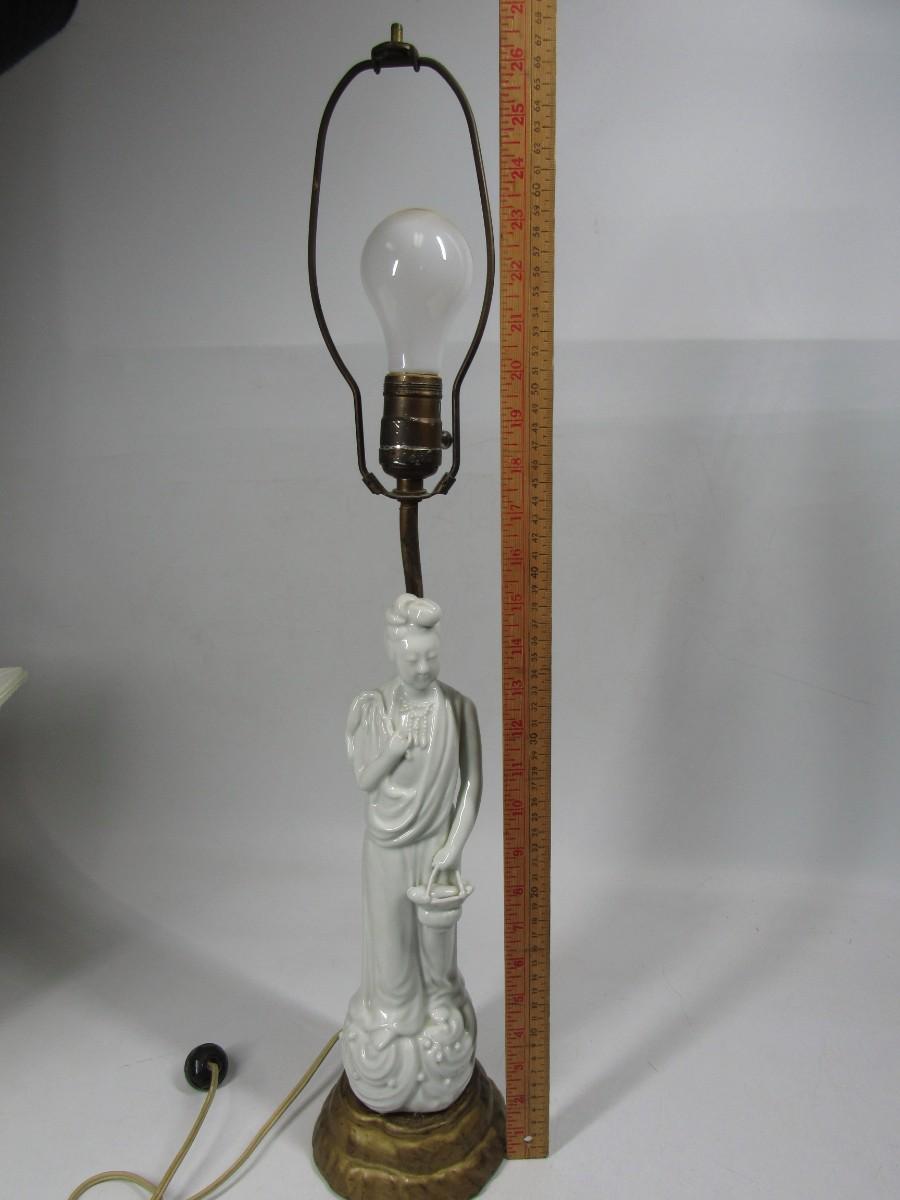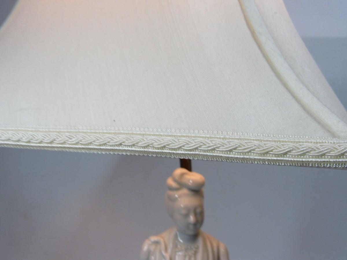 Vintage White Oriental Traditional Commonor Dress Woman Figurine MCM Lamp