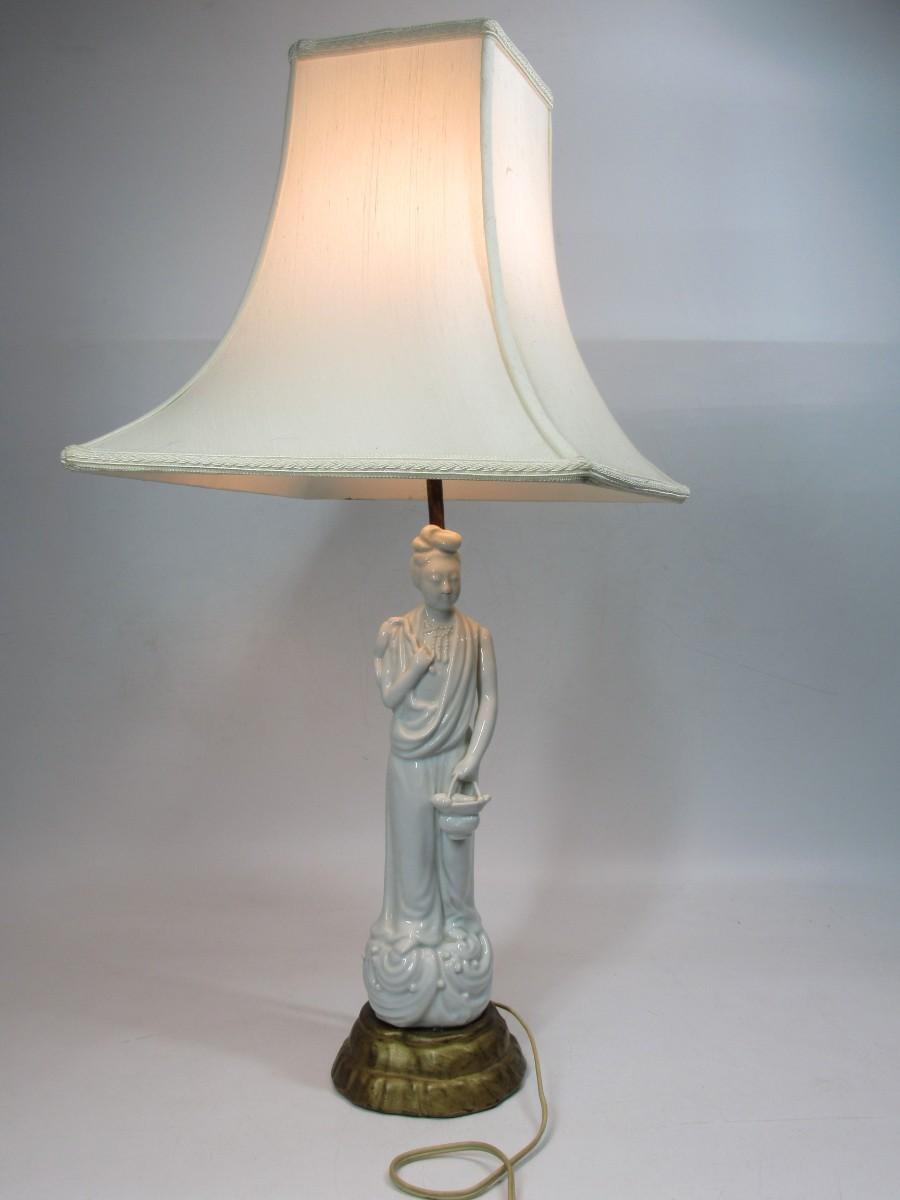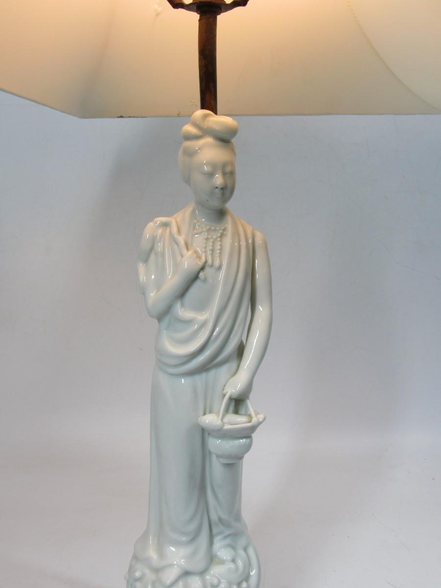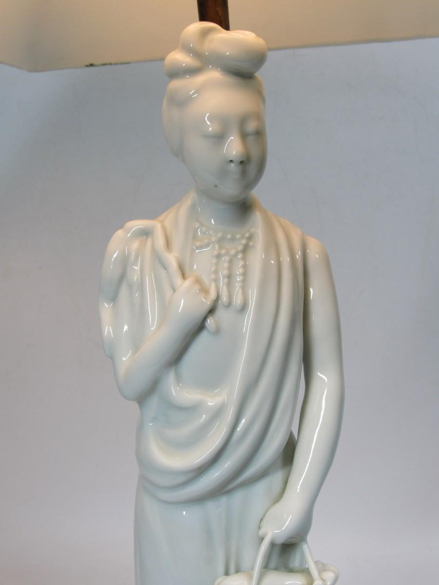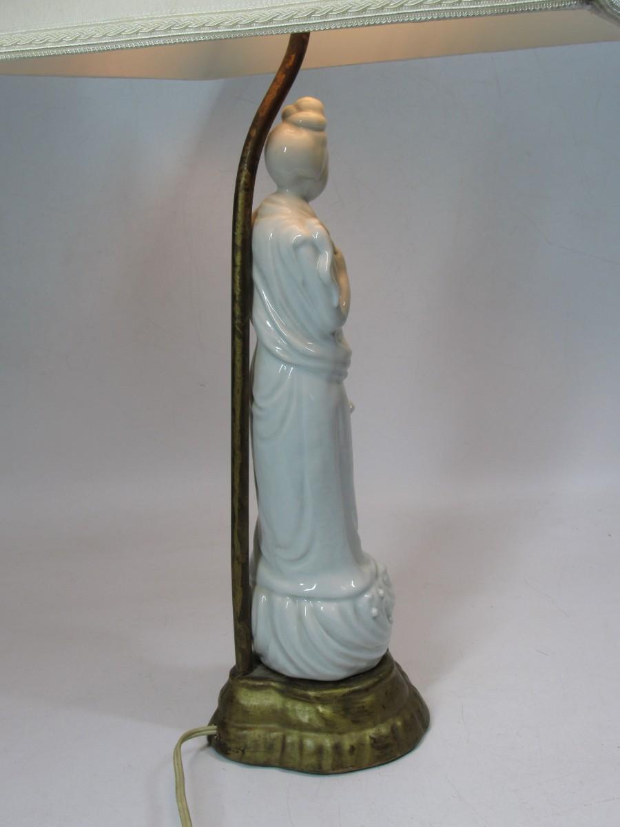 Vintage White Oriental Traditional Commonor Dress Woman Figurine MCM Lamp