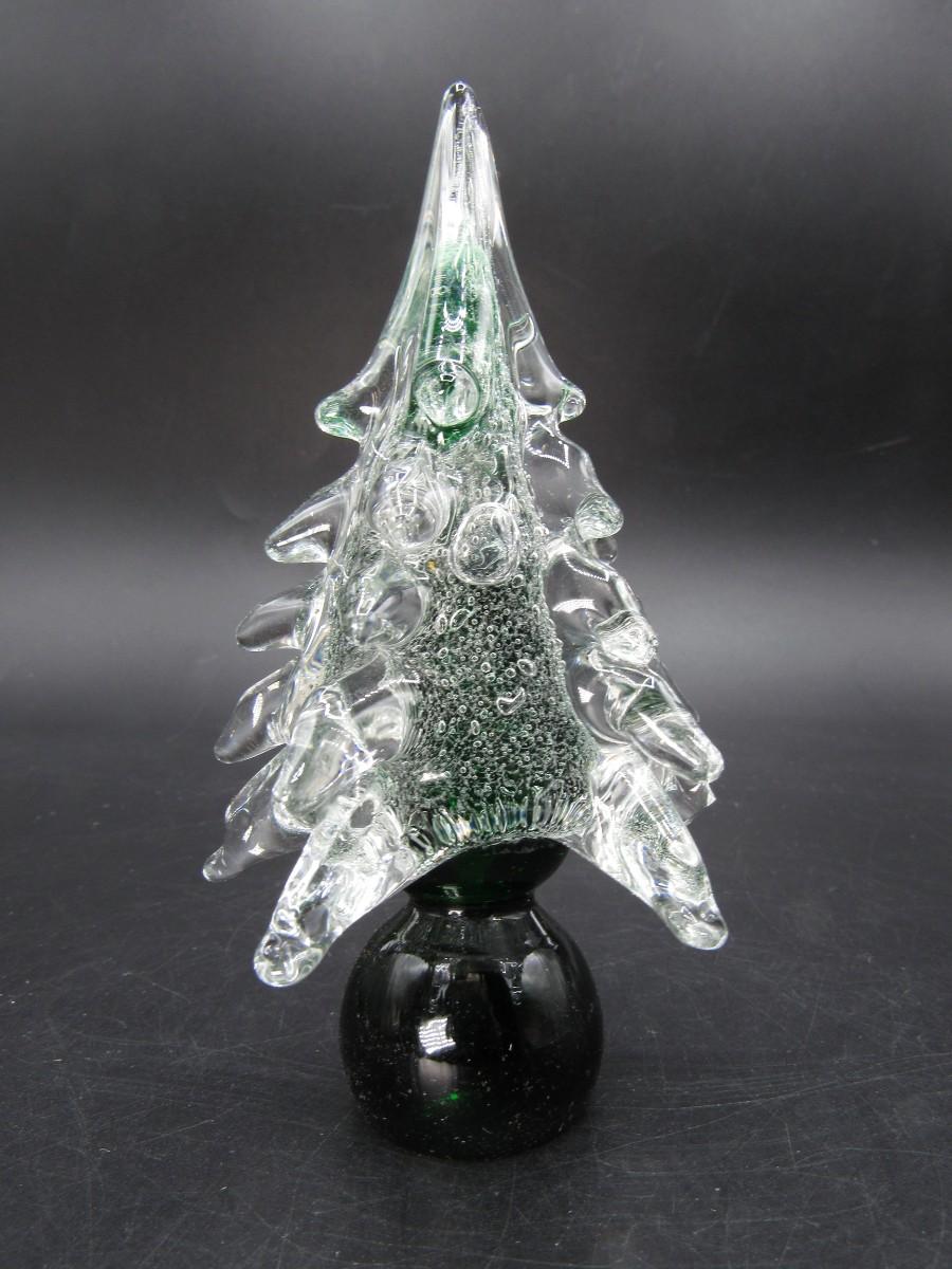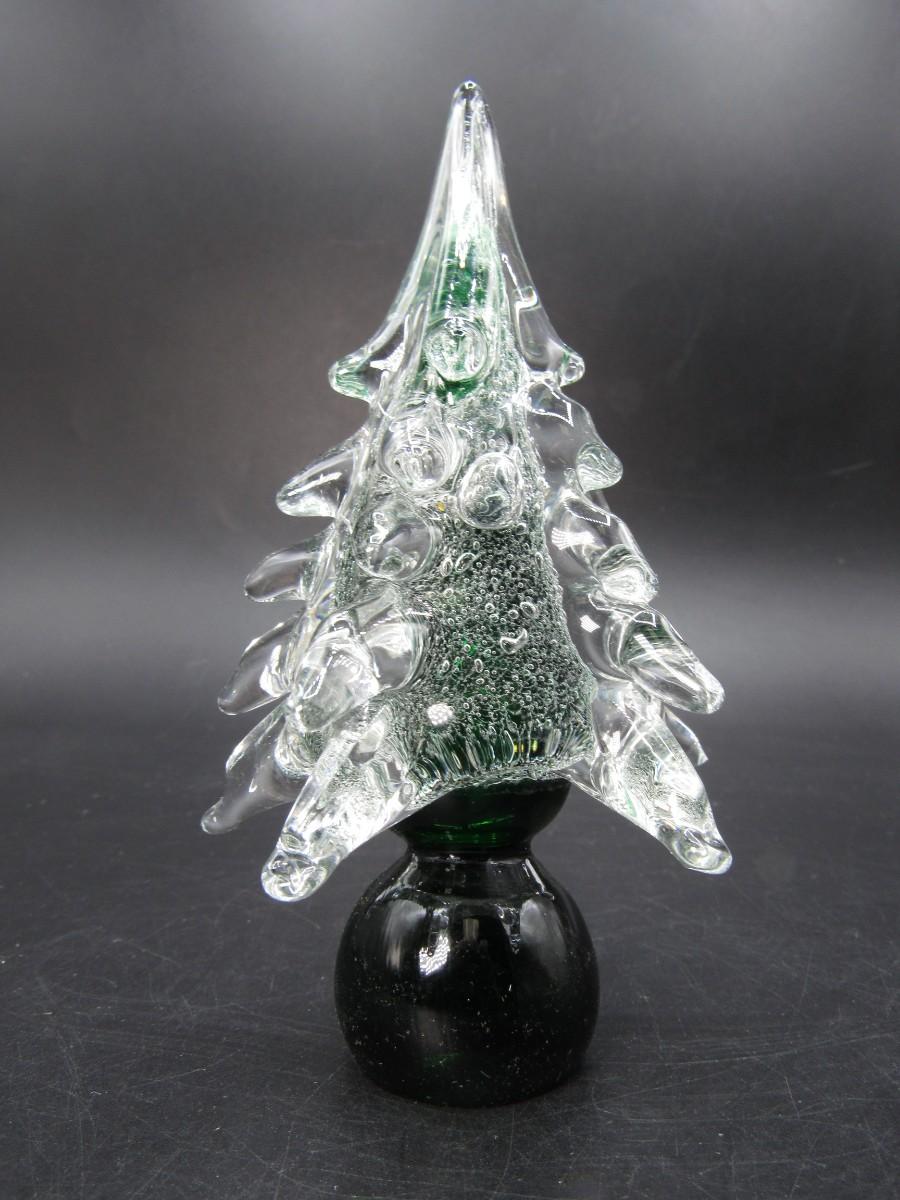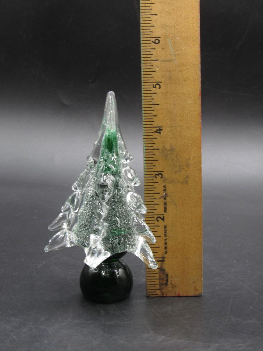 Retro Small Art Glass Blown Glass Christmas Tree on Base