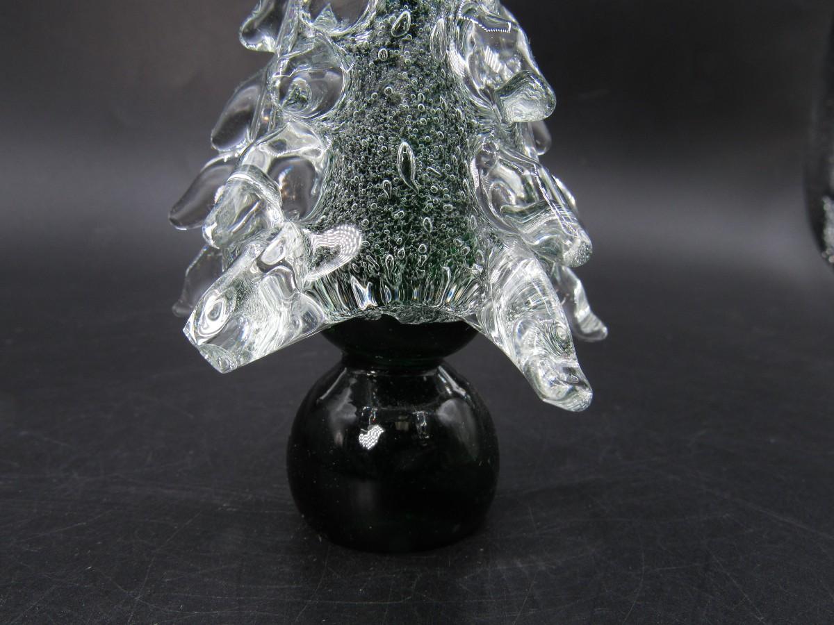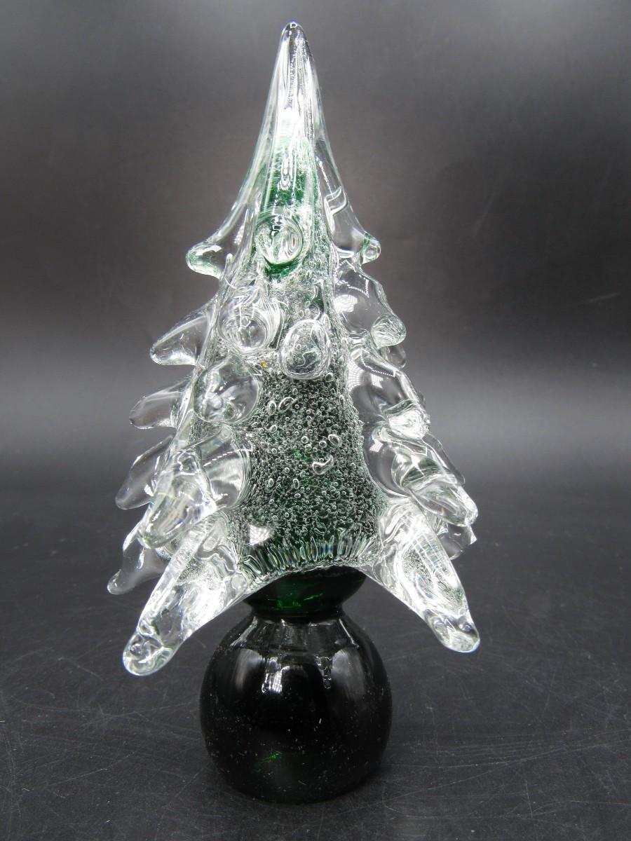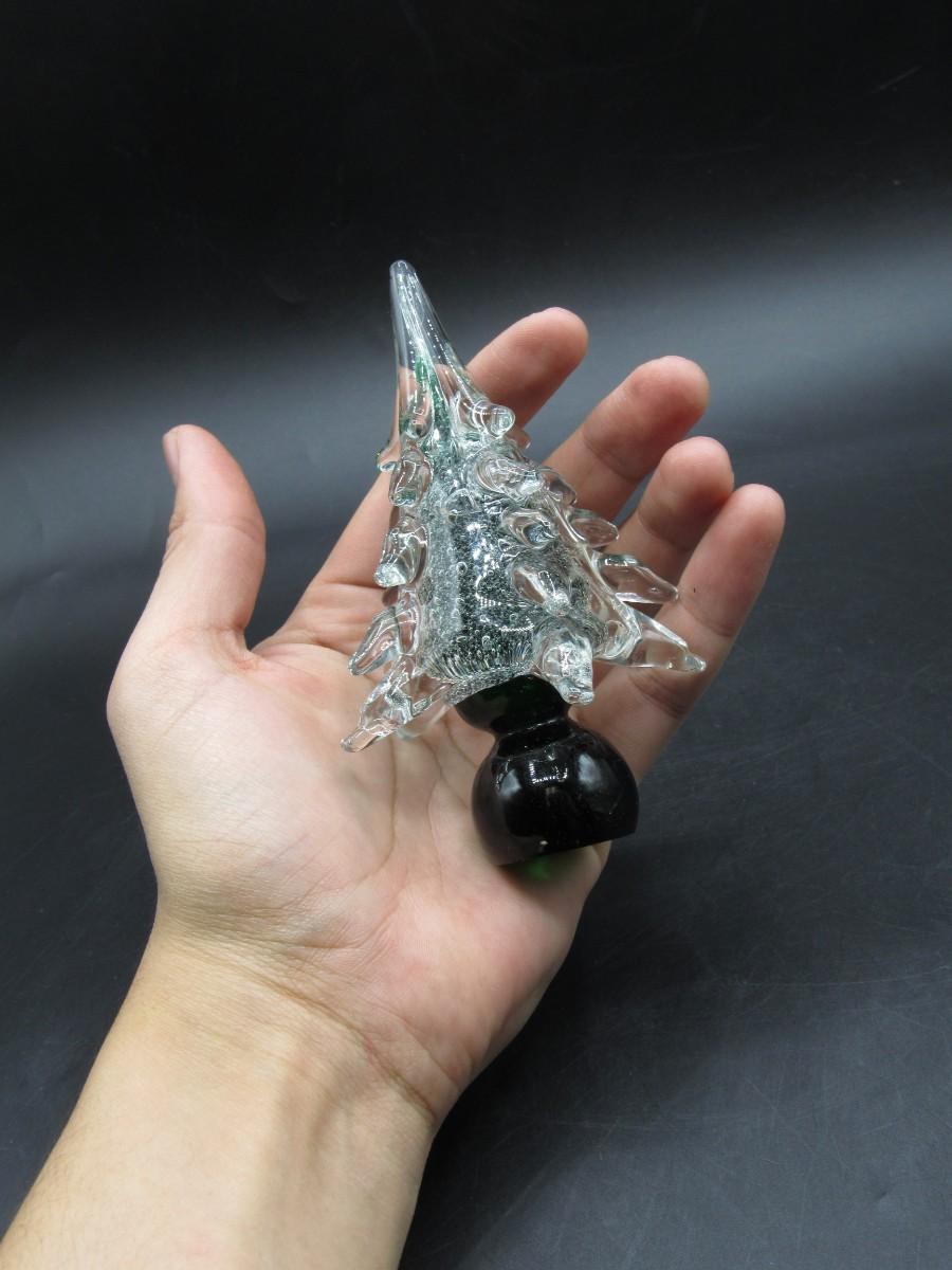 Retro Small Art Glass Blown Glass Christmas Tree on Base