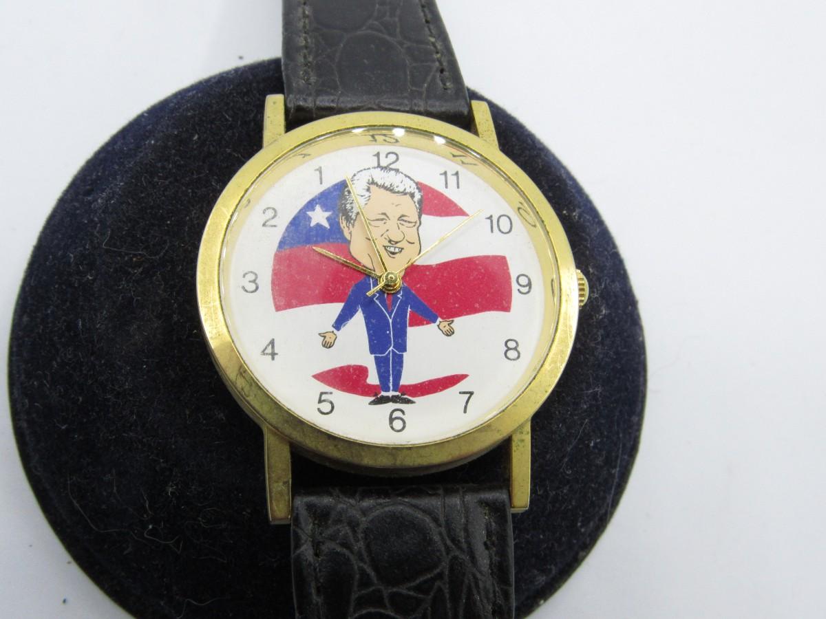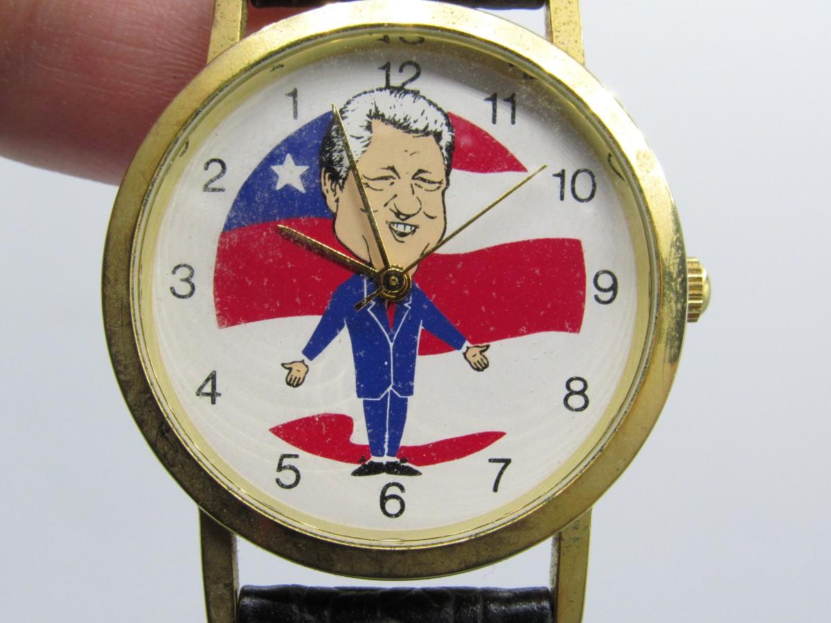 Vintage Bill Clinton Genuine Leather Novelty Analog Wrist Watch