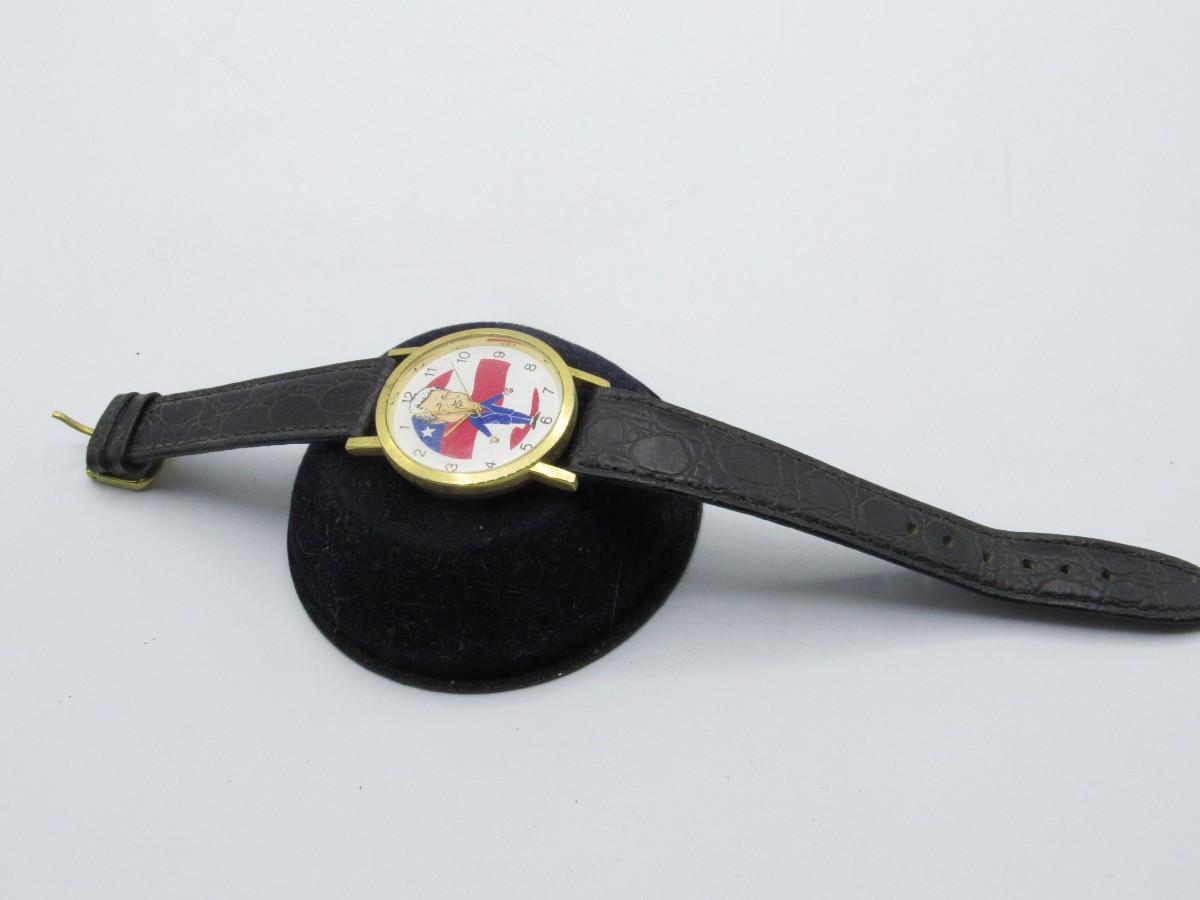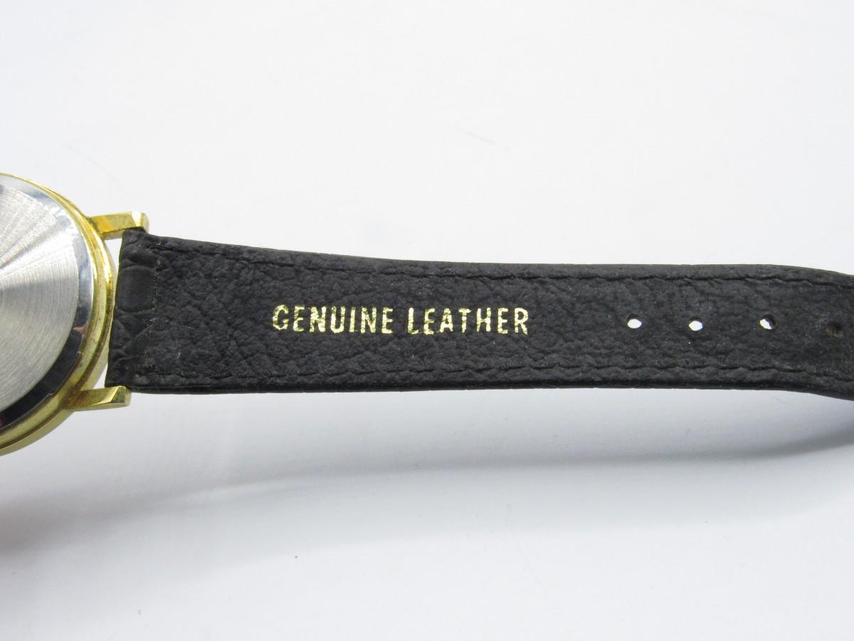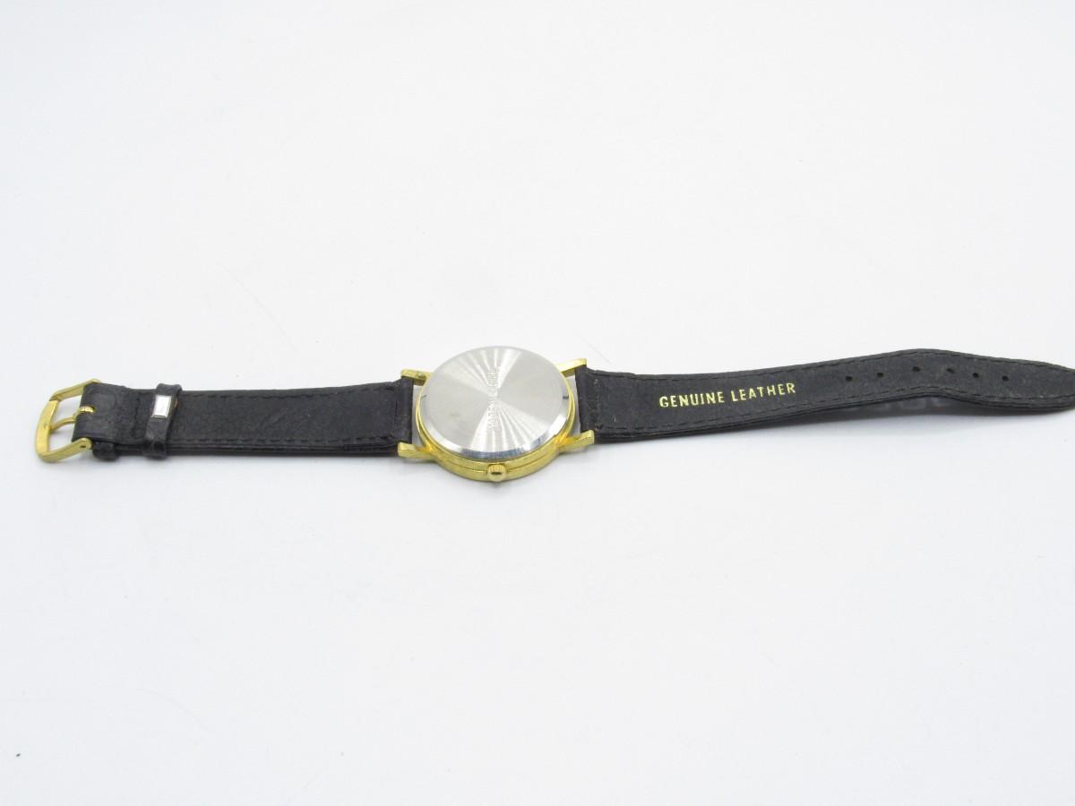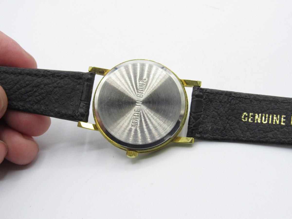 The watch is currently not running, might need a new battery! Overall in good collectible or wearable condition. Shows "Made in China" stamped on back of case, and the words "Genuine Leather" stamped on watchband. Check pictures for more details and for sizing.
