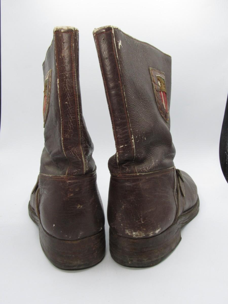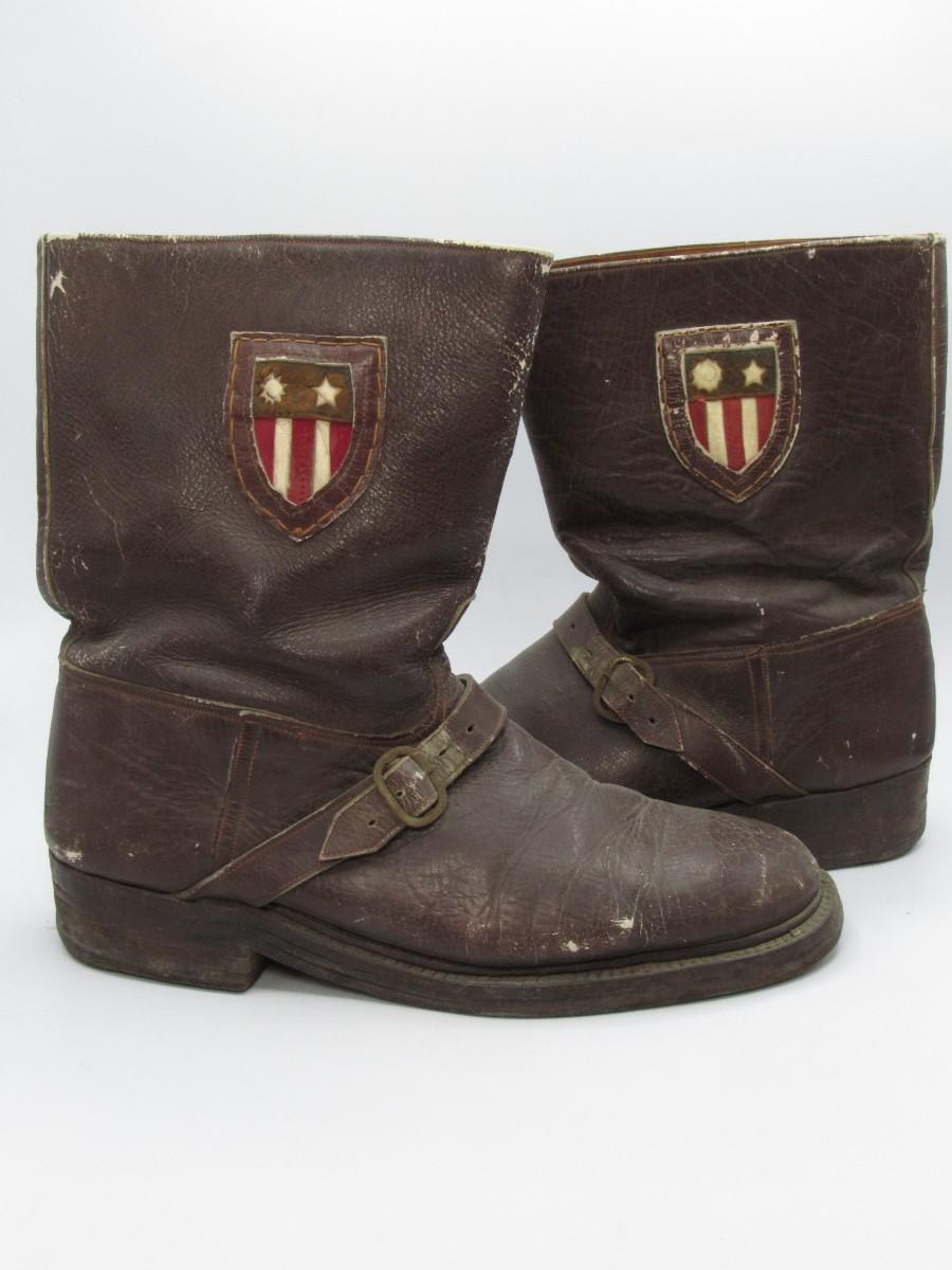 Sometimes known as Flying Tiger boots, made in-theater for personnel stationed in China-Burma-India (CBI Theater) during WWII. Worn condition, size unknown. See photos for details of styling and condition.