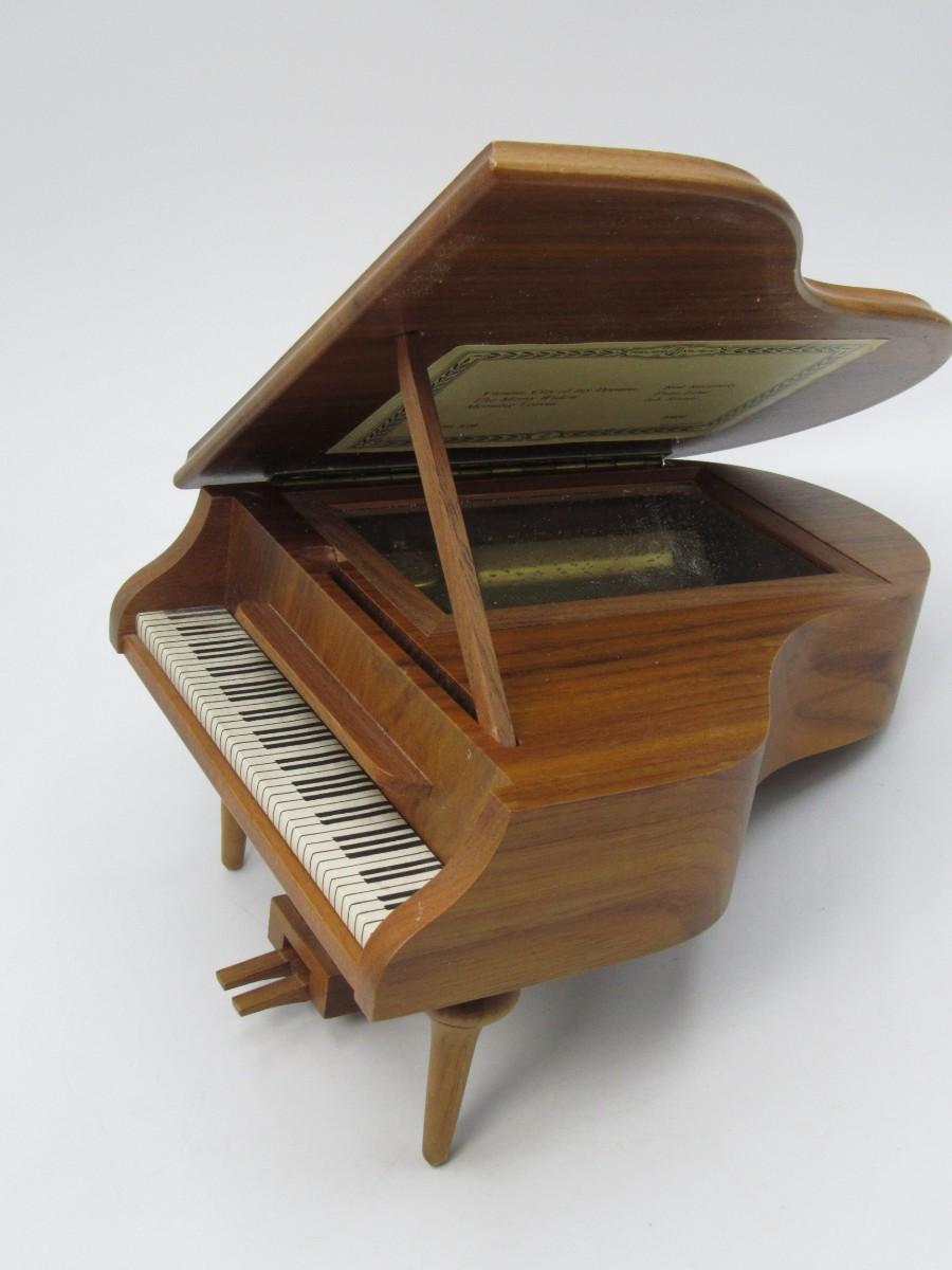 One of the piano legs has been broken off, but there is no other significant damage and is in good collectible or useable condition. Check pictures for more details. The music box works perfectly!