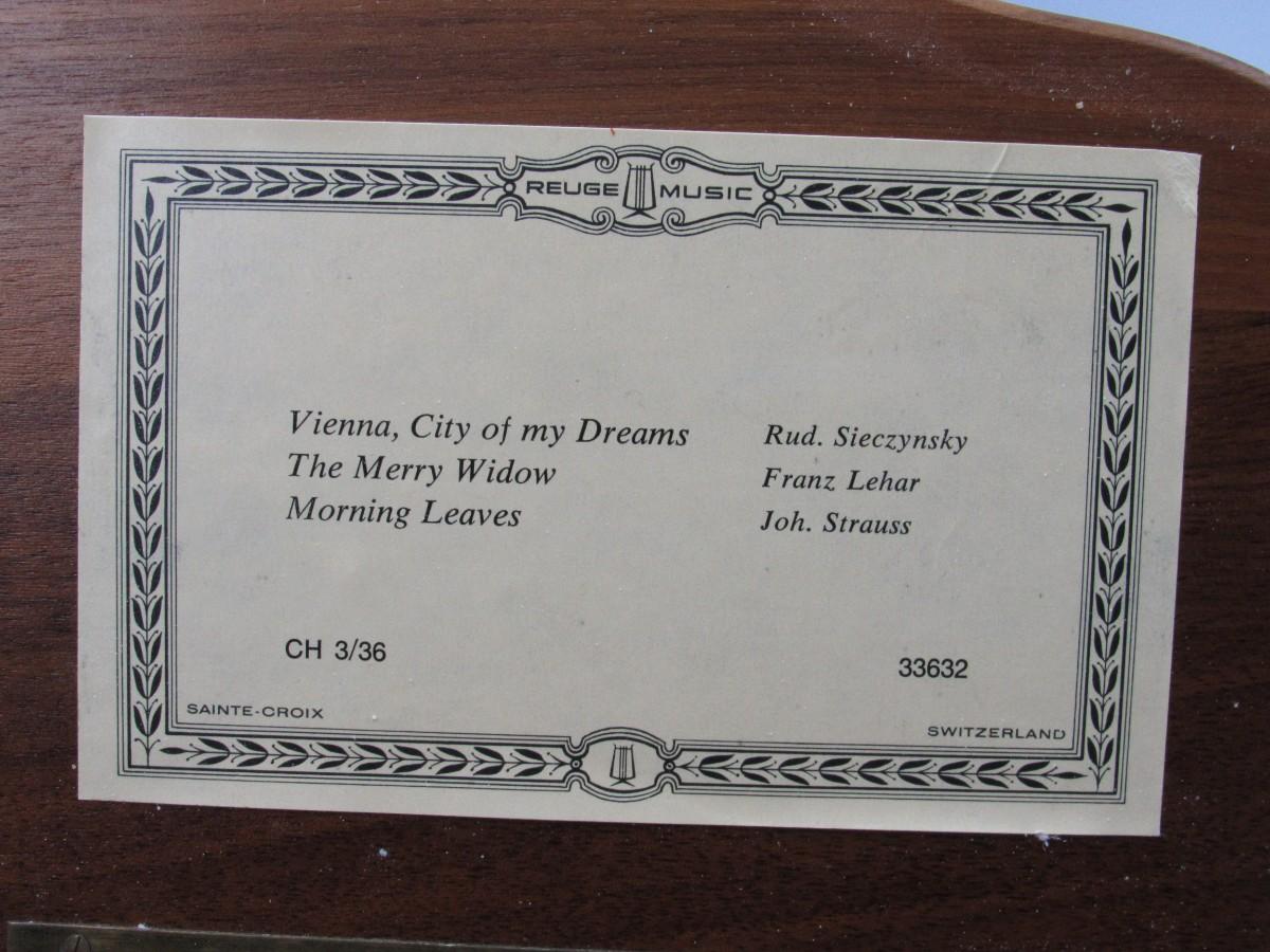 Reuge Musical Piano Box Music Vienna City of my Dreams The Merry Widow Morning Leaves Sainte-Croix