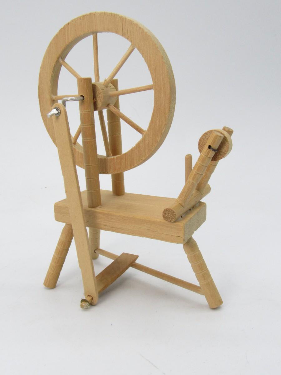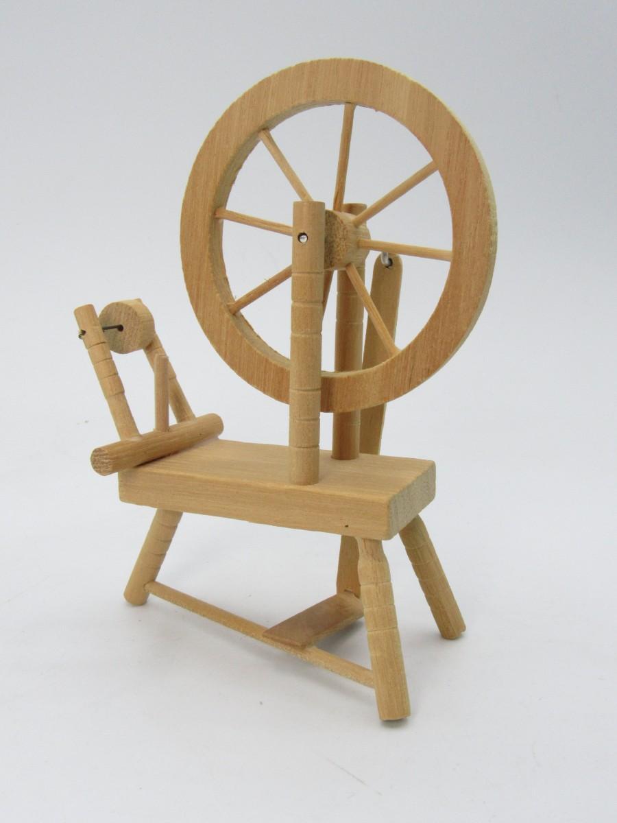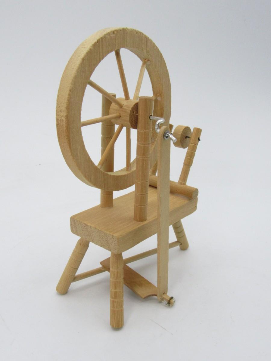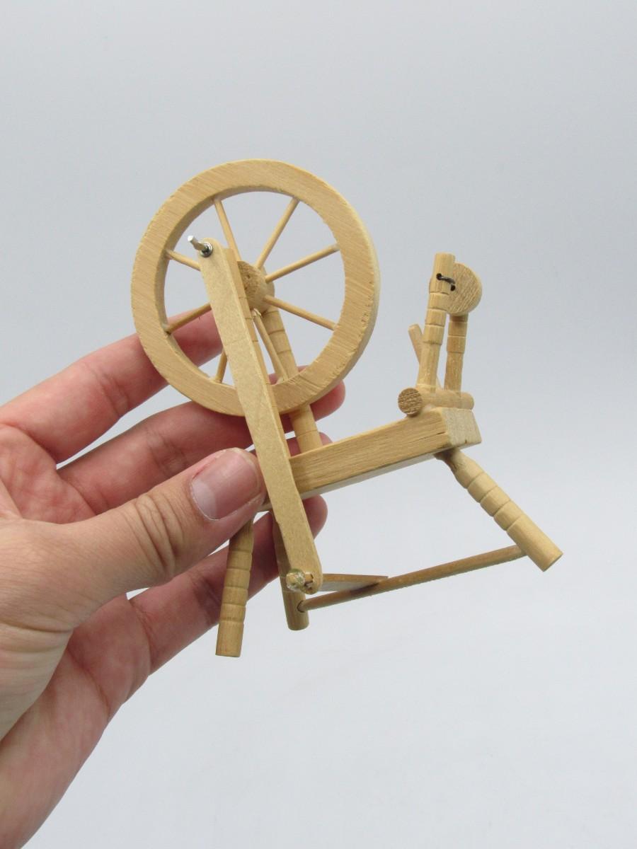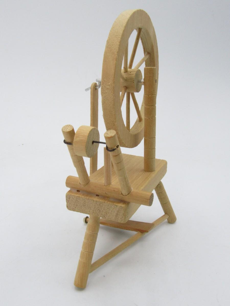 Small Wooden Handcrafted Big Wheel Sewing Spindle Miniature