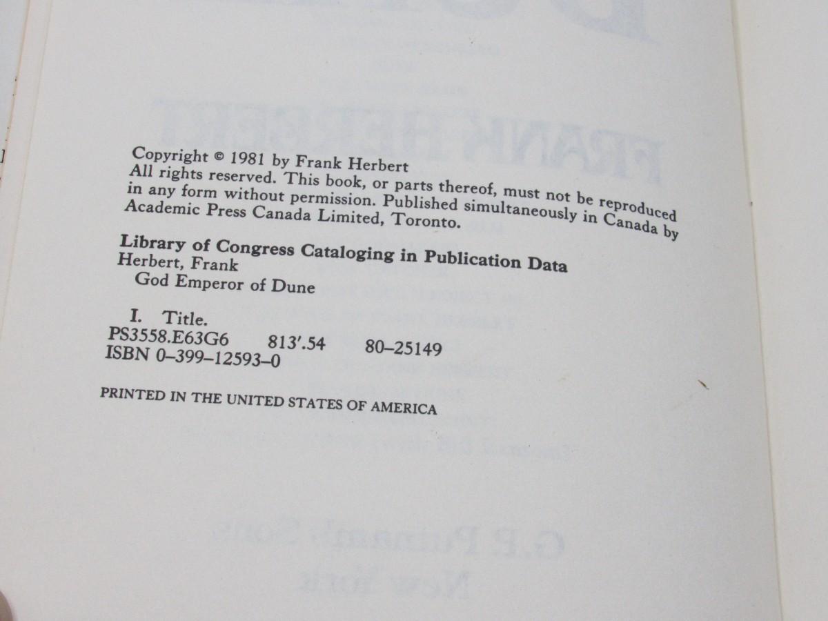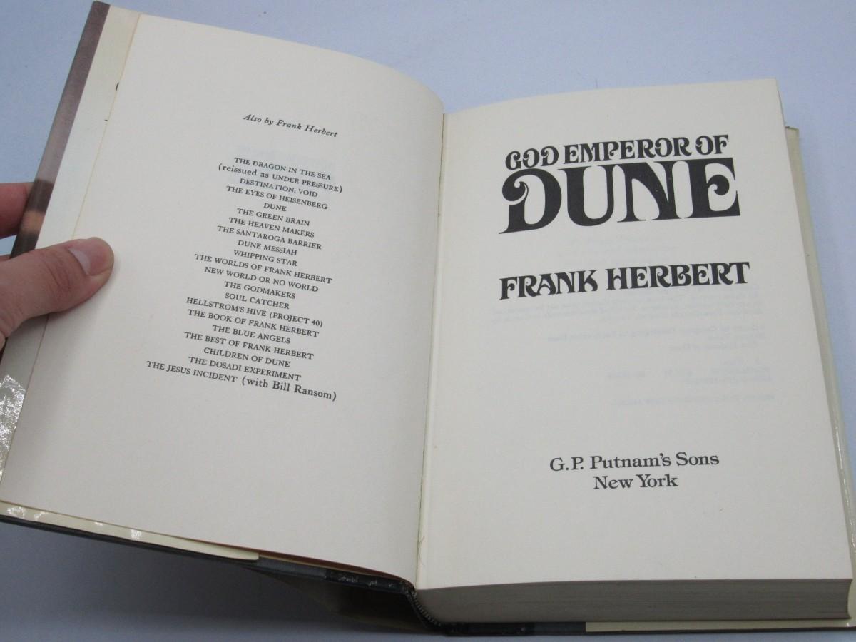 4th book in the Dune Series. Published in 1981. Great used condition, dust jacket is perfect except for a small tear at the top of the from cover.