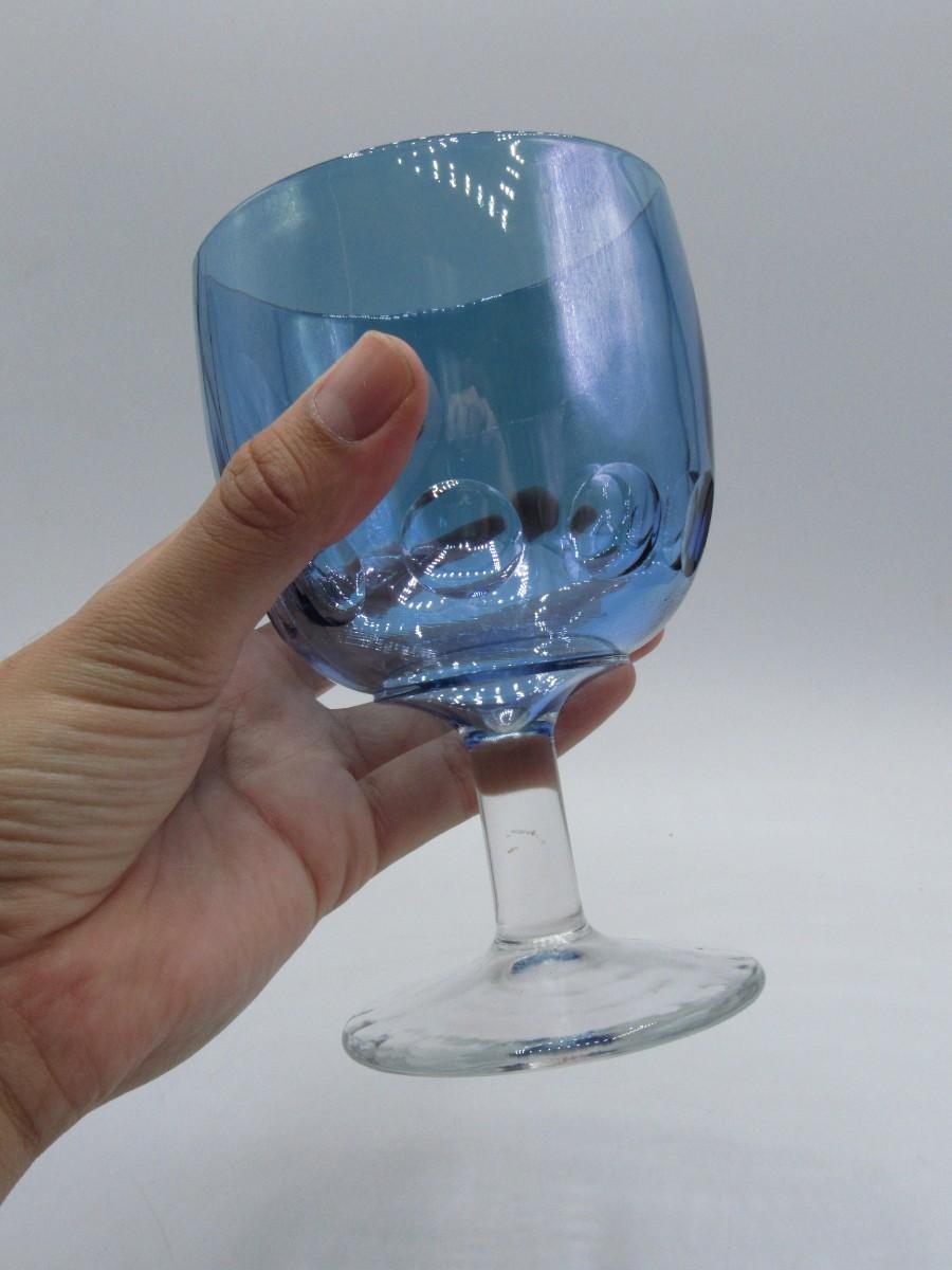 Vintage MCM Blue Bartlett Collins Thumbprint Goblet