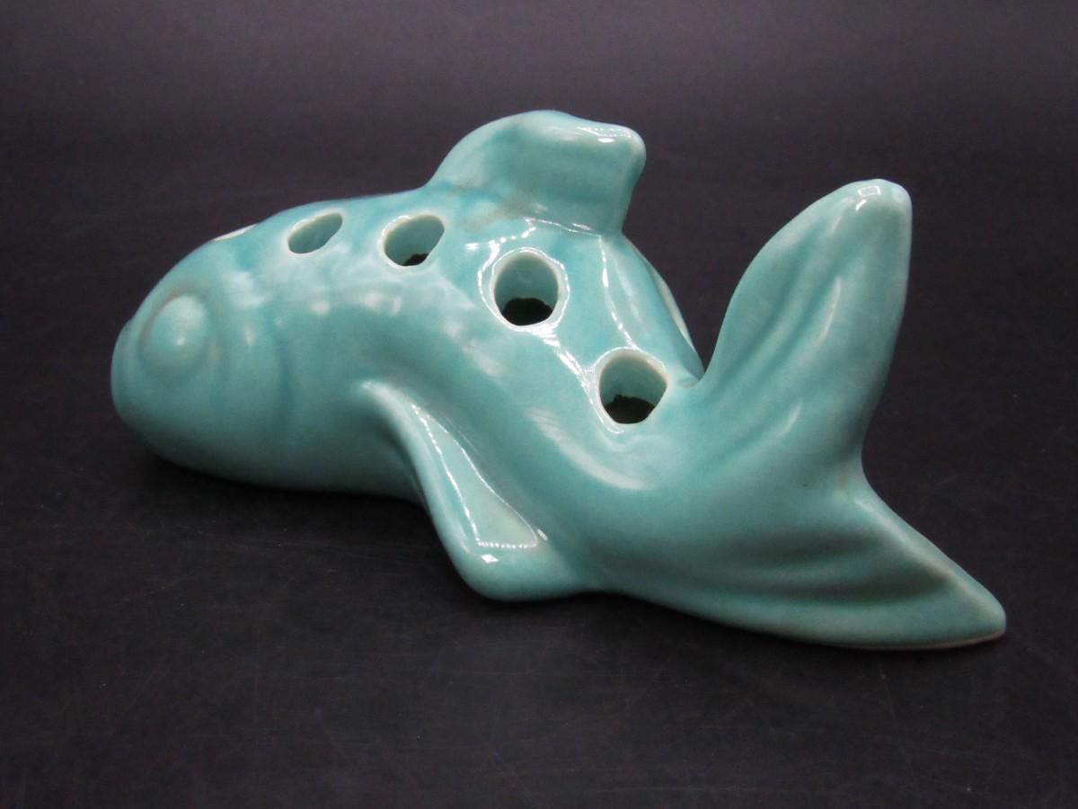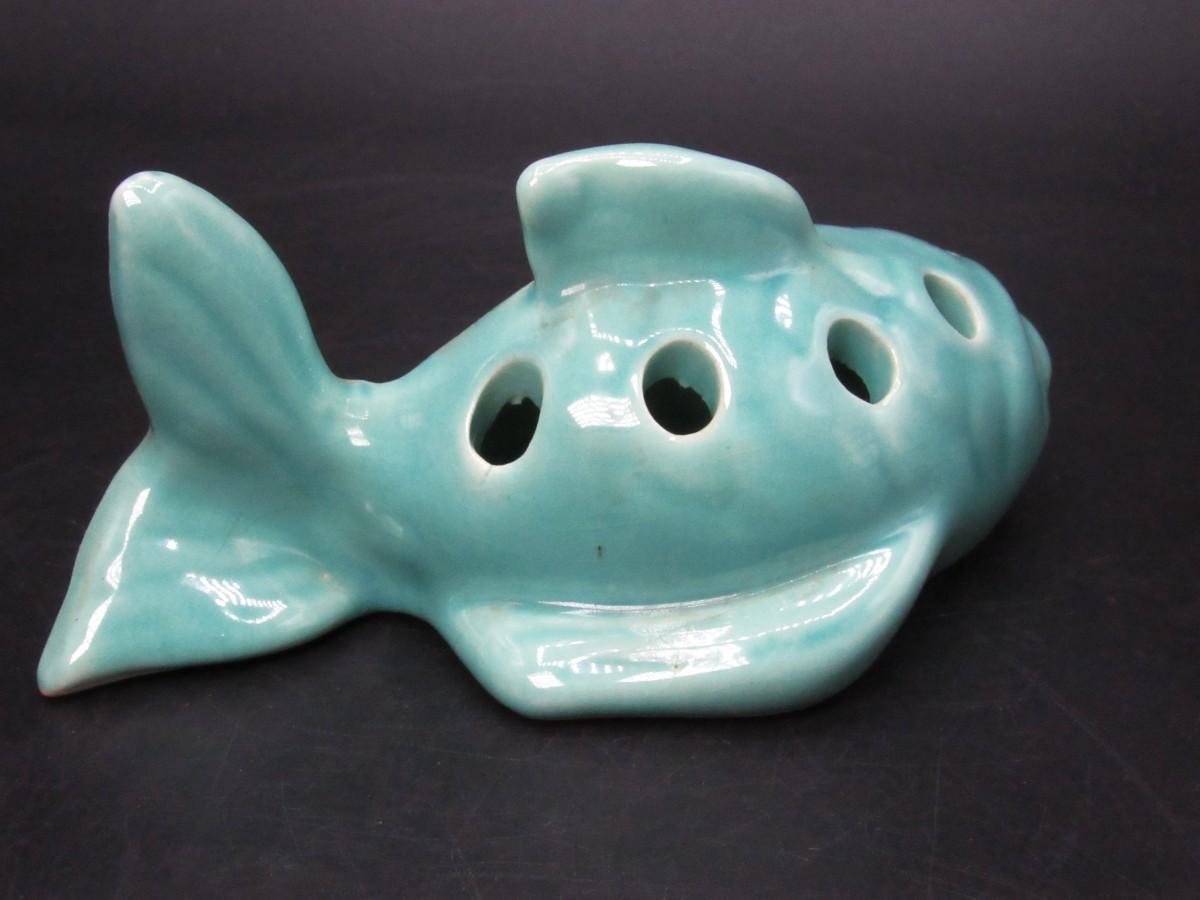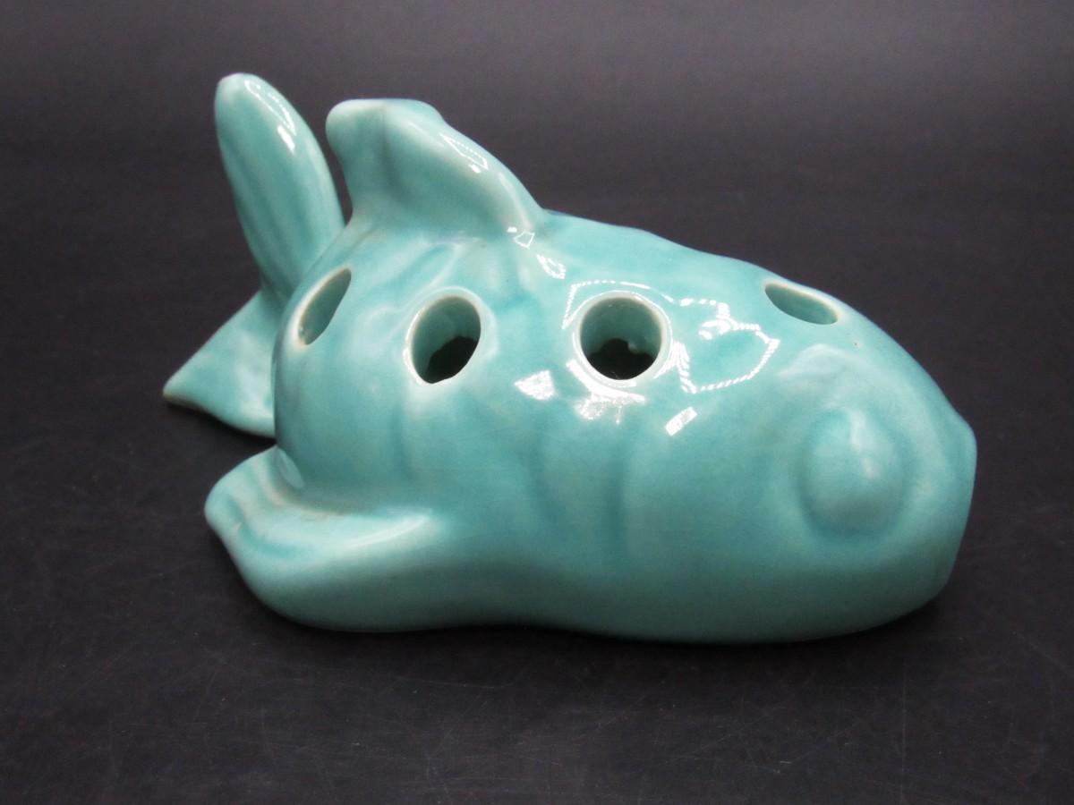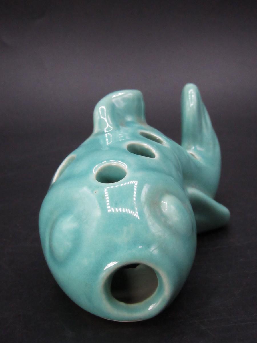 Retro Pottery Blue Ceramic Koi Fish Figurine Frog Flower Stem Holder