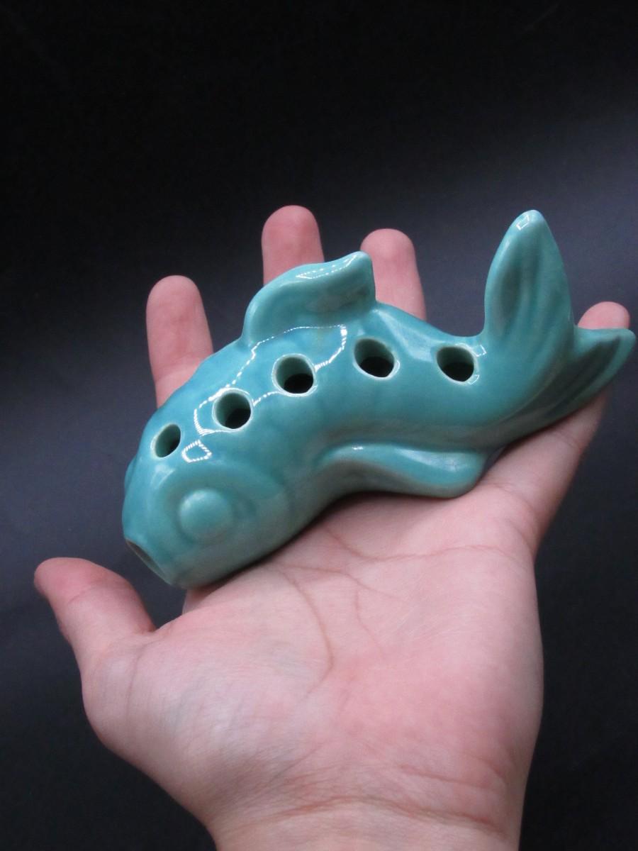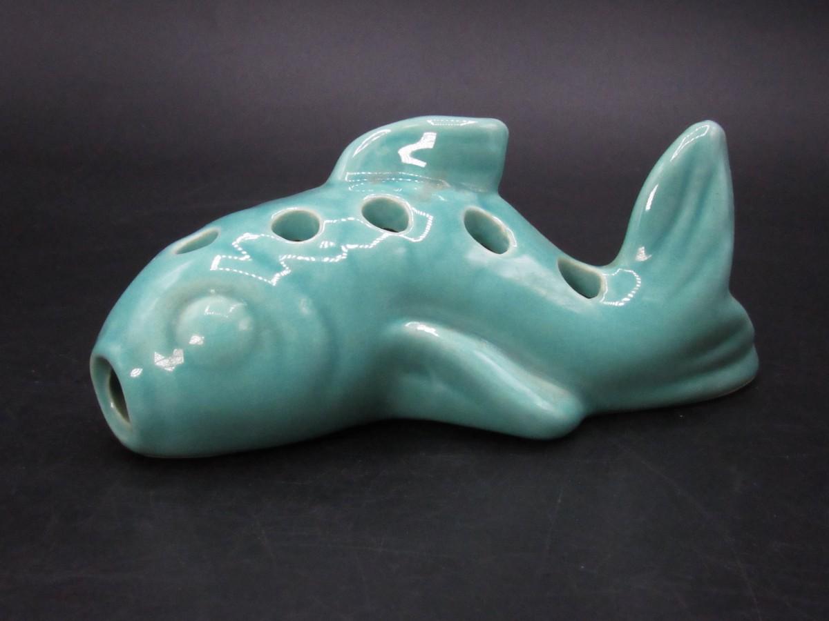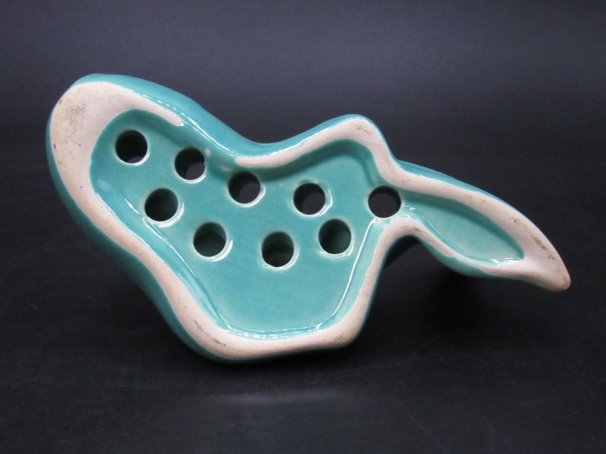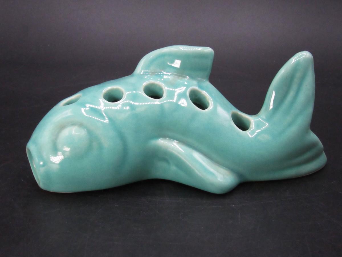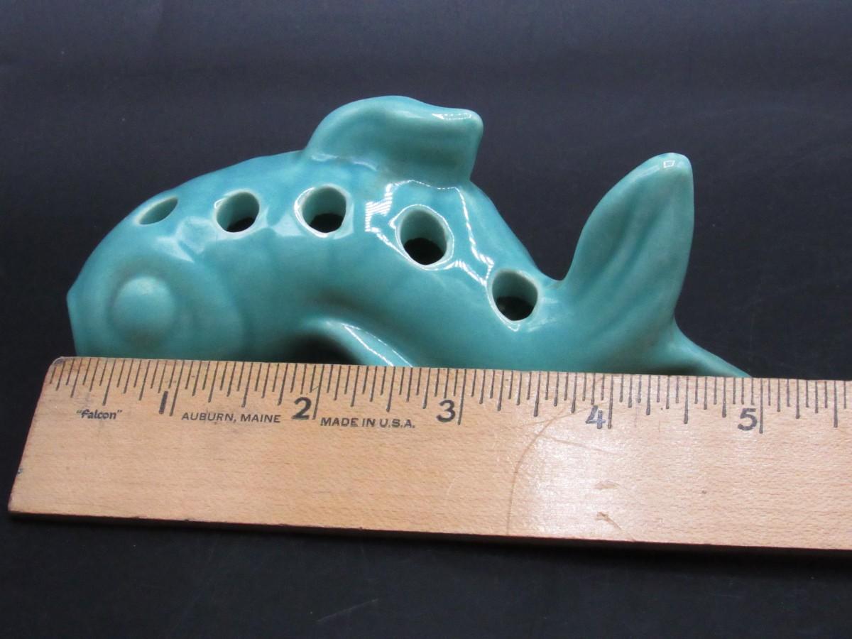 Retro Pottery Blue Ceramic Koi Fish Figurine Frog Flower Stem Holder