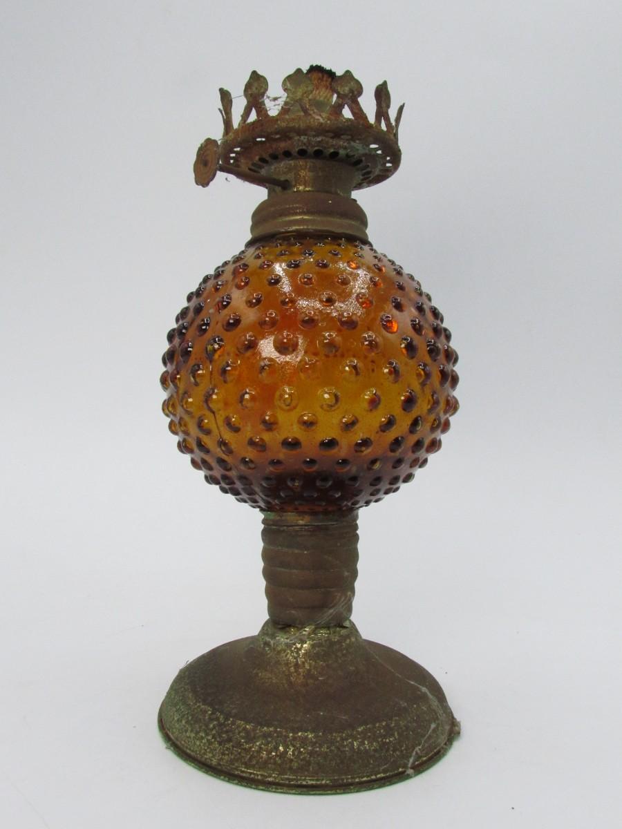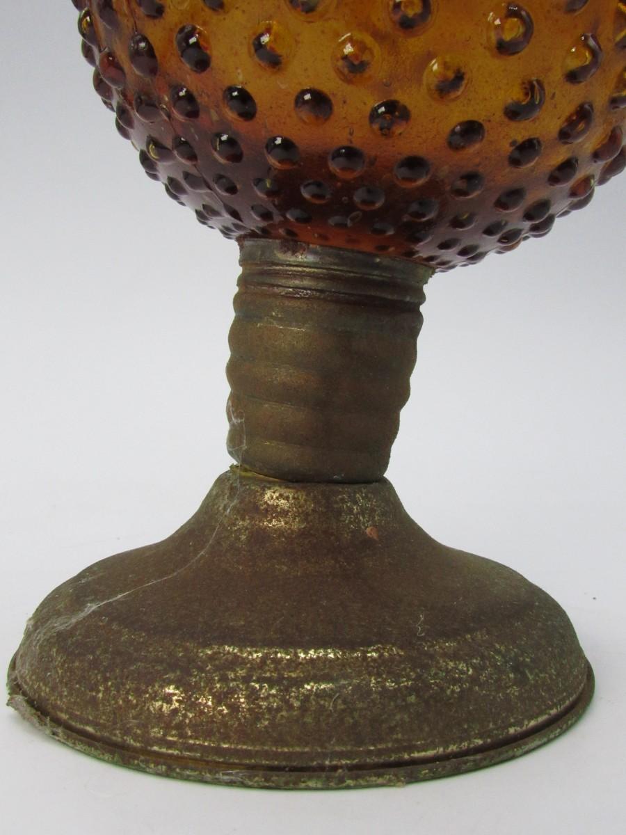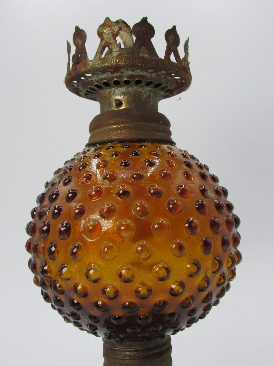 Vintage Amber Glass Sphere Hobnail Oil Lamp