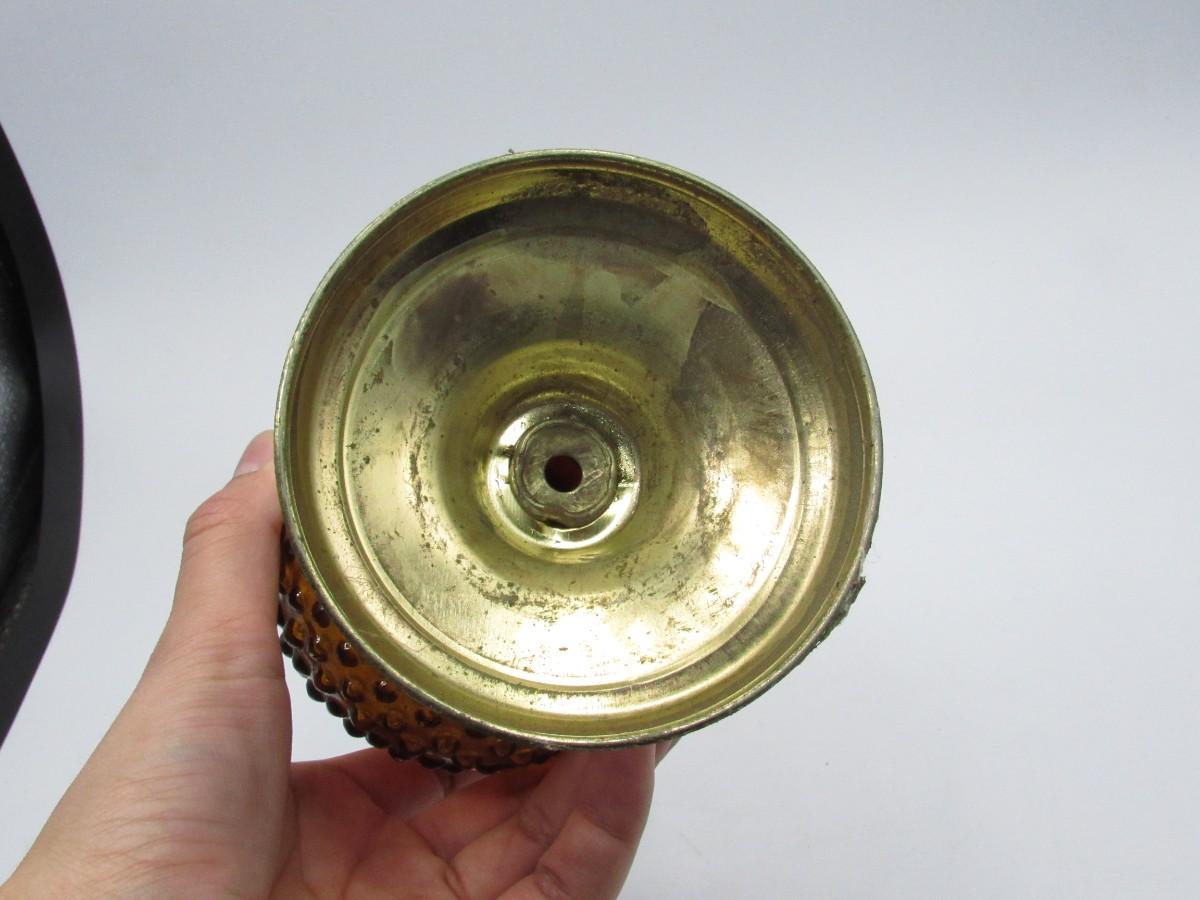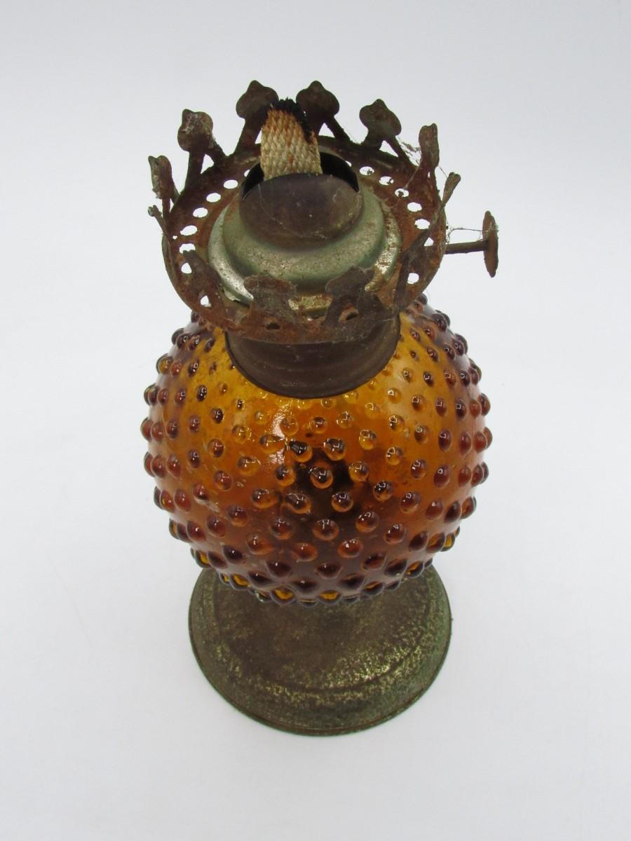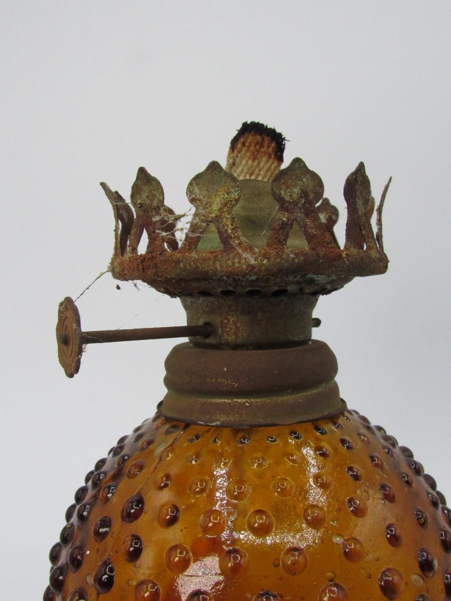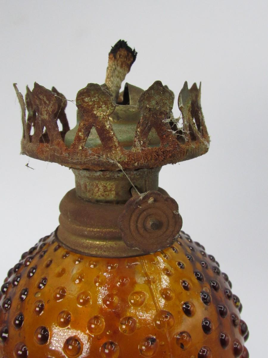 Vintage Amber Glass Sphere Hobnail Oil Lamp