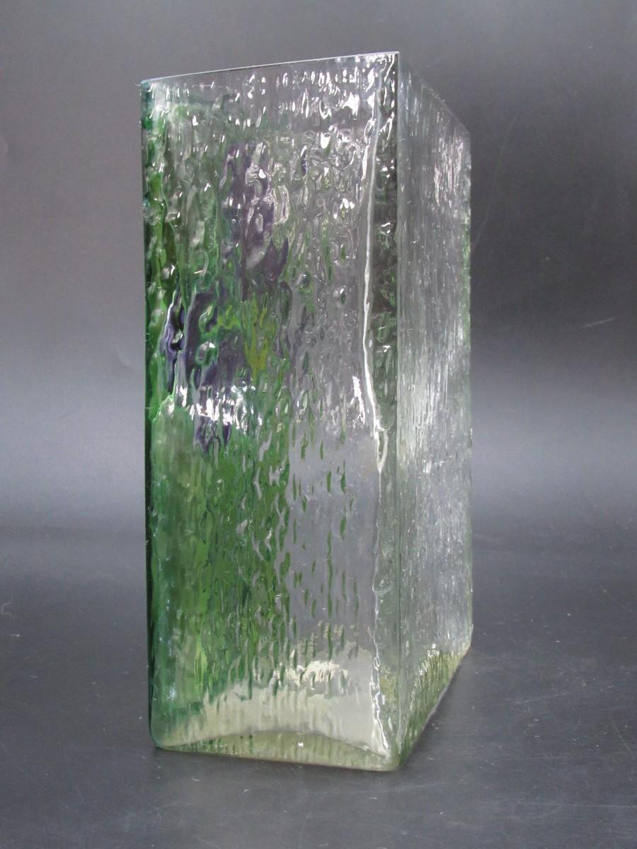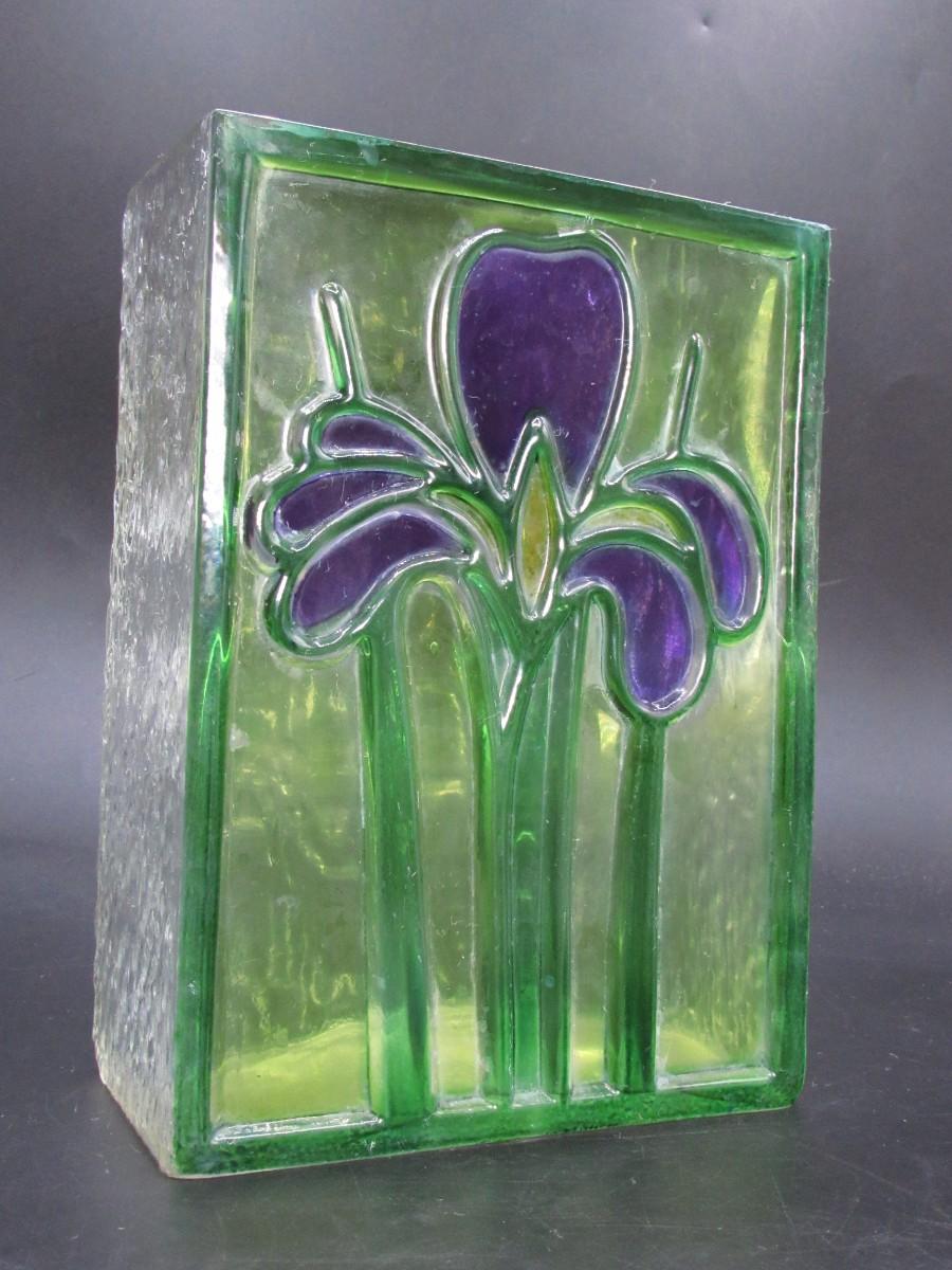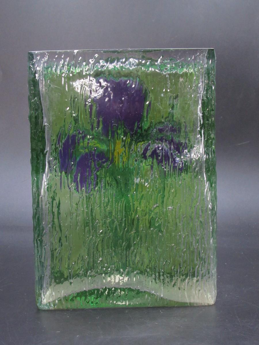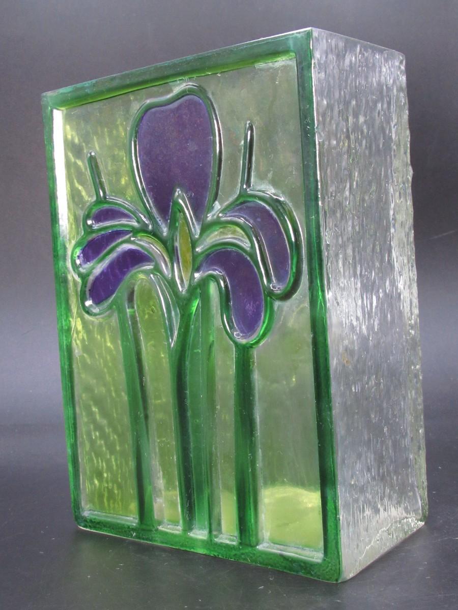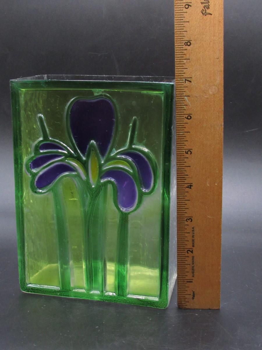 Vintage F.T.D.A. 1985 Romania Art Glass Iris Stain Glass Rectangular Flower Vase