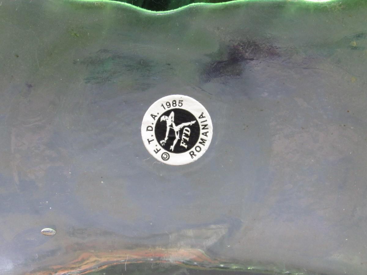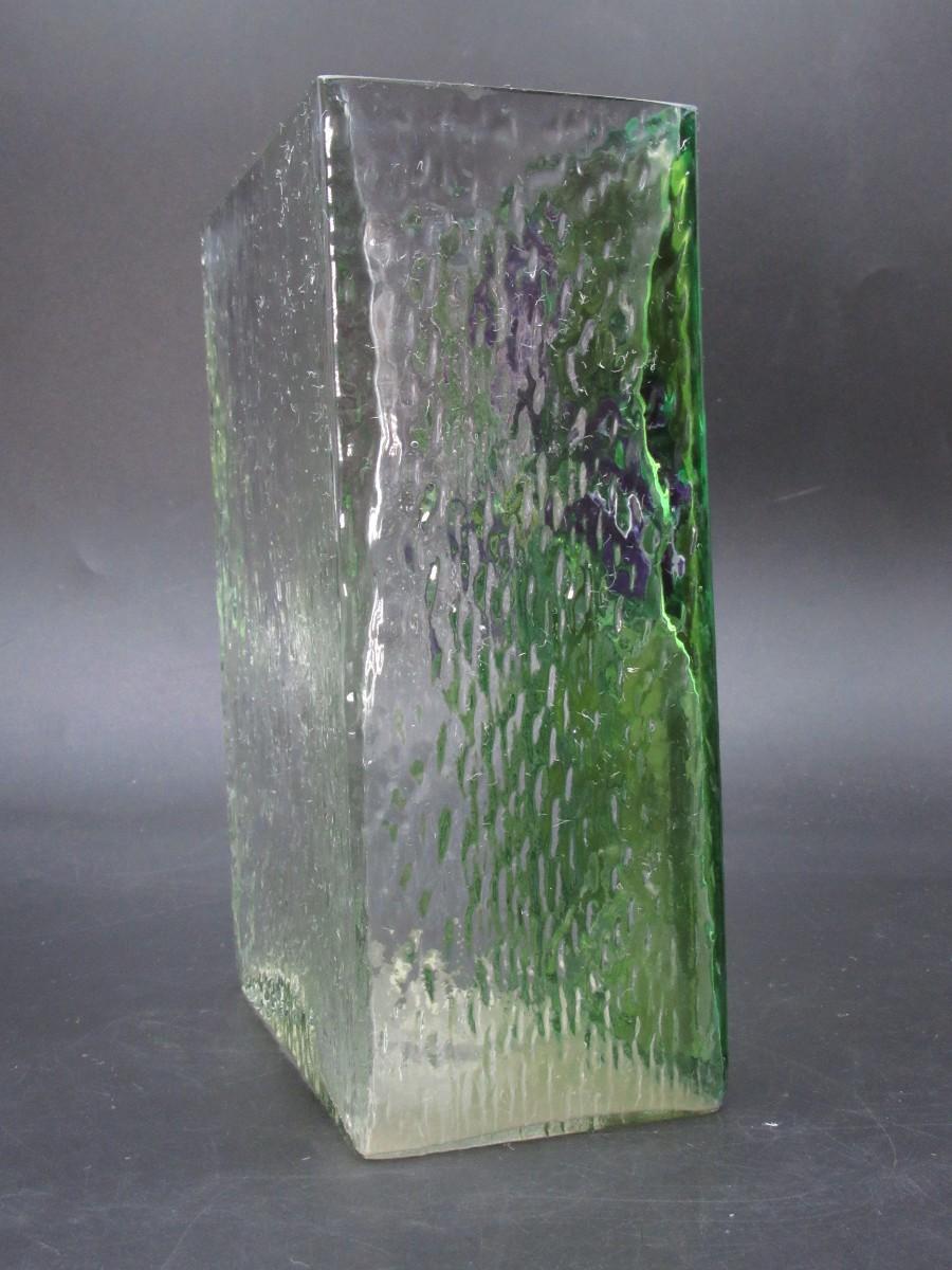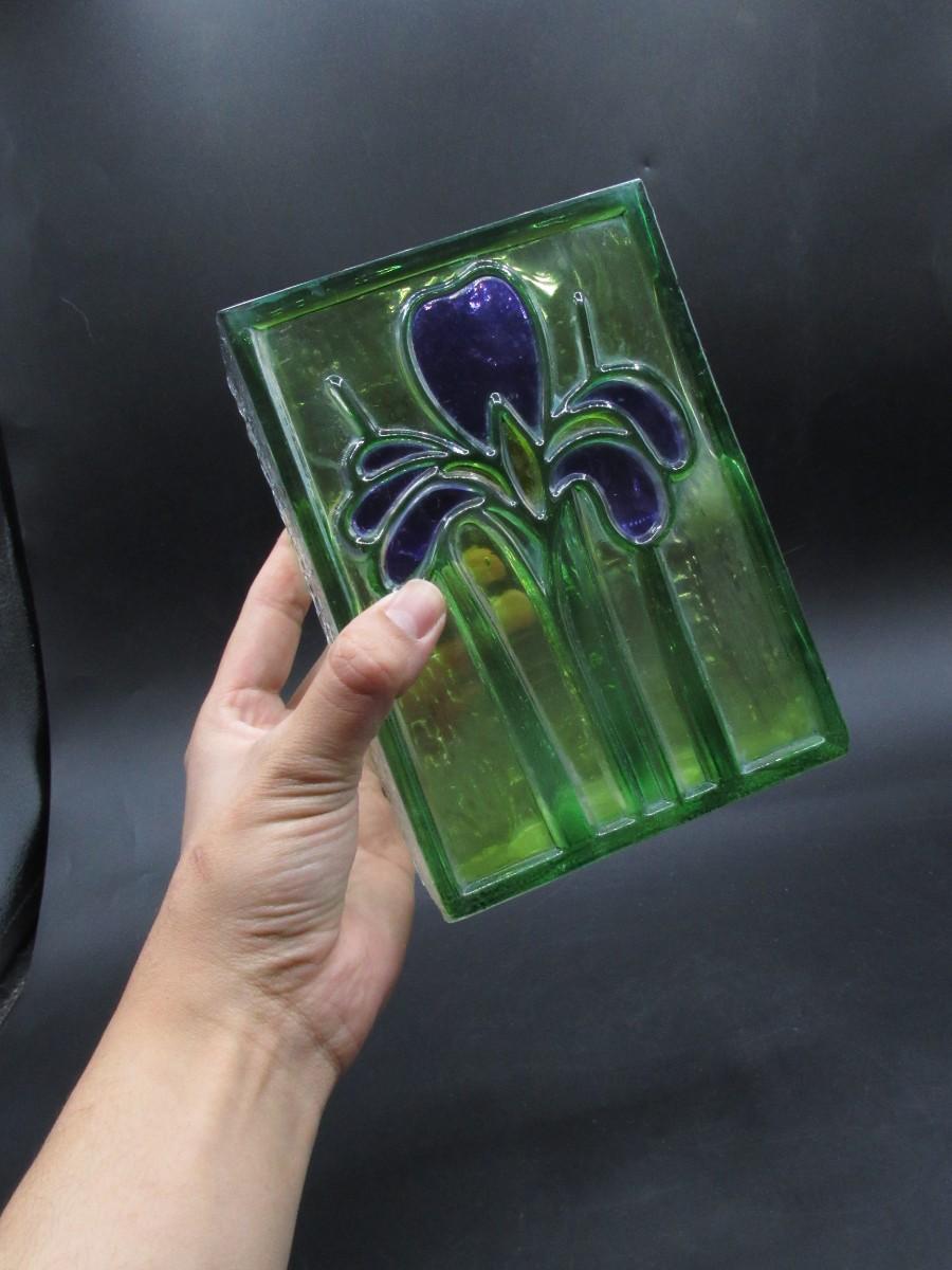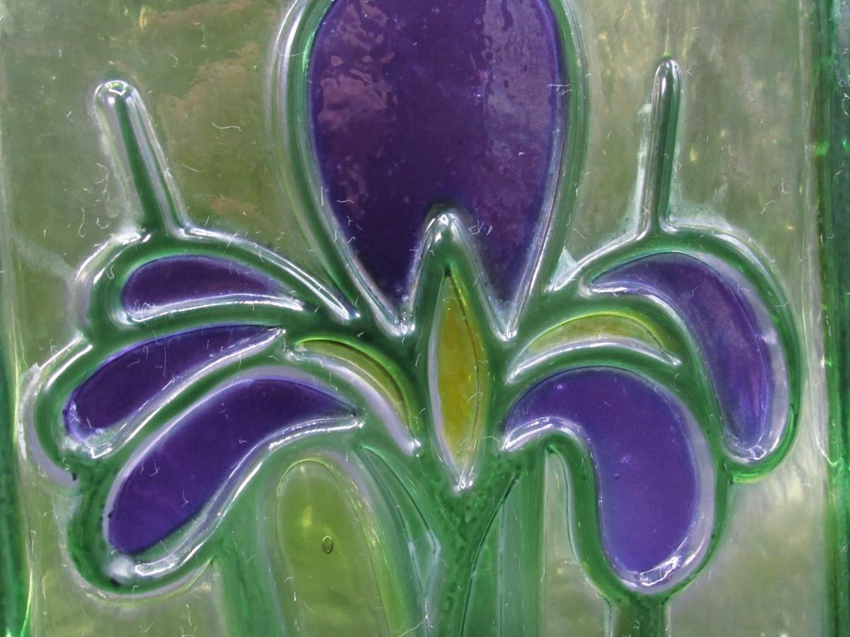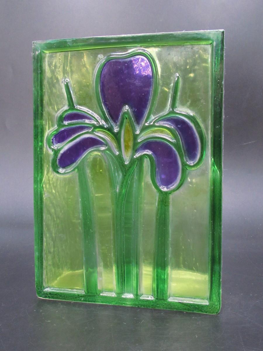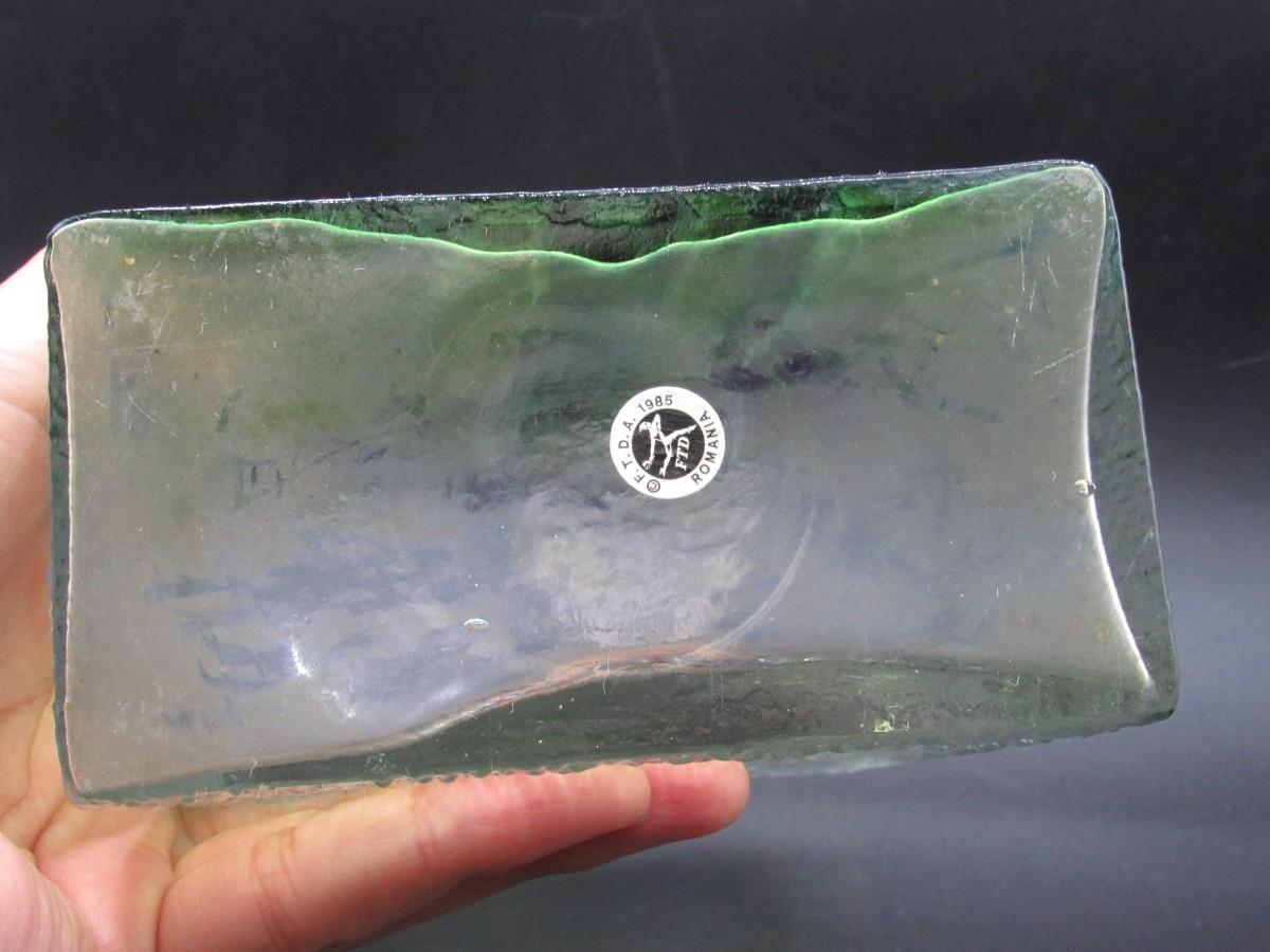 Vintage F.T.D.A. 1985 Romania Art Glass Iris Stain Glass Rectangular Flower Vase