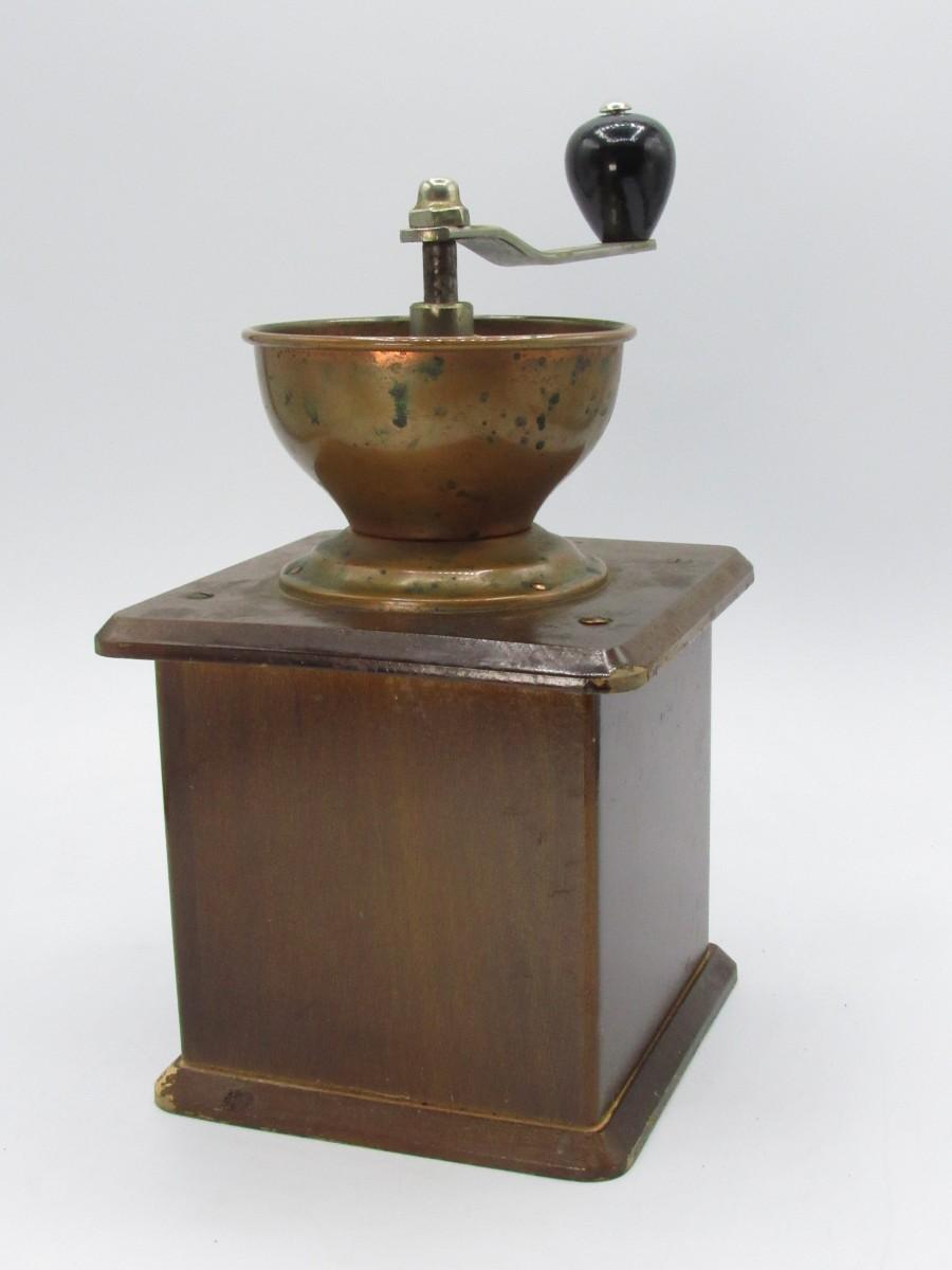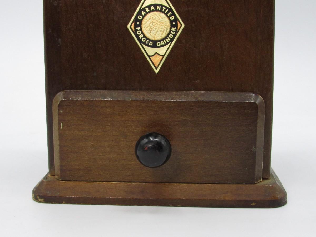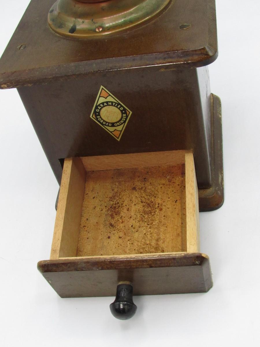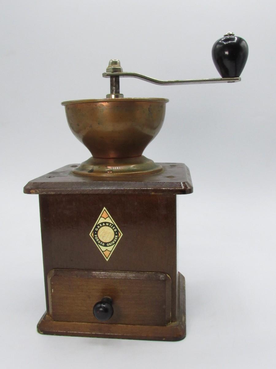 Circa 1950 Guarantied Forged Coffee Grinder made in Germany Wood/Copper table model