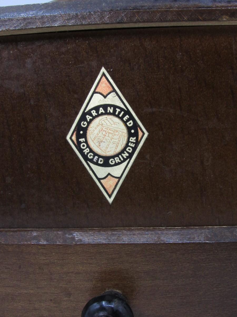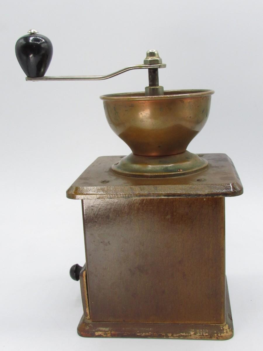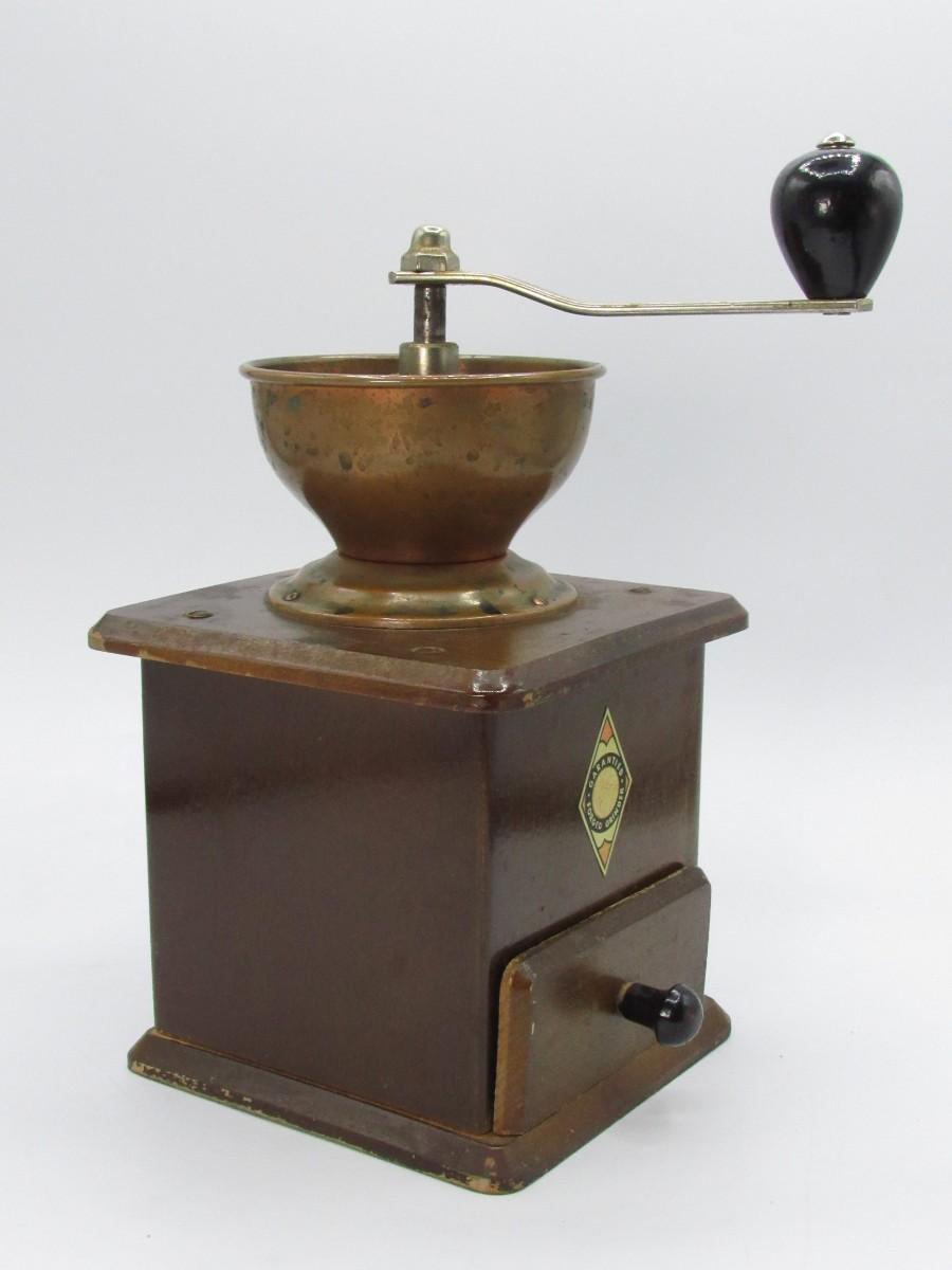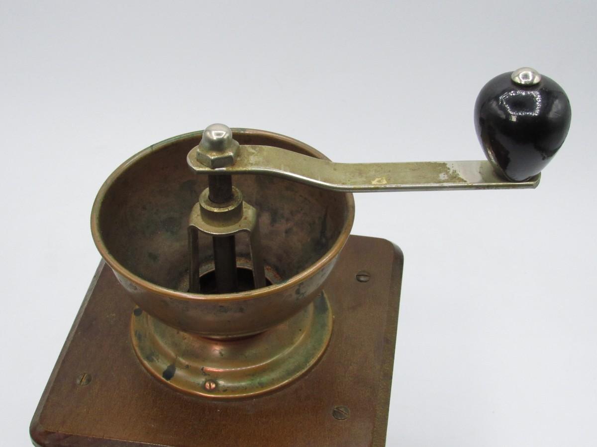 Circa 1950 Guarantied Forged Coffee Grinder made in Germany Wood/Copper table model