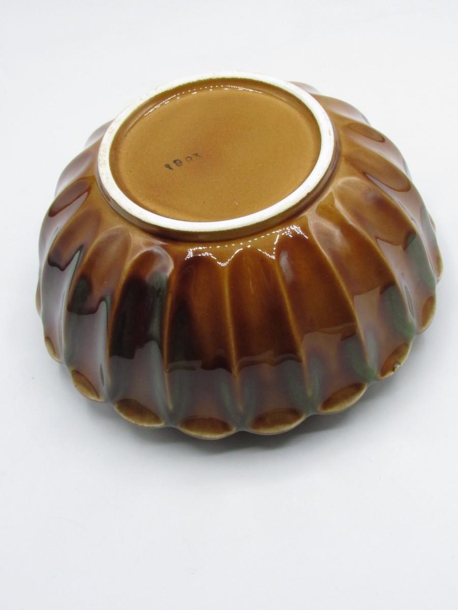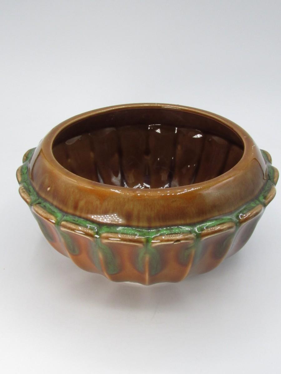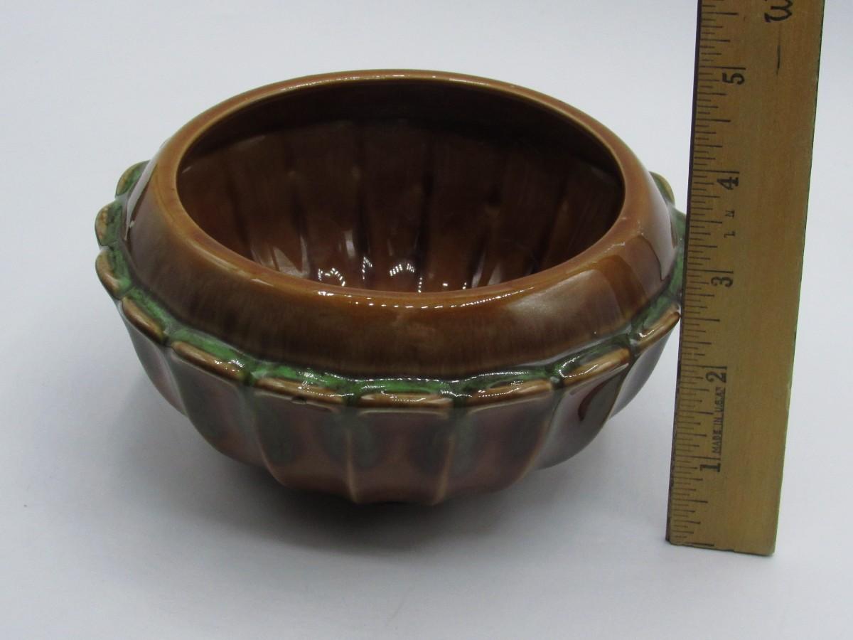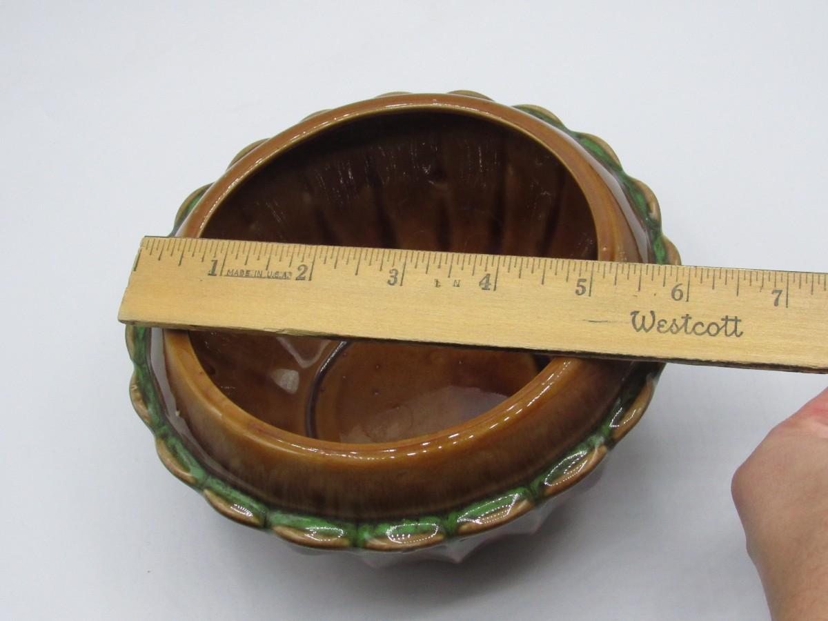 Vintage Green & Brown Ceramic Glazed MCM Decorative Bowl