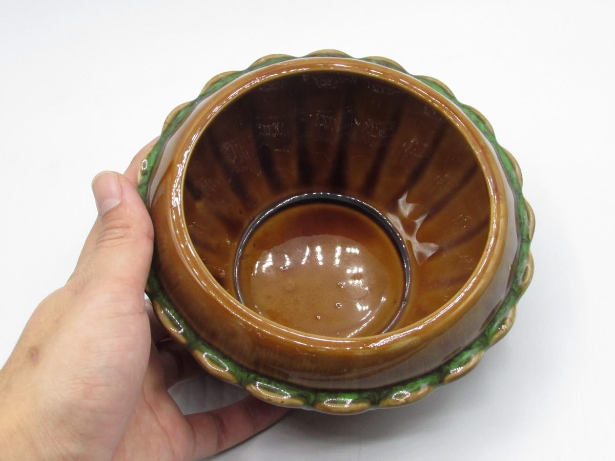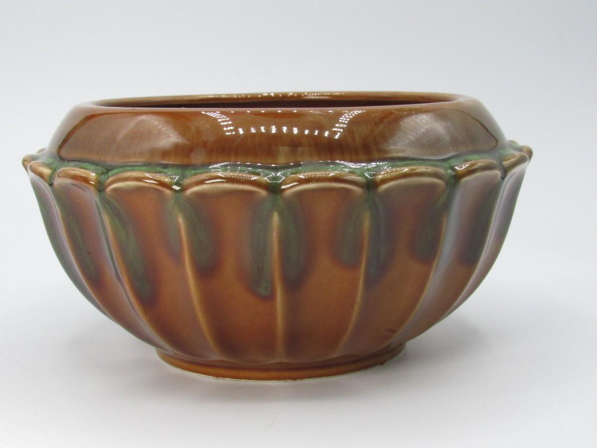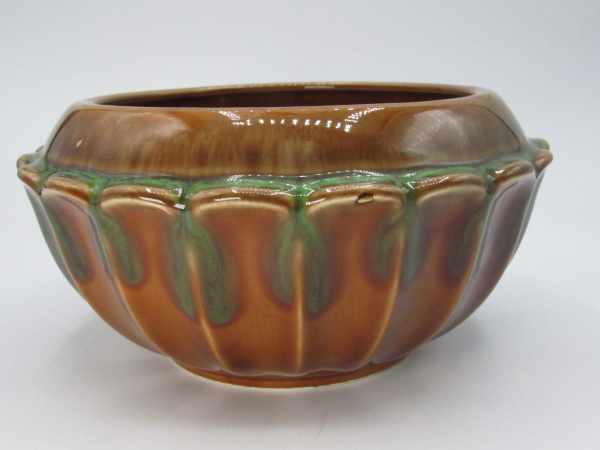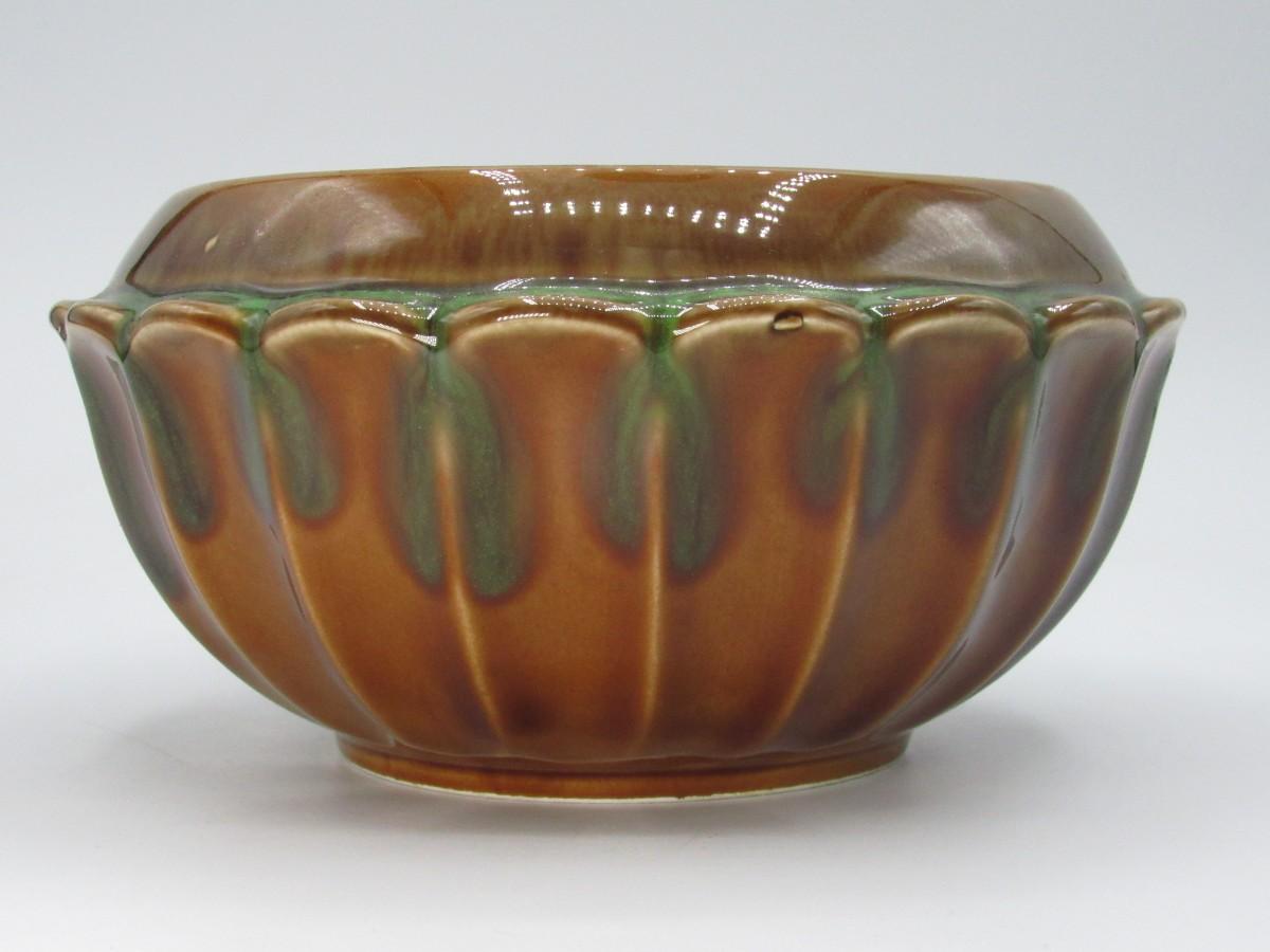 Vintage Green & Brown Ceramic Glazed MCM Decorative Bowl