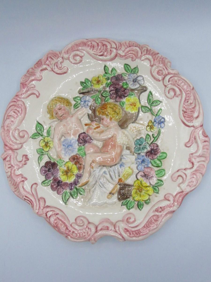 VIntage Novelo Mexico Cherub Angels Folk Art Display Angel Plate