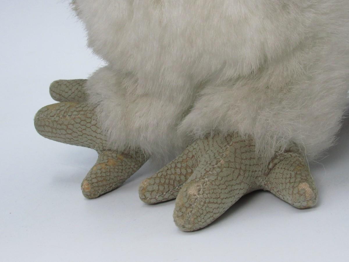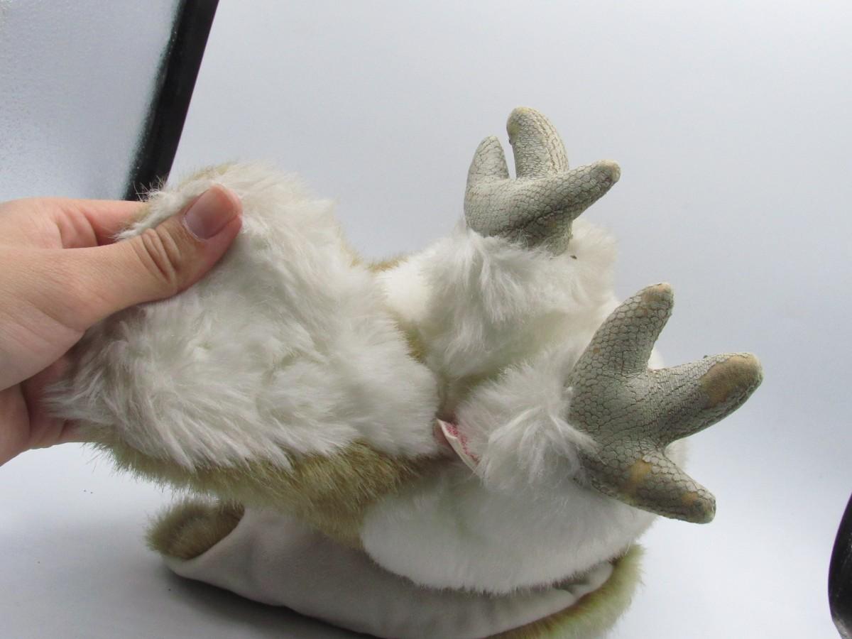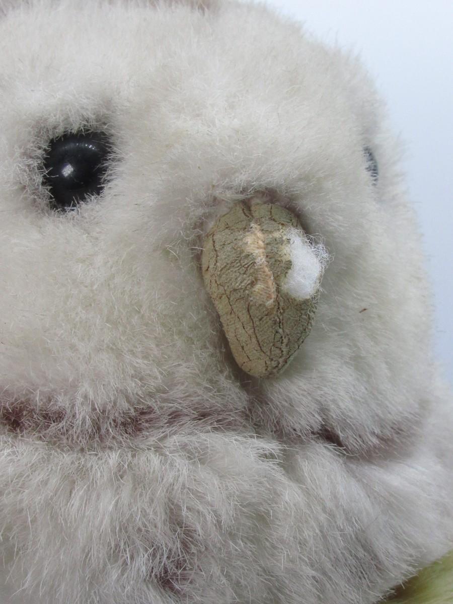 There is noticeable wear to the beak and feet, but there is no overall damage. Check pictures for more details and sizing.