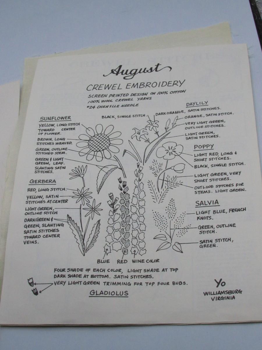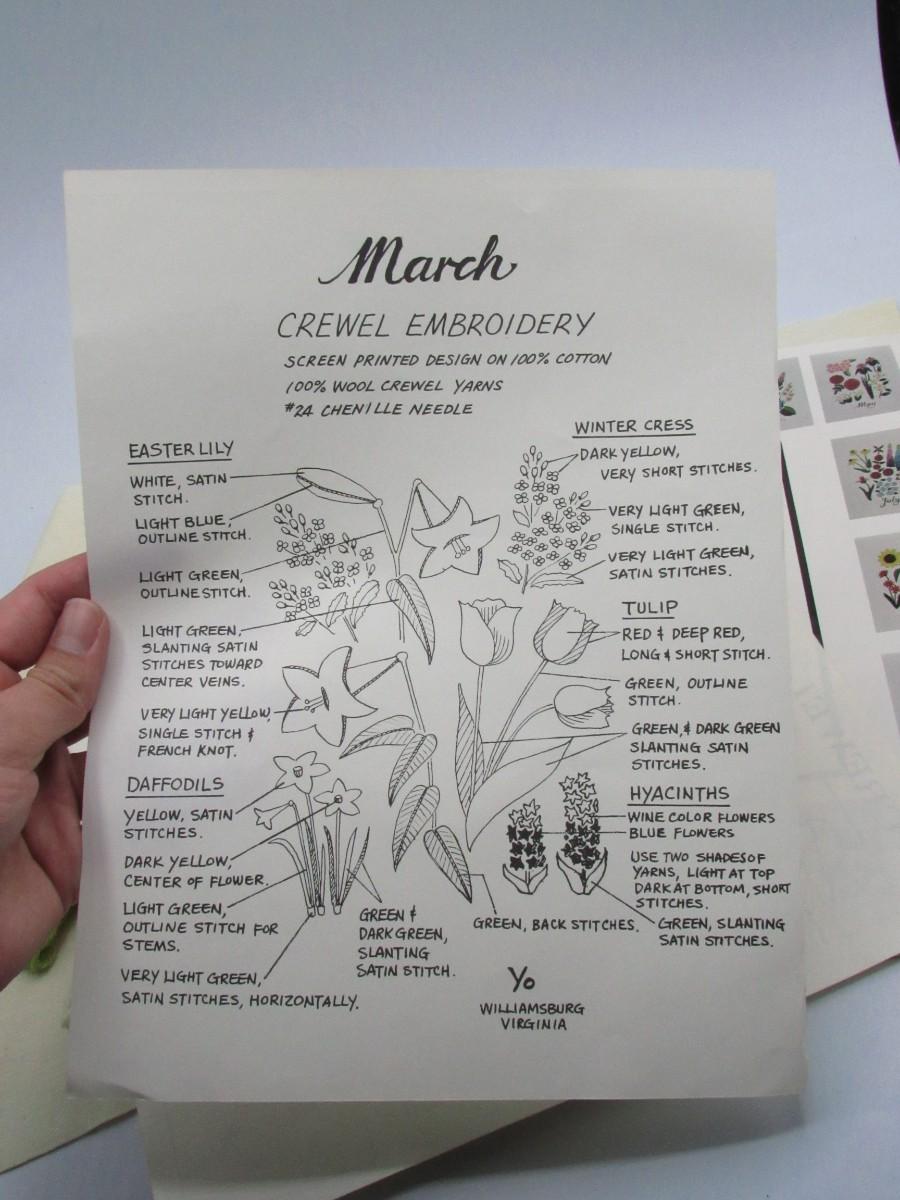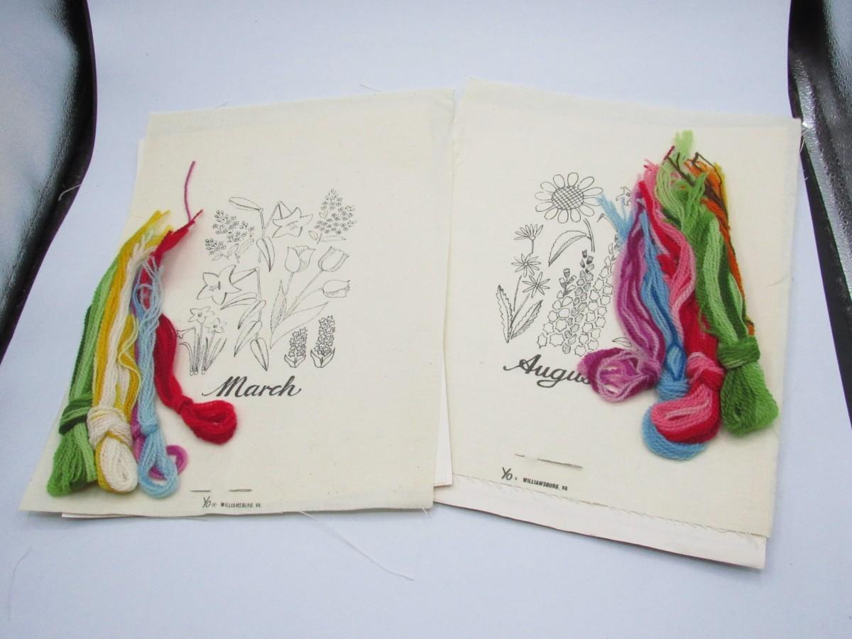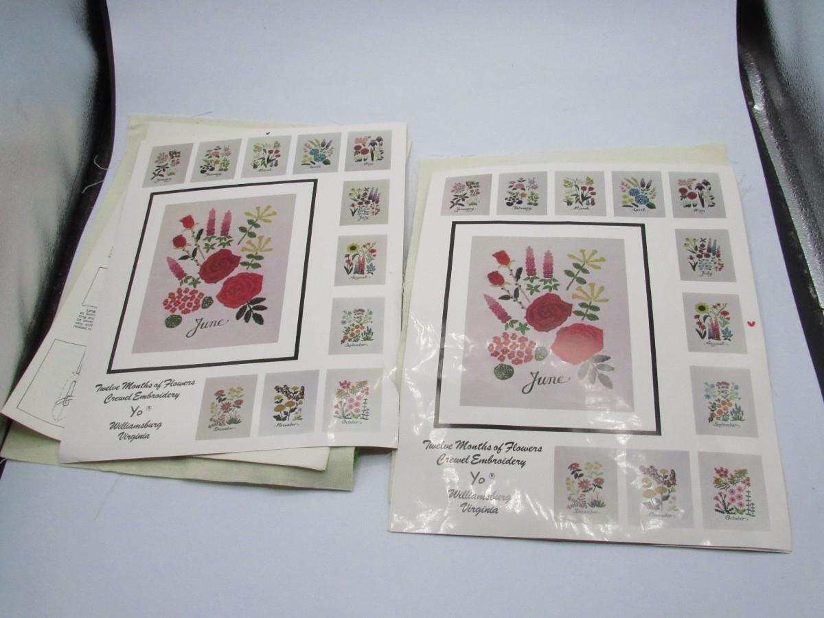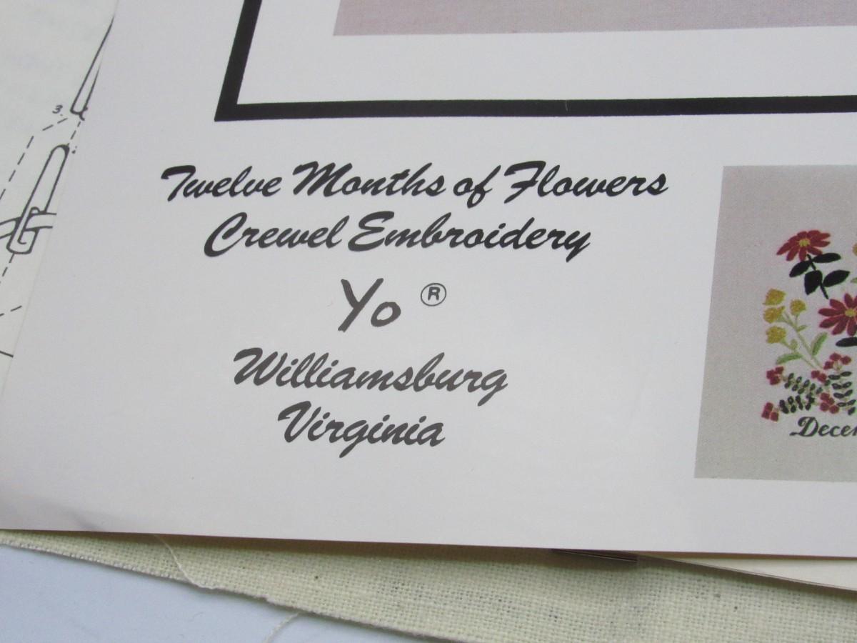 Twelve Months of Flowers Crewel Embroidery Yo Williamsburg Virginia Sewing Kits