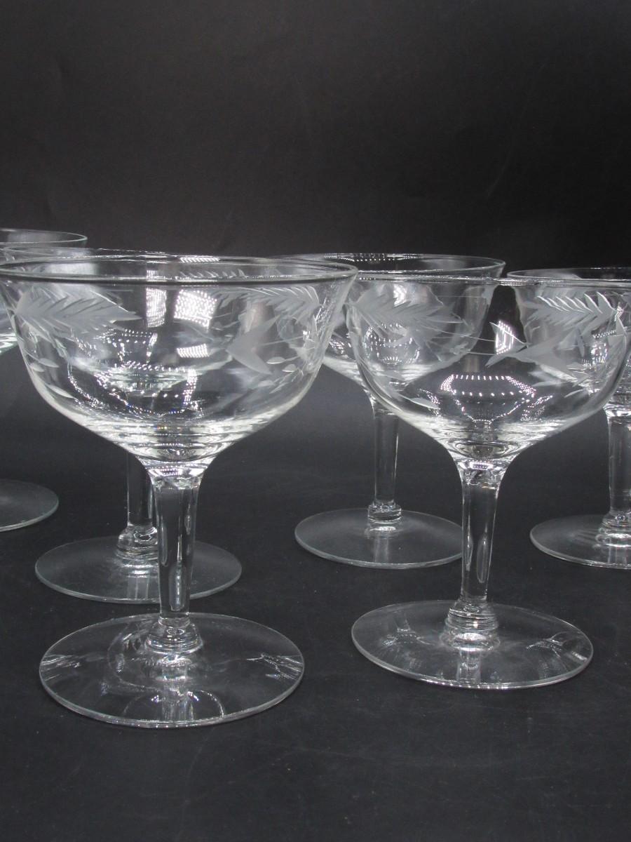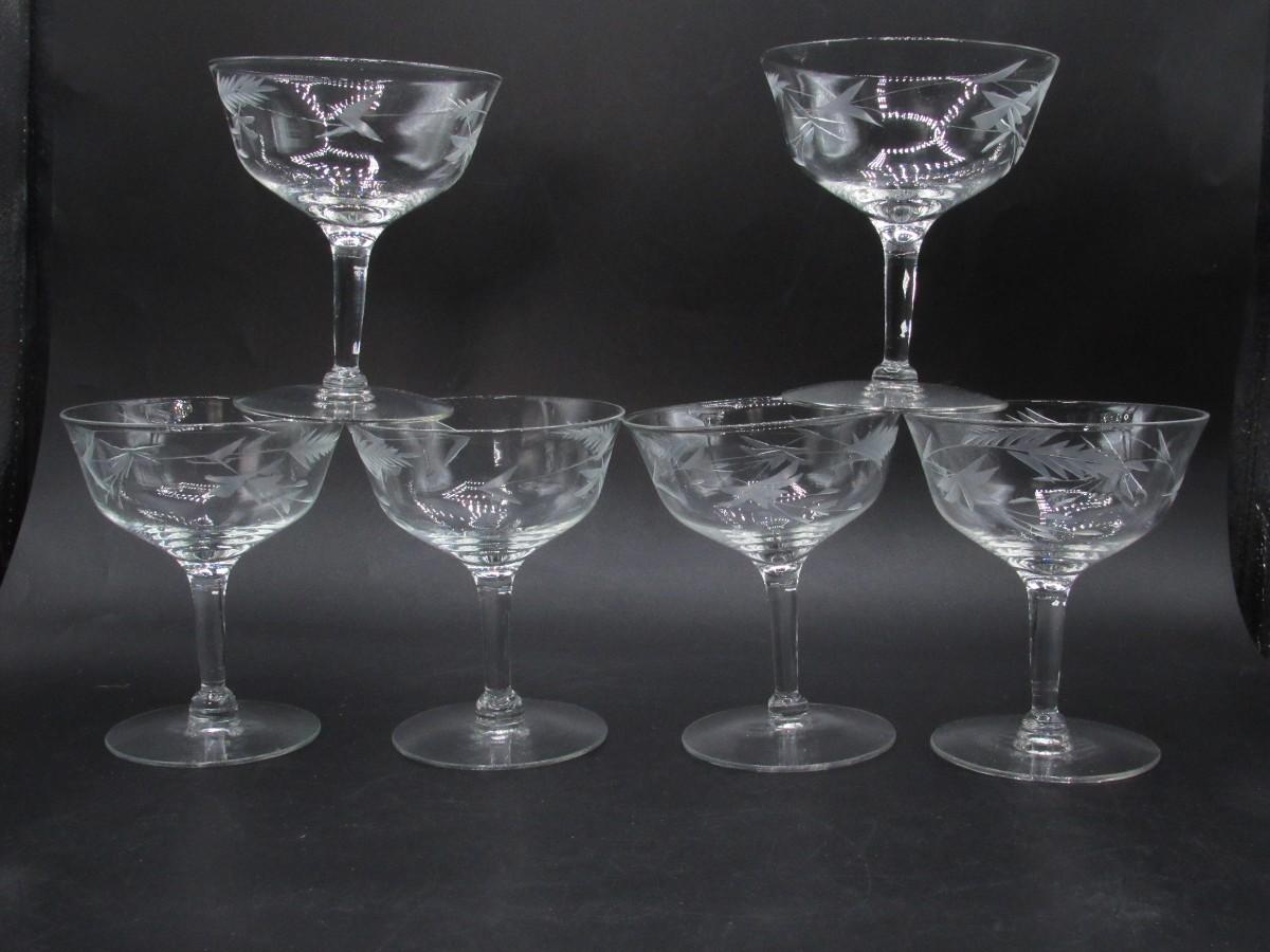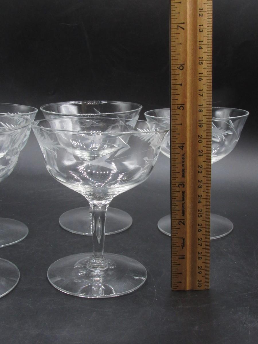 Lot of 6 Vintage Etched Sherbet Wine Cocktail Glasses
