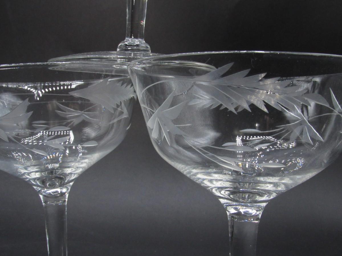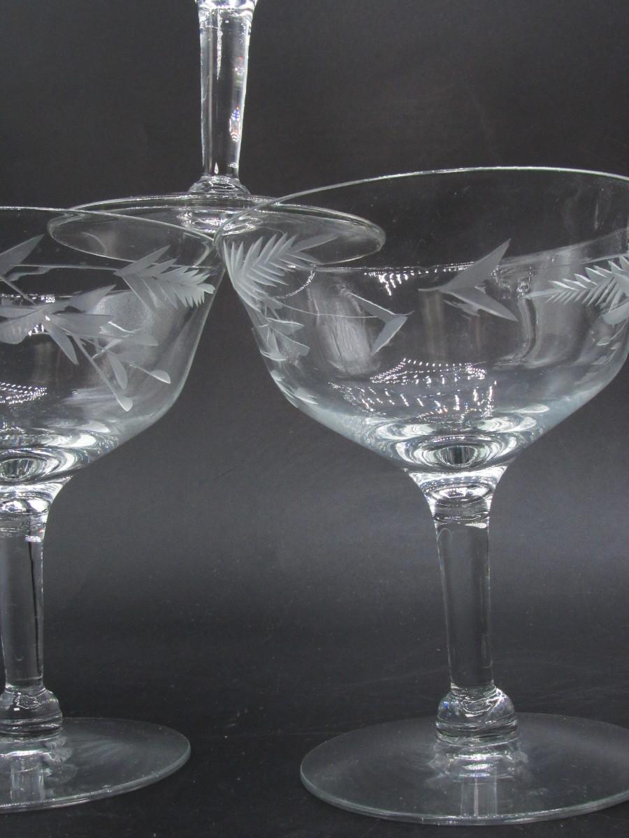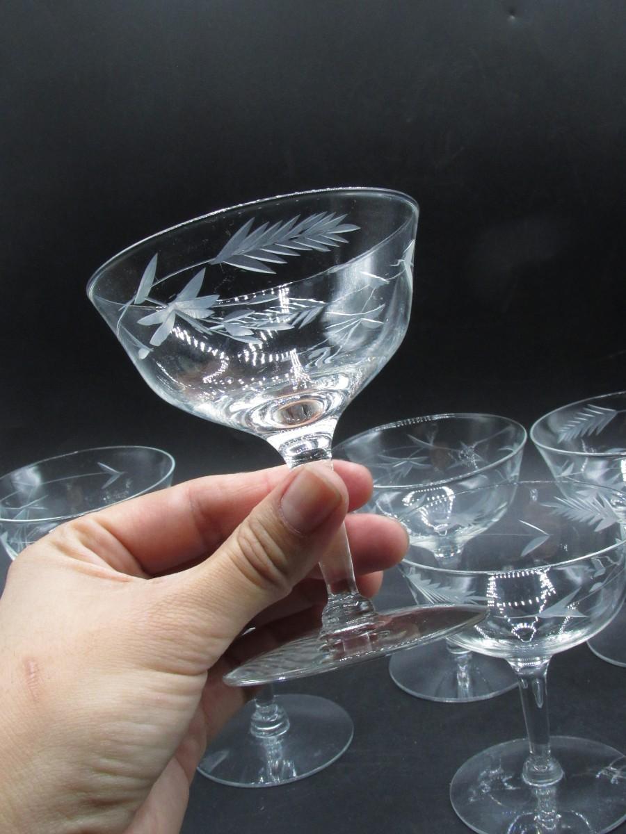 Lot of 6 Vintage Etched Sherbet Wine Cocktail Glasses