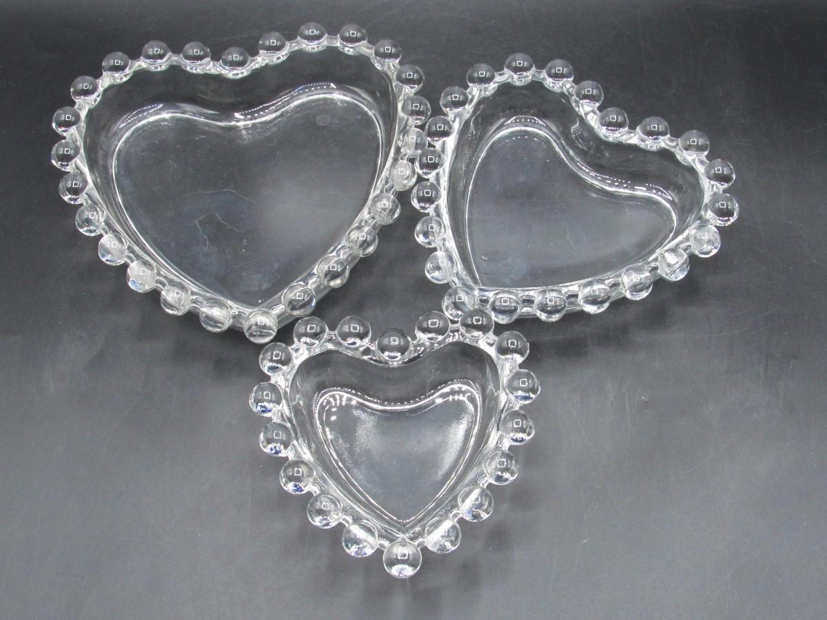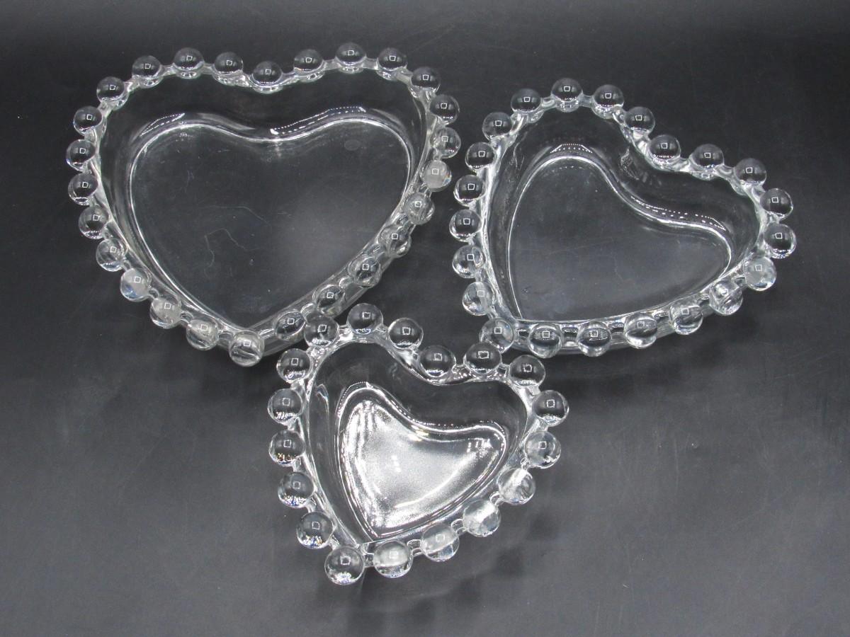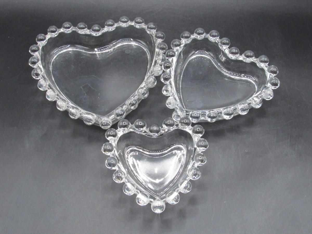 Imperial Candlewick 3 Piece Heart Shaped Nesting Dishes