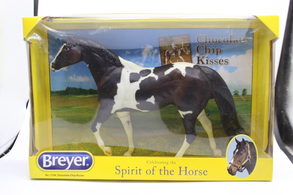 New in Box Breyer collectible horse model figurine. Name is Chocolate Chip Kisses, a Pinto Pony. Item No. 1739.