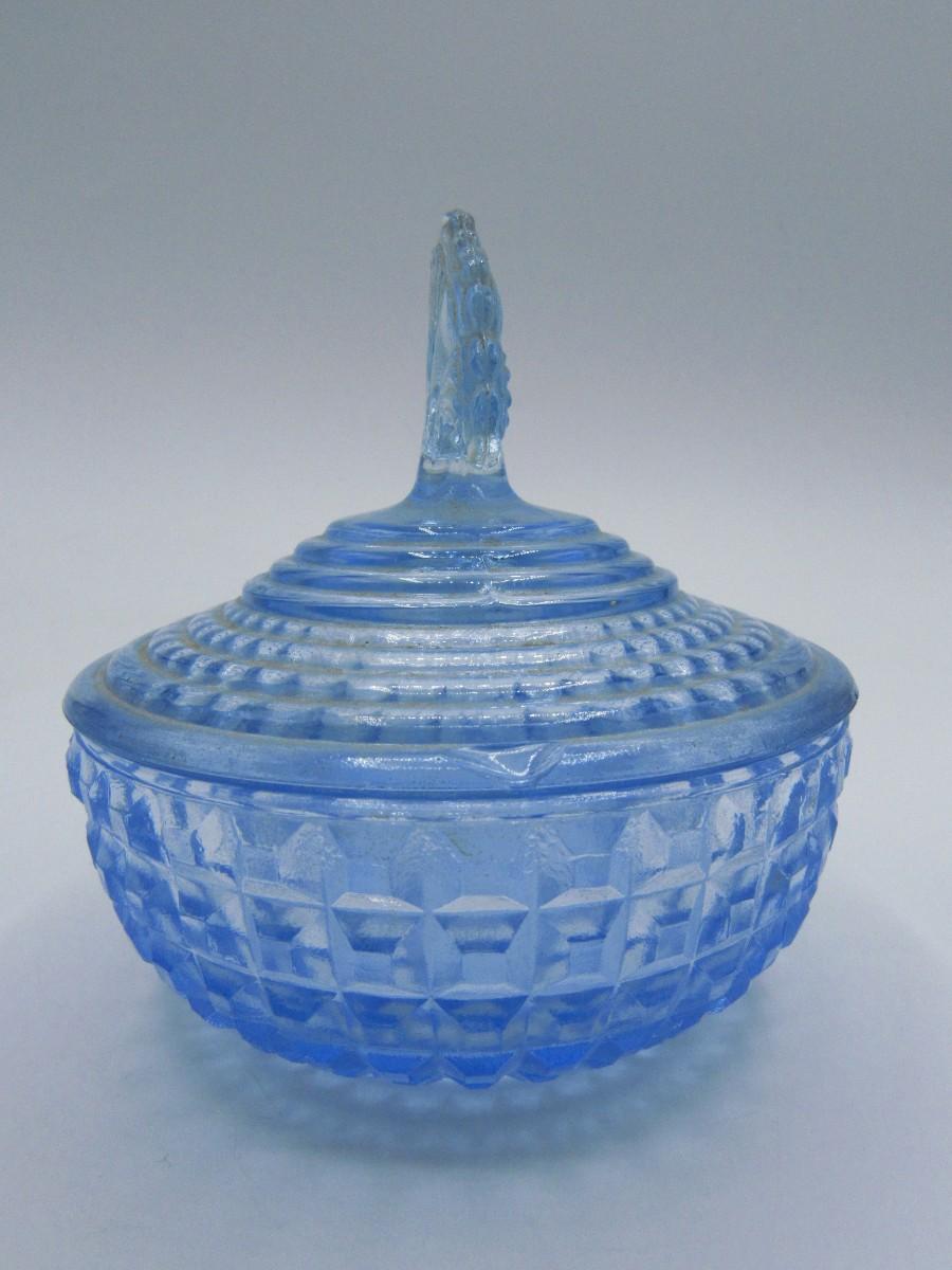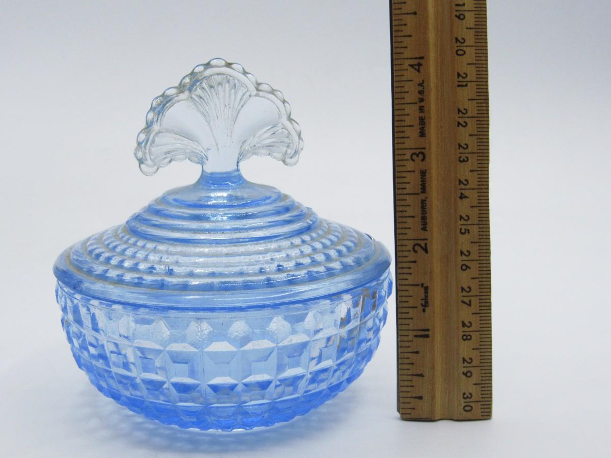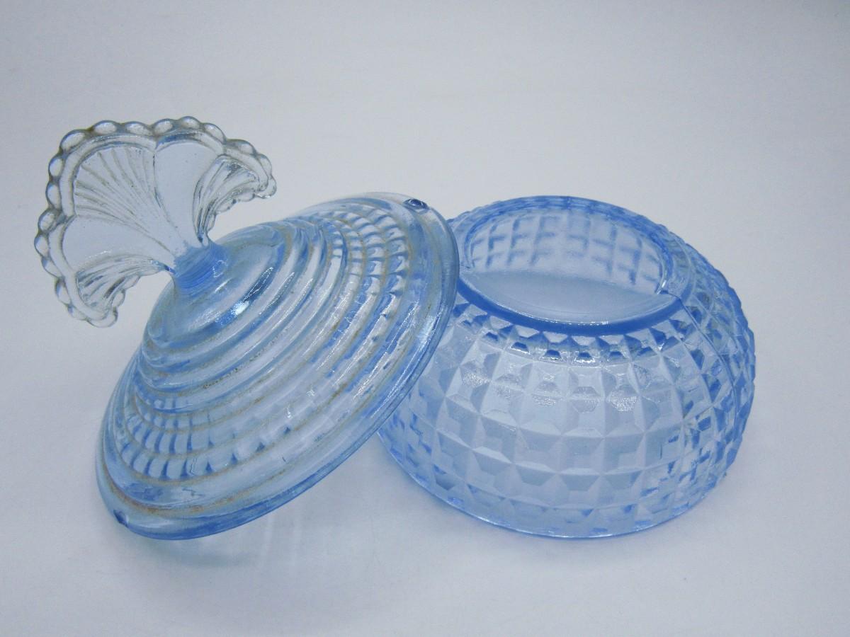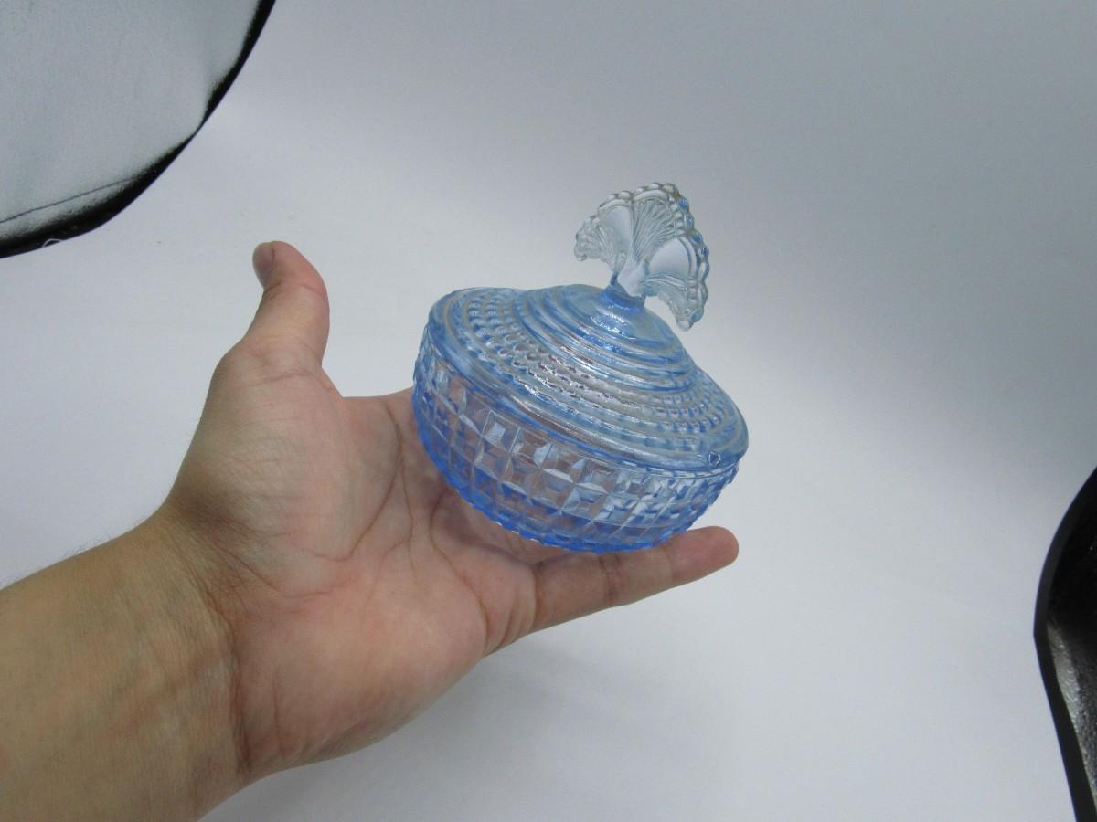 Vintage Mid Century Style Lidded Blue Glass Trinket Candy Dish