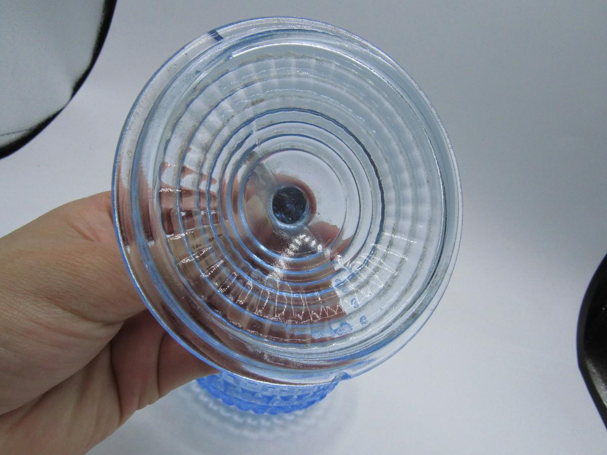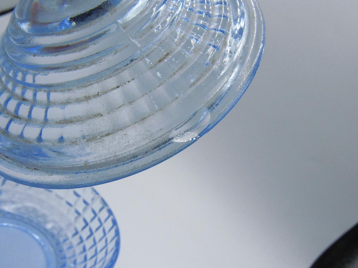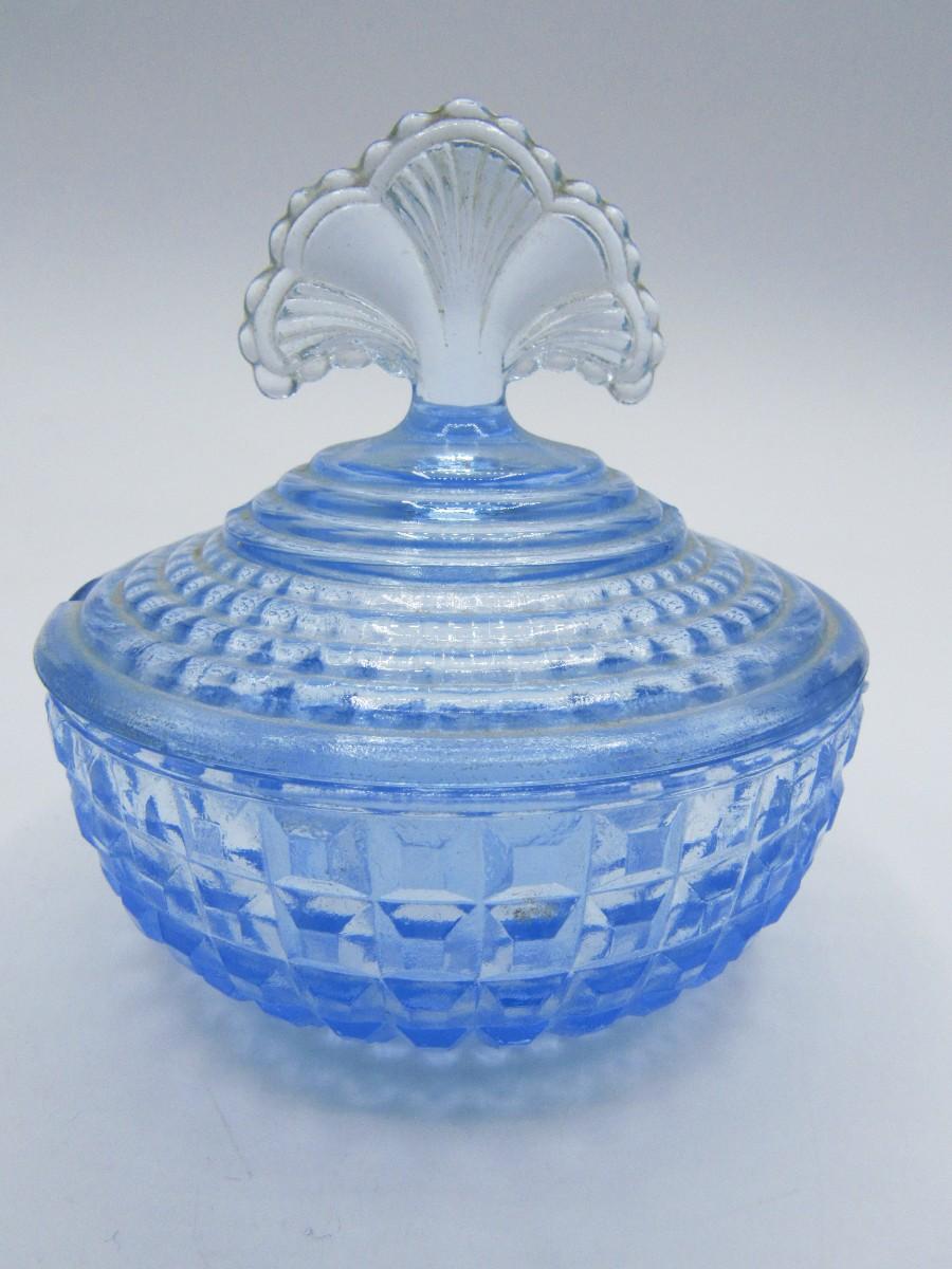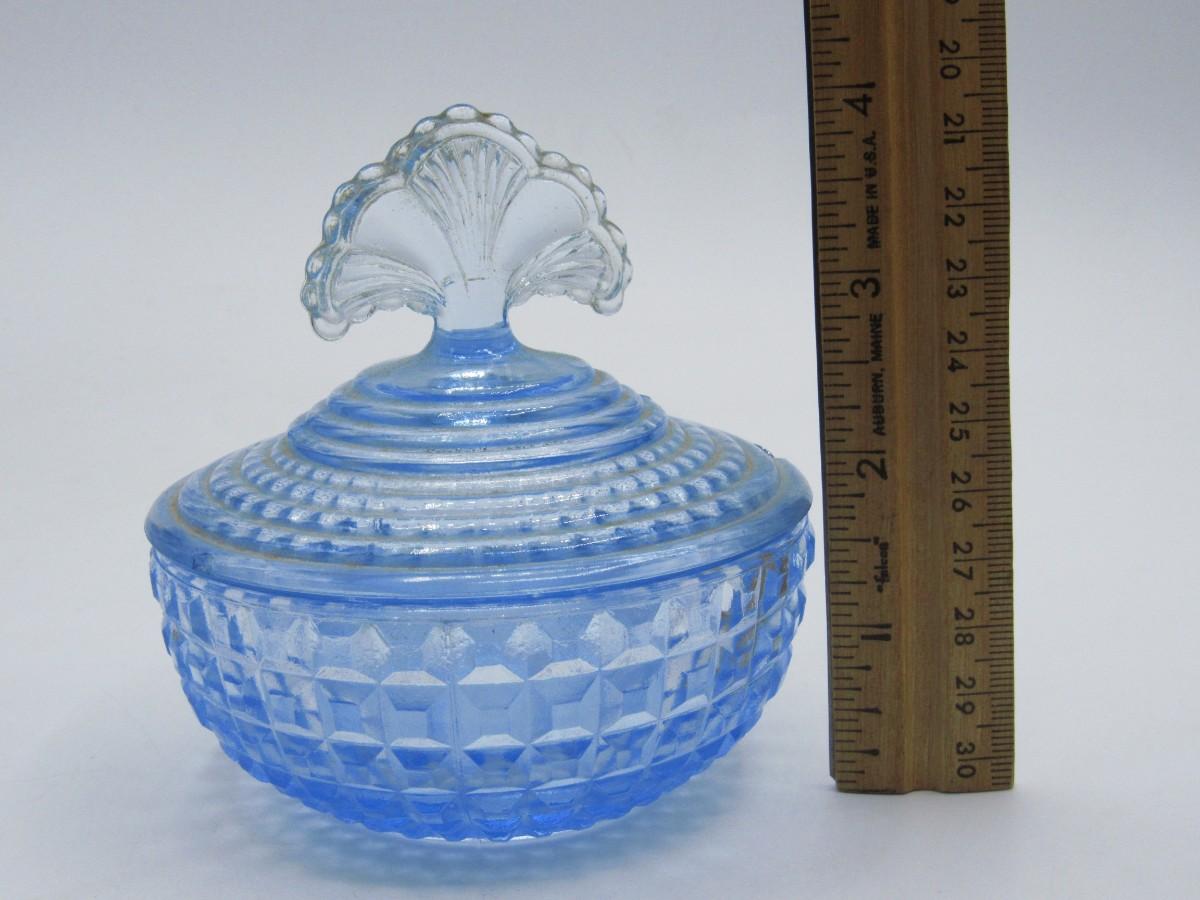 Vintage Mid Century Style Lidded Blue Glass Trinket Candy Dish