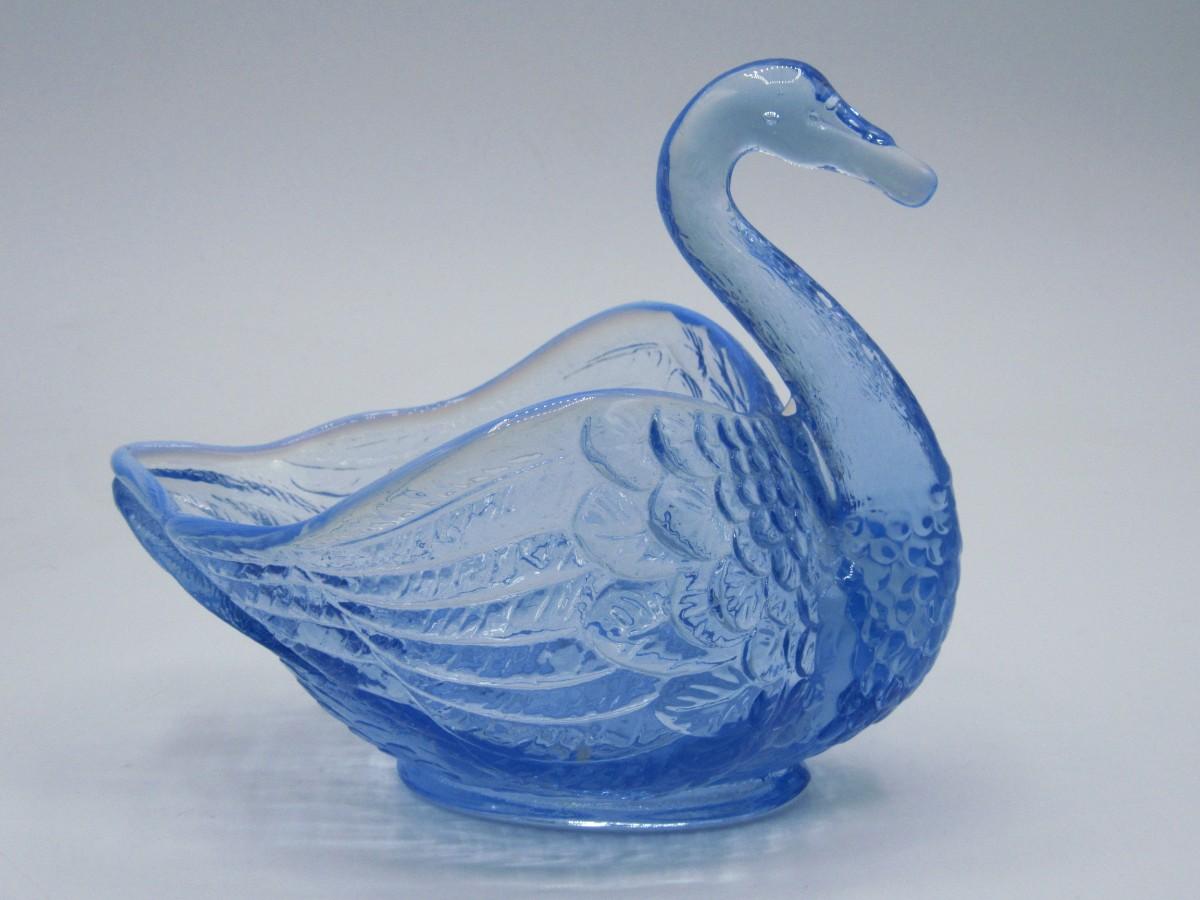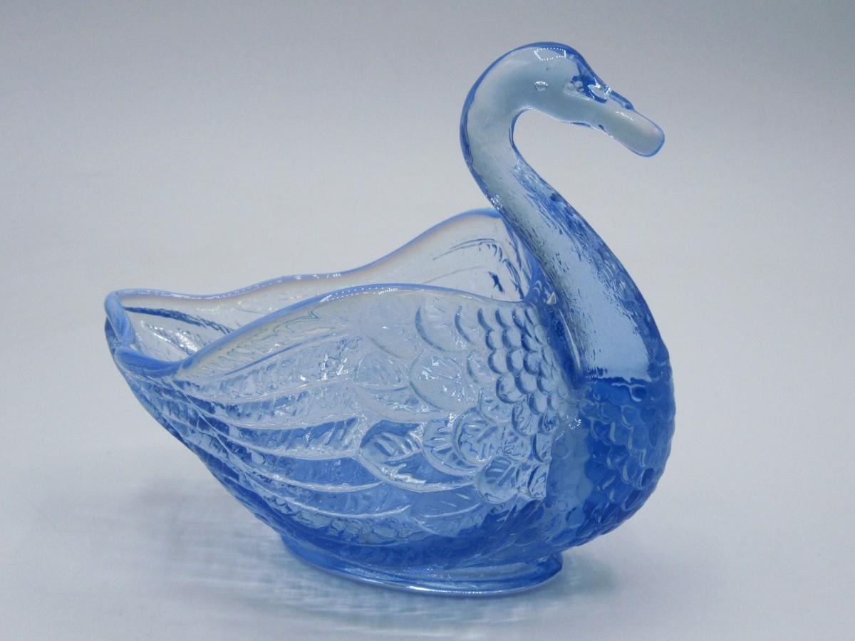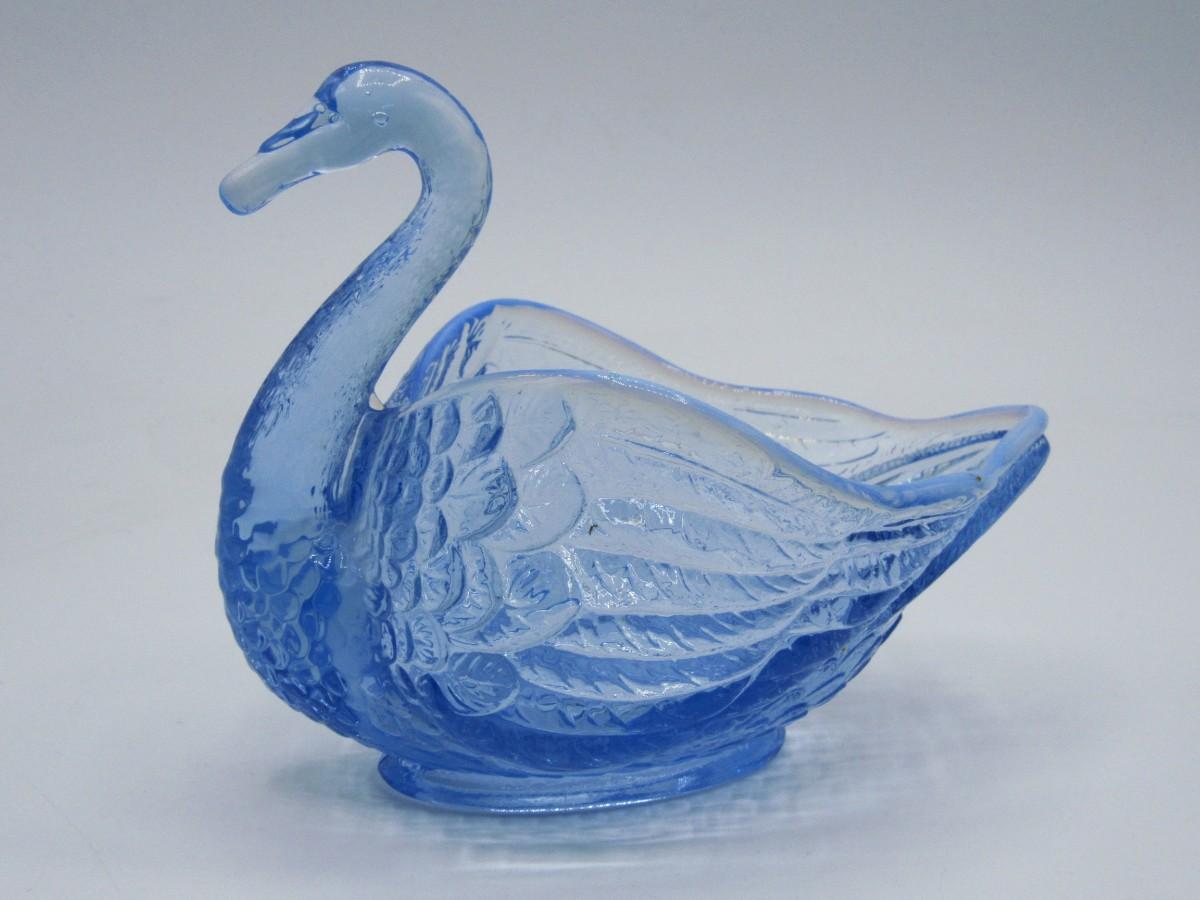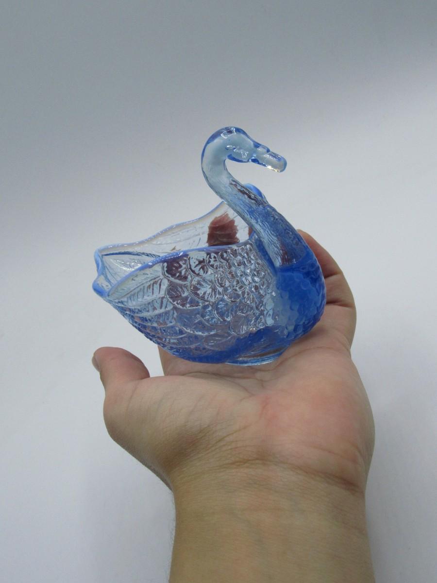 Small Vintage Blue Clear Glass Swan Trinket Candy Dish