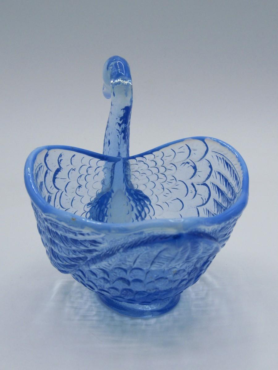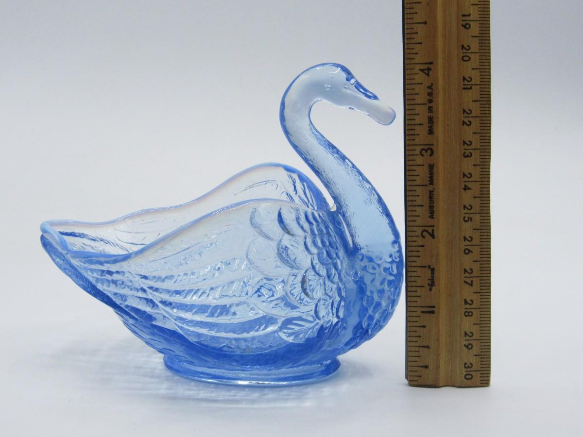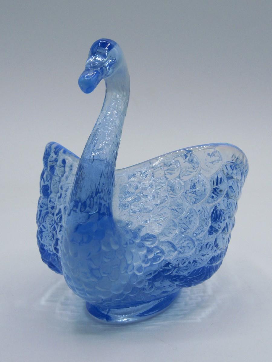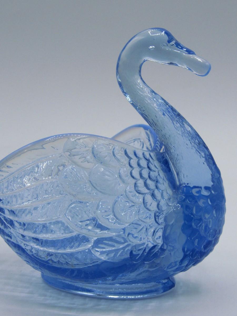 Small Vintage Blue Clear Glass Swan Trinket Candy Dish