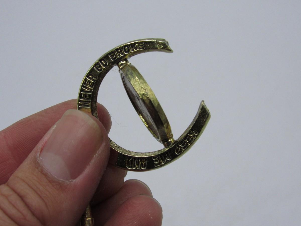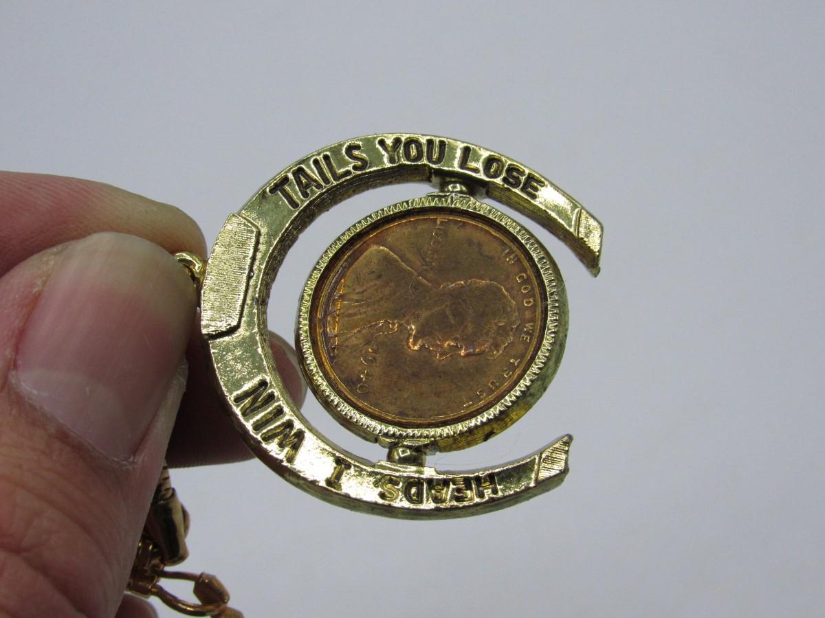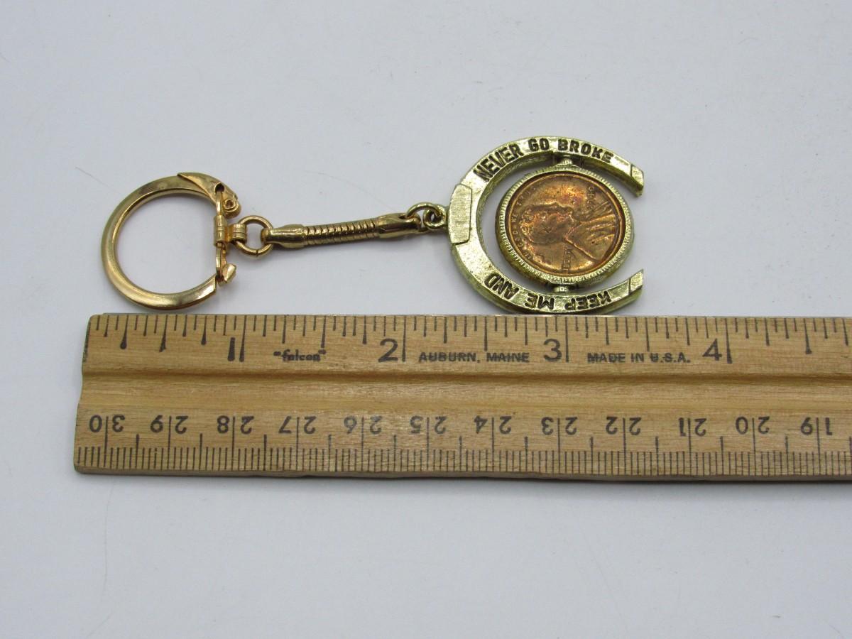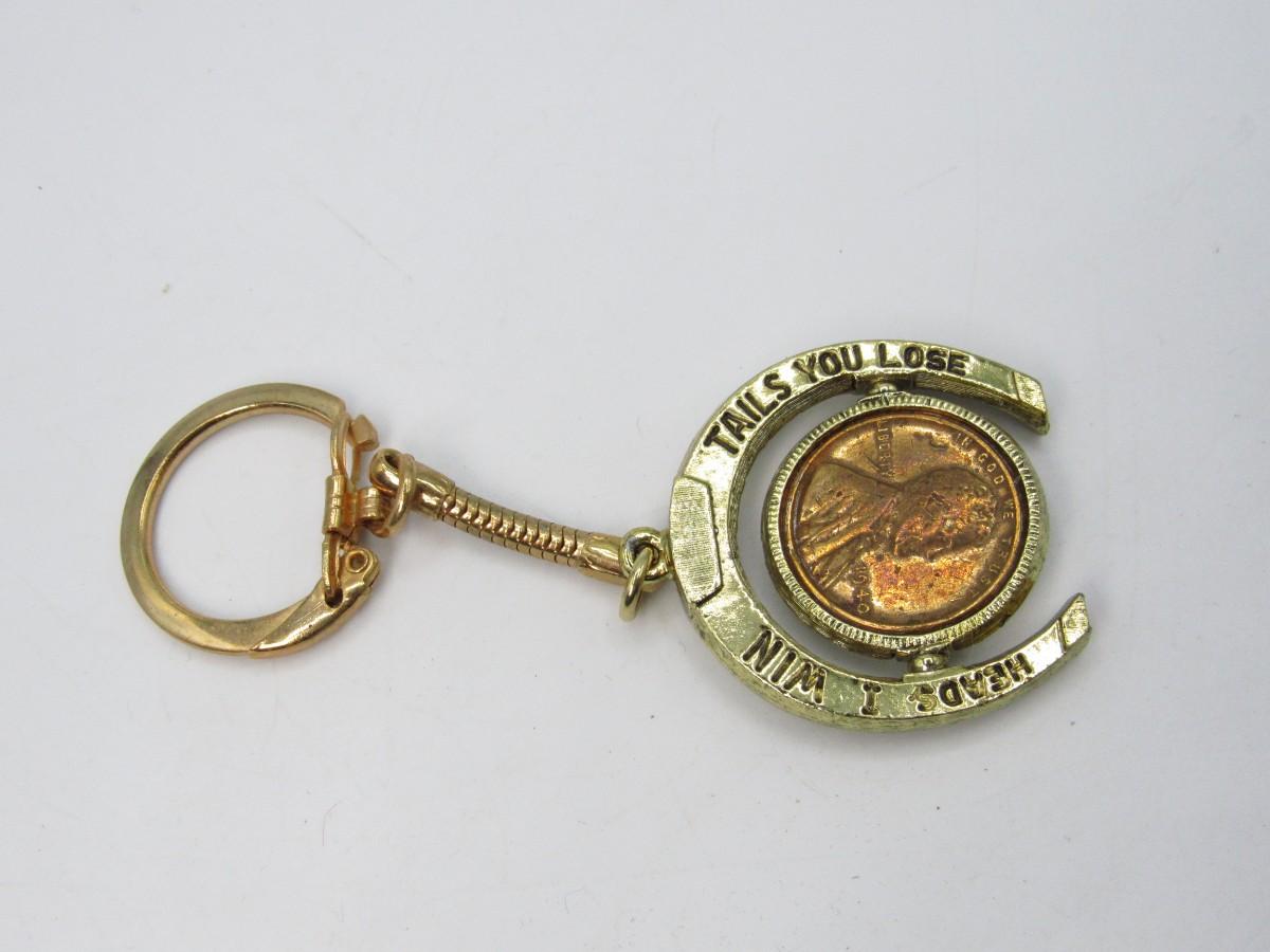 Vintage Novelty Lucky Horseshoe Keychain Heads I Win Tails You Lose Keep Me and Never Go Broke