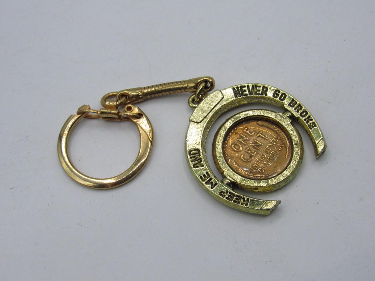 There is no damage to the keychain and is in good condition! The coin spins in place, check pictures for more details.