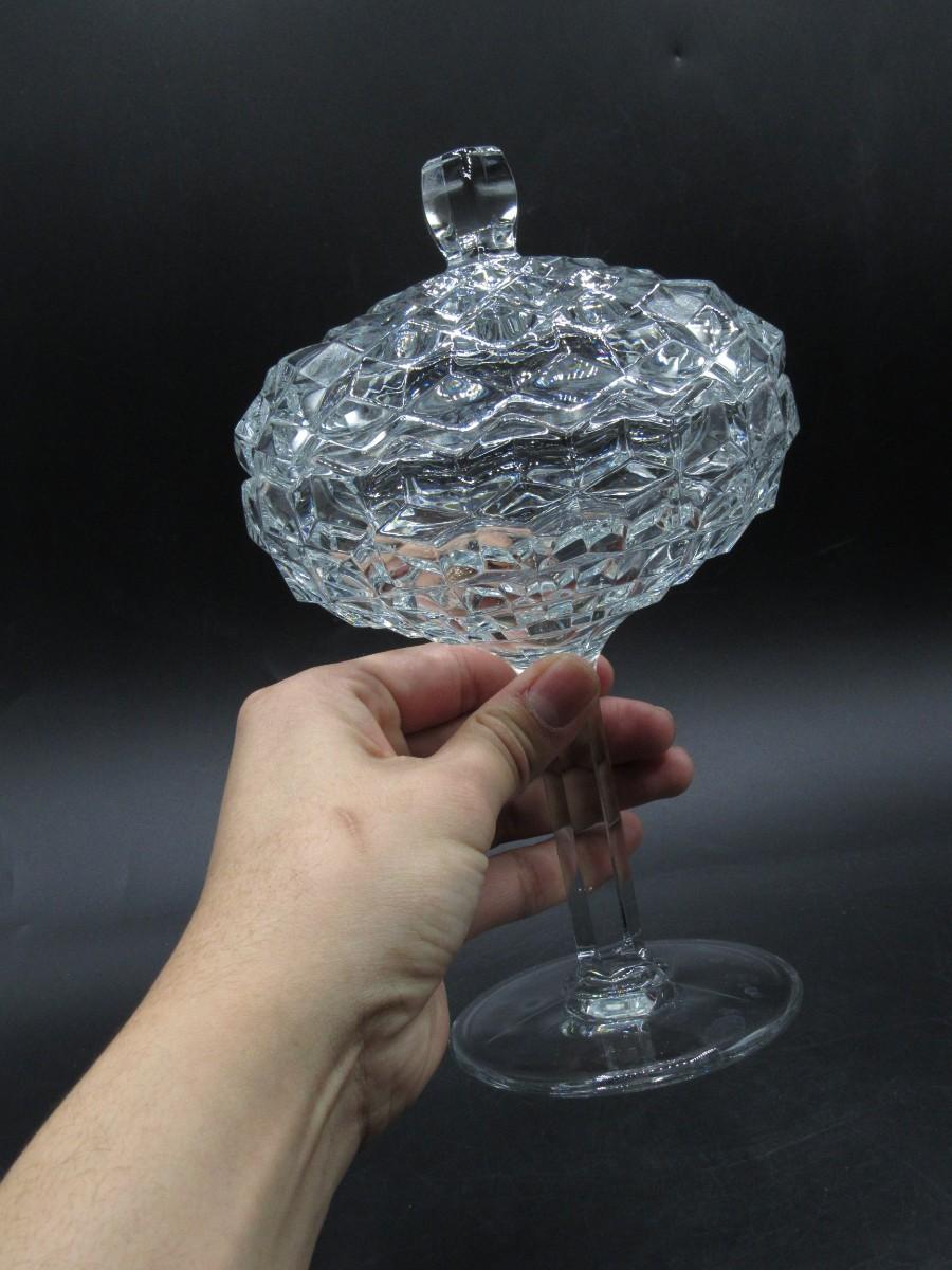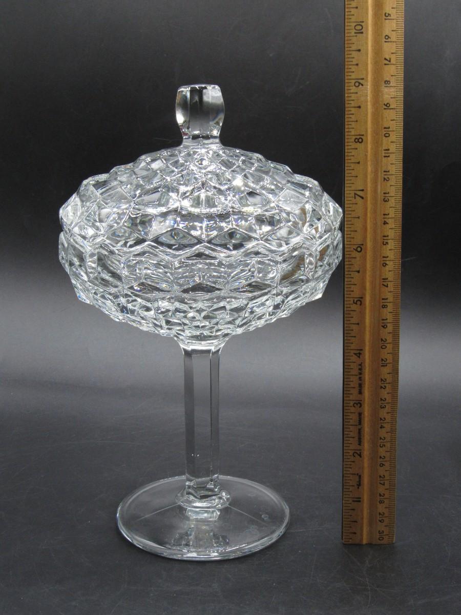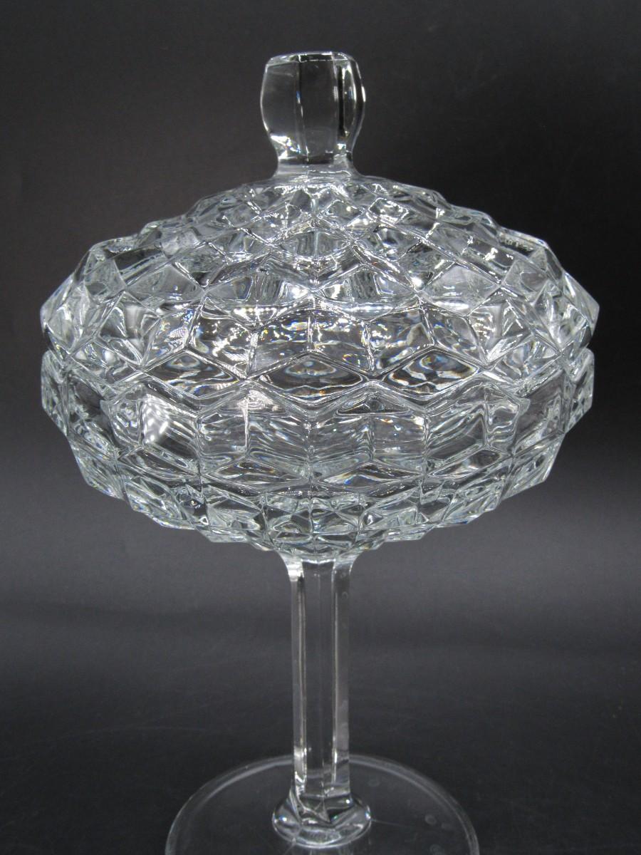 Vintage Large MCM Stemmed Crystal Glass Lidded Candy Dish Bowl