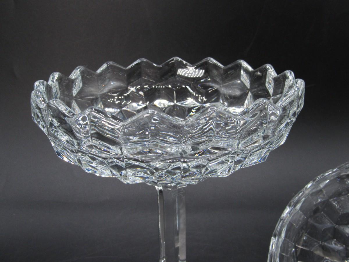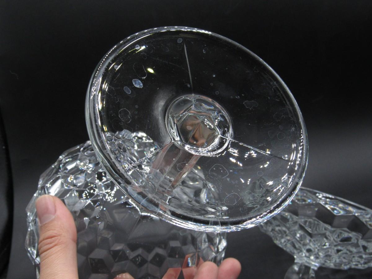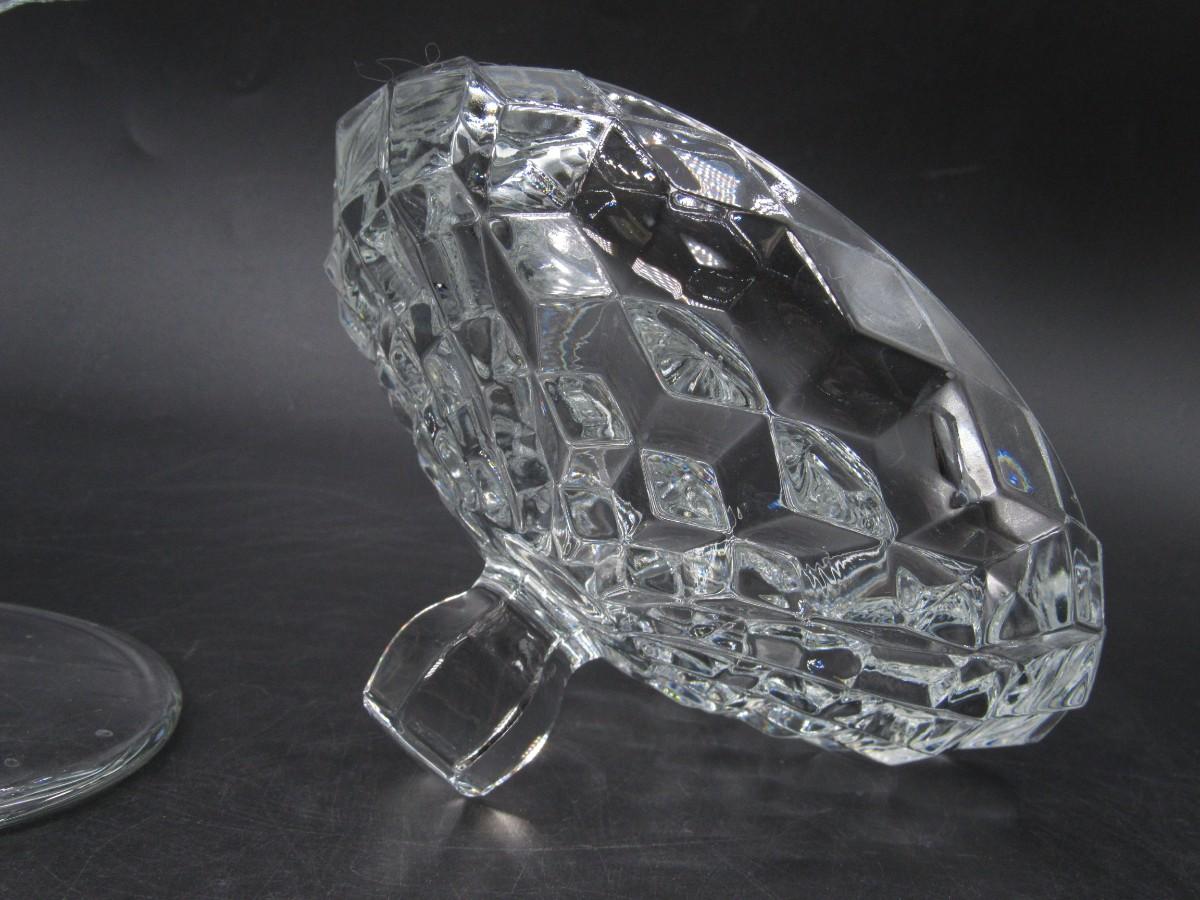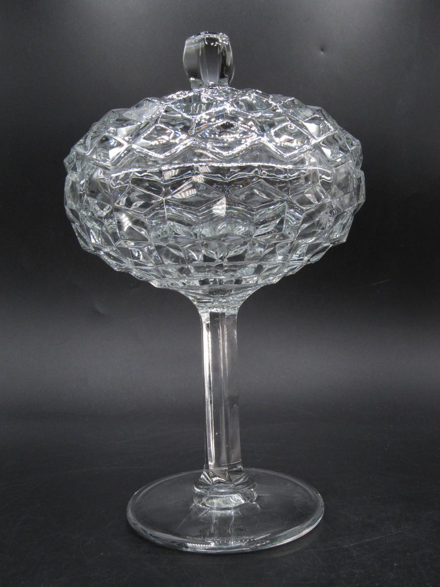 Vintage Large MCM Stemmed Crystal Glass Lidded Candy Dish Bowl