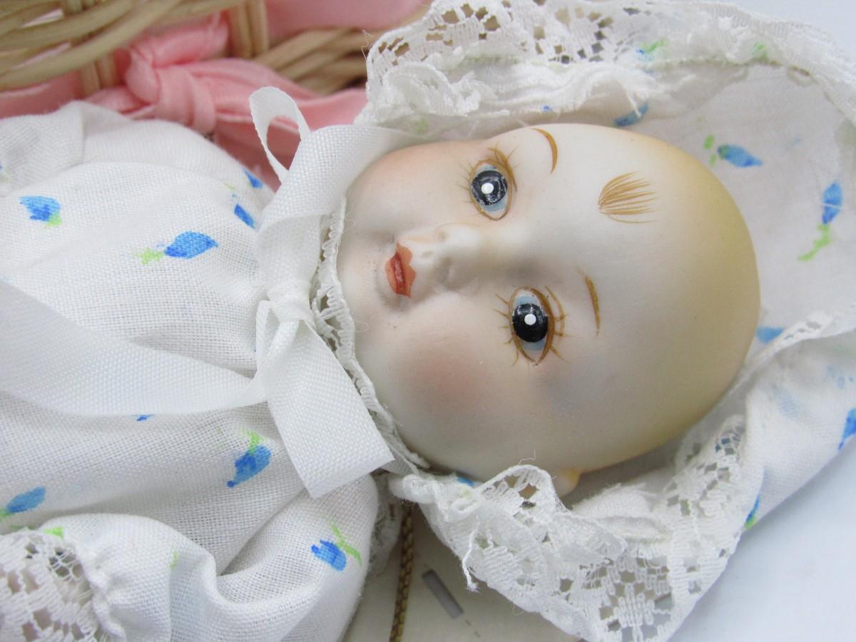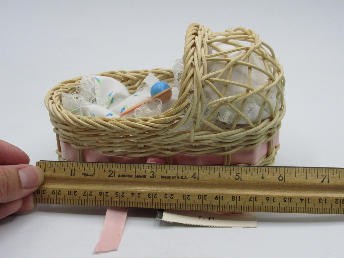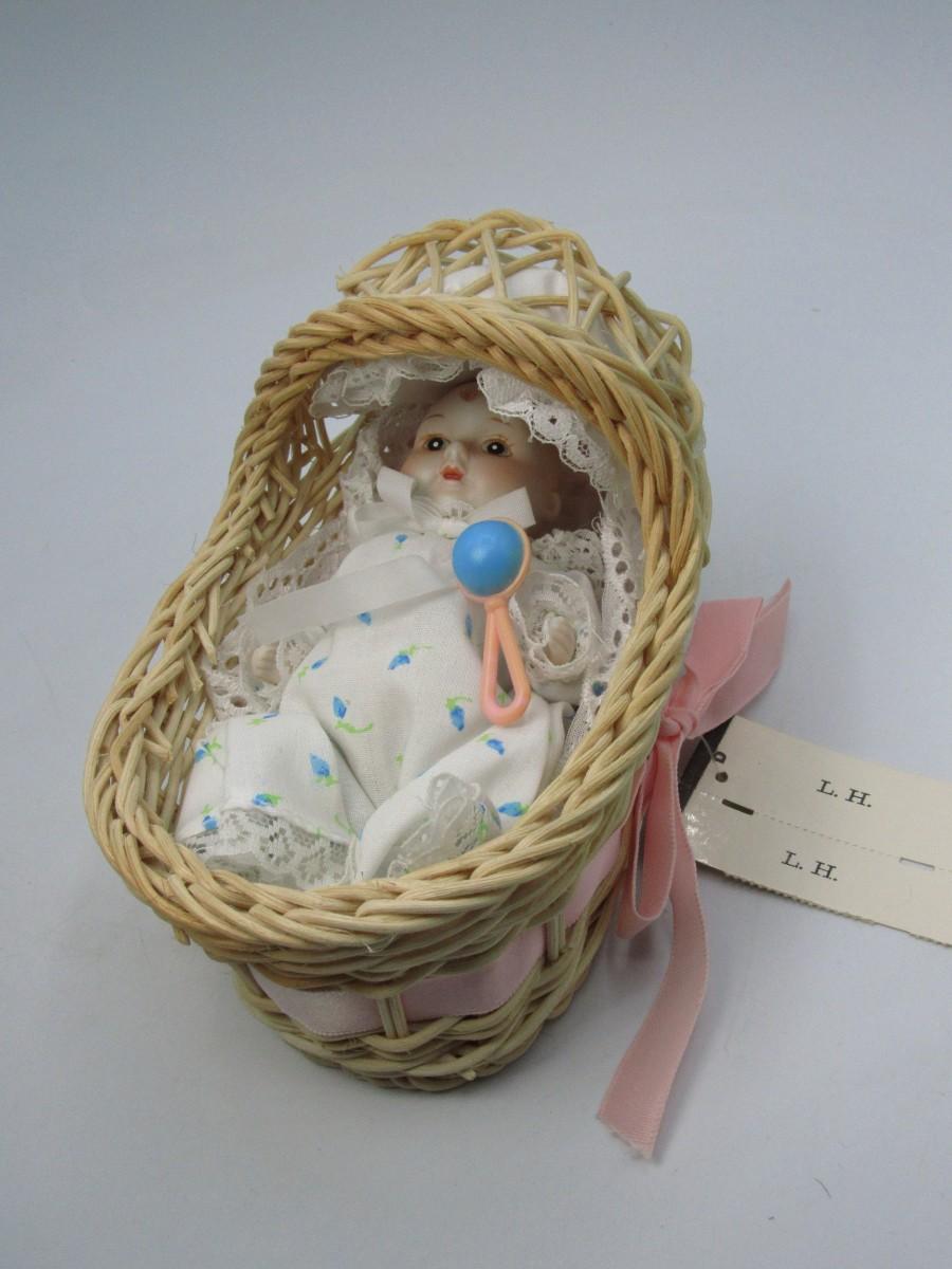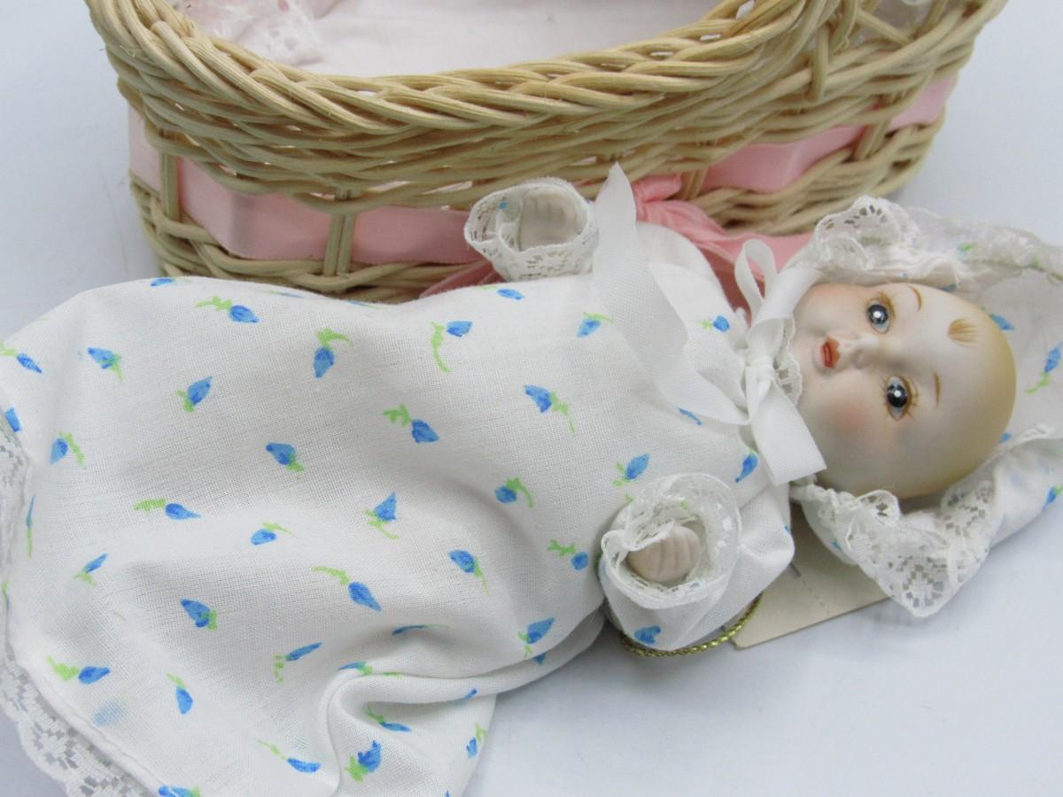 There is no damage to the baby and is in good collectible condition. The Liberty House store tag is still on the basket, overall in good collectible or displayable condition. Check pictures for more details and sizing.